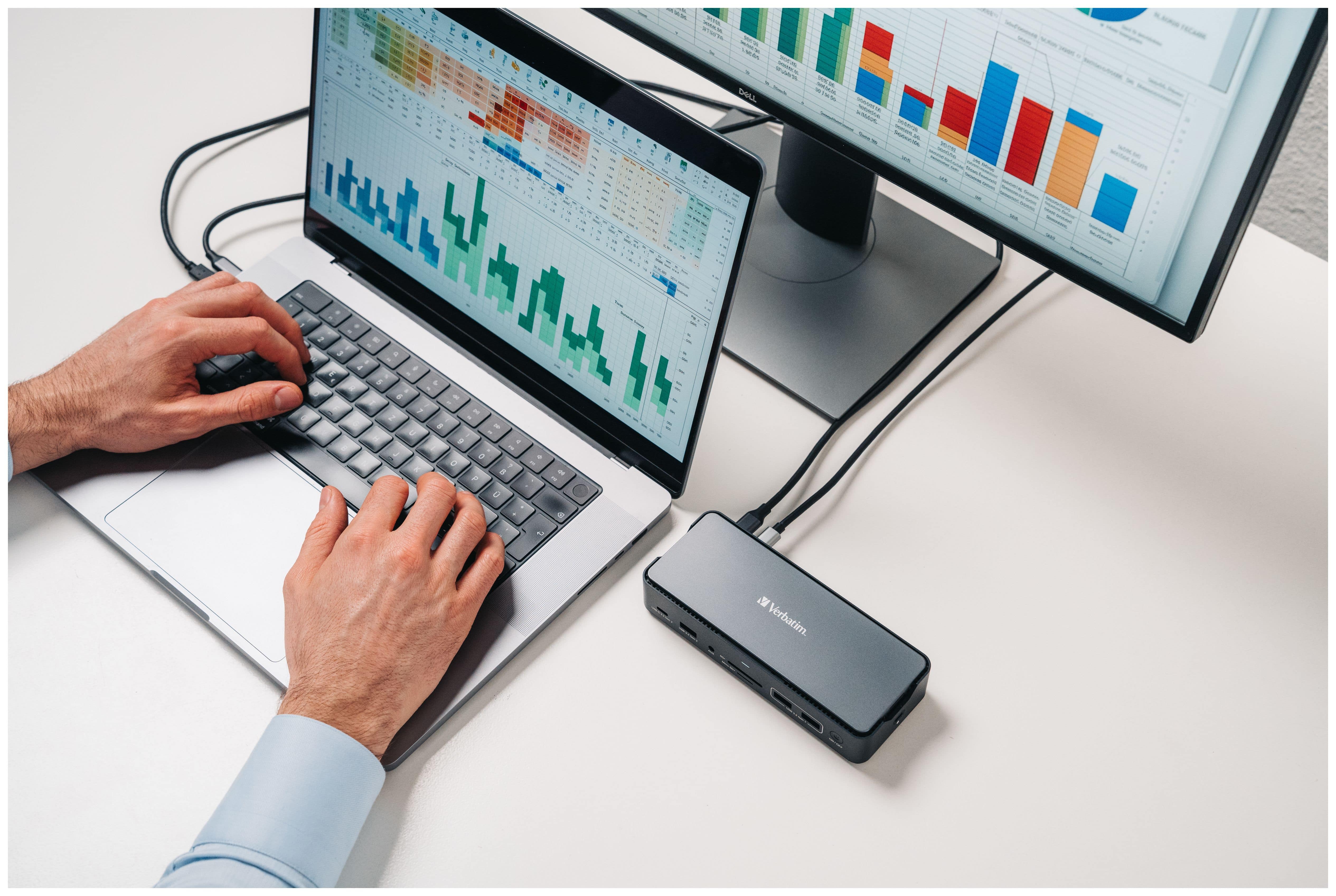 Verbatim CDS-15S, Kabelgebunden, USB 3.2 Gen 1 (3.1 Gen 1) Type-C, 100 W, 3,5 mm, 1000 Mbit/s, Schwarz, Grau