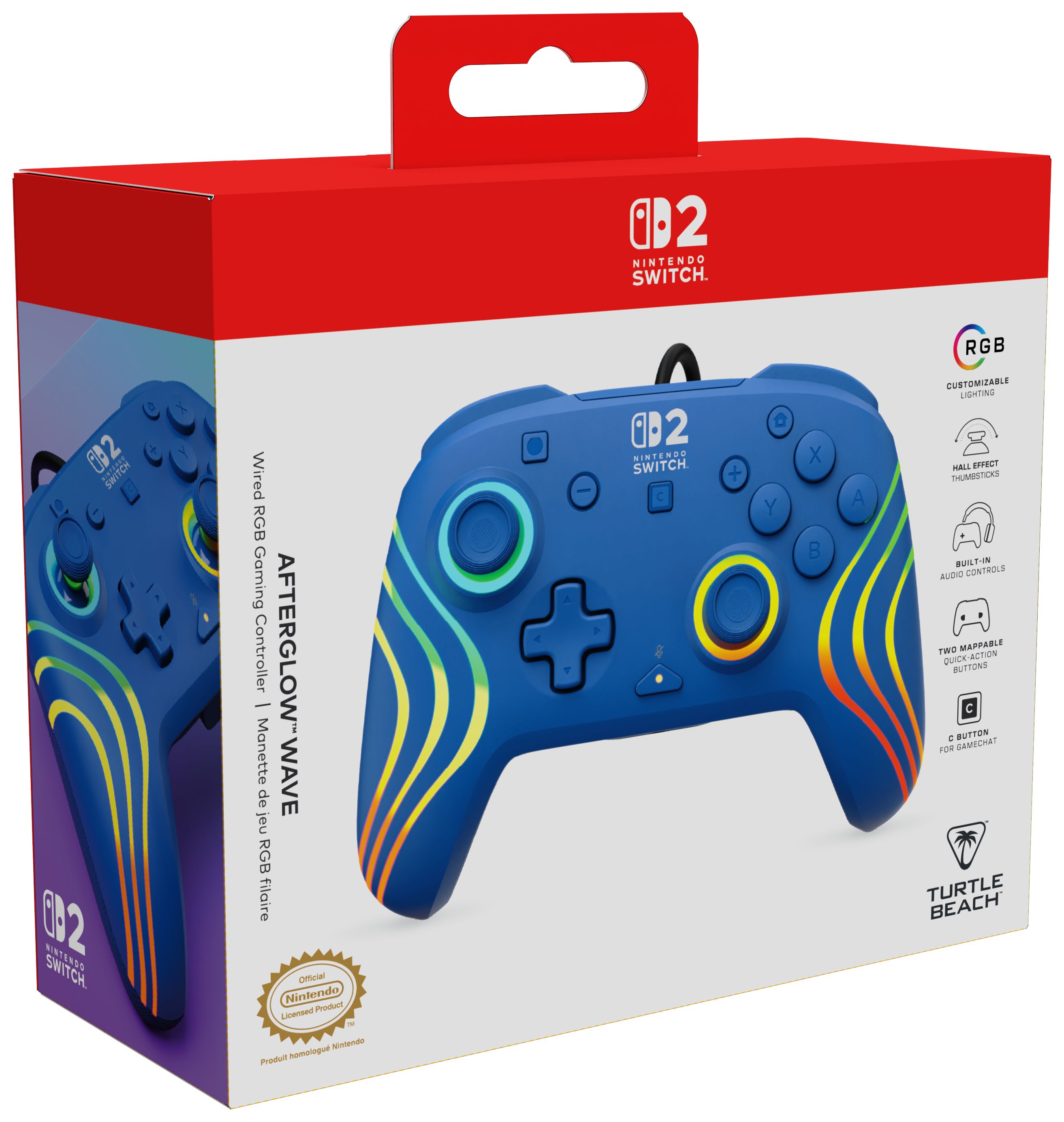 Mach dein Gaming-Erlebnis noch cooler mit dem kabelgebundenen Afterglow Wave RGB-Gaming-Controller für Nintendo Switch™ 2. Dieser Controller ist auch kompatibel mit Nintendo Switch™ und Nintendo Switch™ – OLED-Modell.
