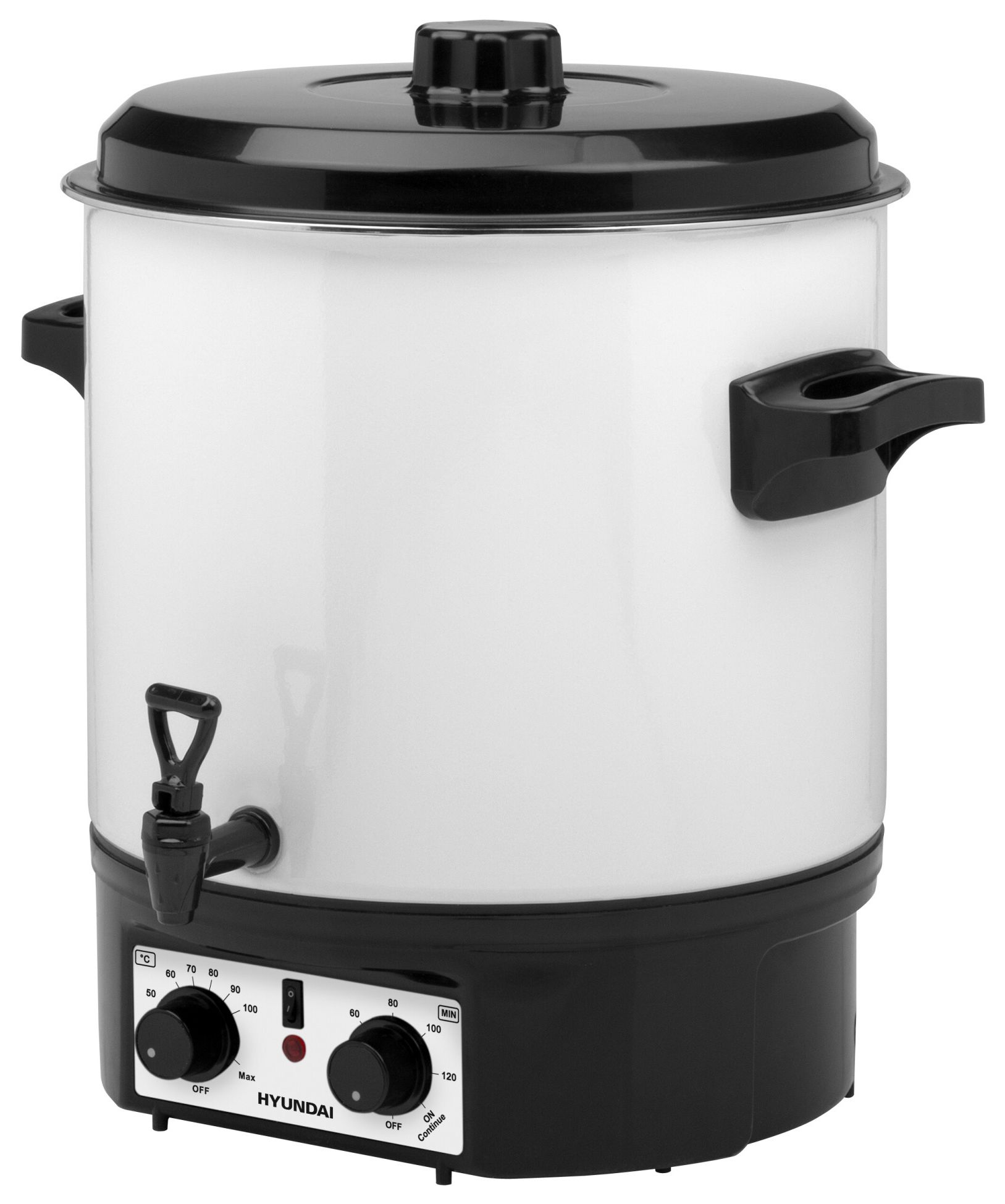 Der Hyundai PC 200 Einkochautomat im weißen Emaille-Design eignet sich perfekt zum Einkochen und Sterilisieren von Obst und Gemüse, aber auch für Familienfeiern, bei denen Sie Heißgetränke, Suppen oder Gulasch auf Wunschtemperatur halten können, wird er Ihre Freude bereiten.