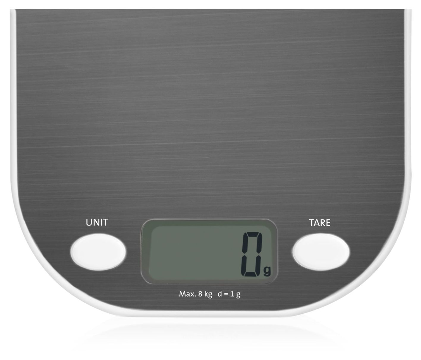 Grami Elektronische Küchenwaage bis 8 kg Genauigkeit 1 g (Weiß, Edelstahl)