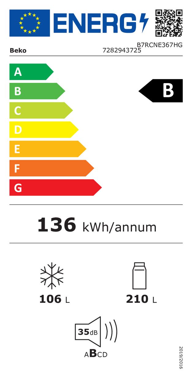 B7RCNE367HG 210 l / 106 l Kühl-Gefrierkombi freistehend NoFrost 136 kWh Jahr (Grau)