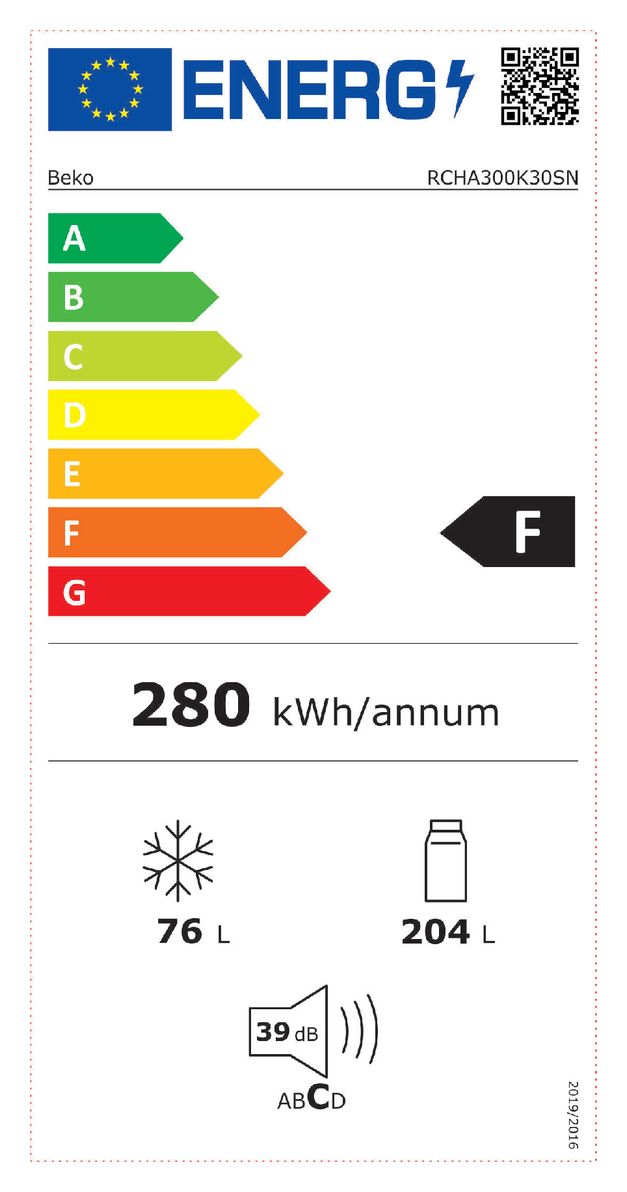 RCHA300K30SN 204 l / 76 l Kühl-Gefrierkombi freistehend NoFrost 280 kWh Jahr (Silber)