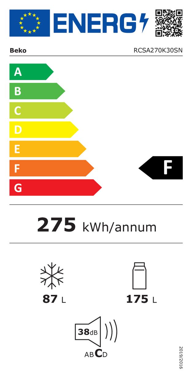 RCSA270K30SN 175 l / 87 l Kühl-Gefrierkombi freistehend 275 kWh Jahr (Grau, Edelstahl)