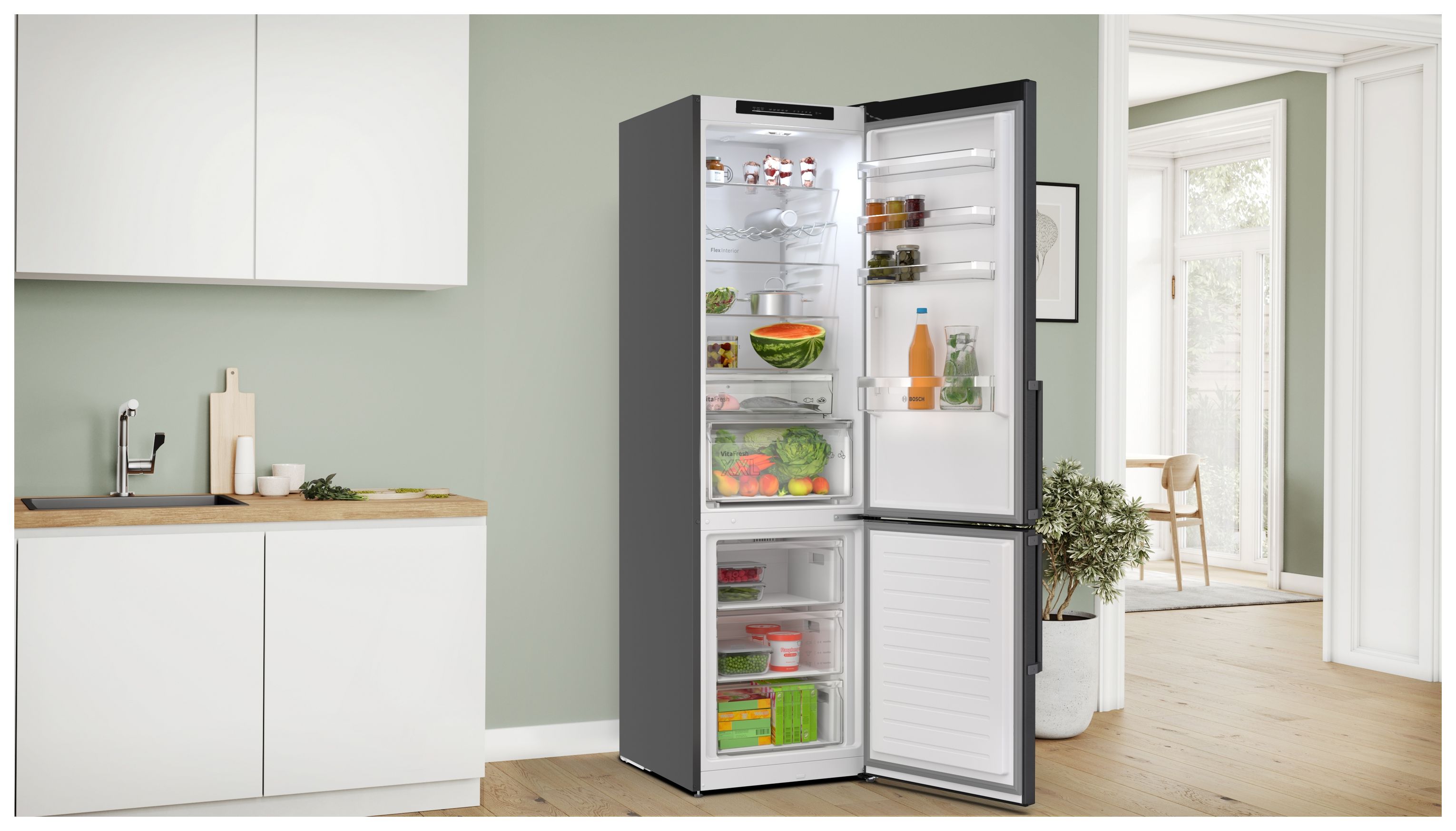 Serie 4 MKK69GNXAO (KGN39VXAU + KSZGGM00) 260 l / 103 l Kühl-Gefrierkombi freistehend NoFrost 104 kWh Jahr (Schwarz, Gebürsteter Stahl)