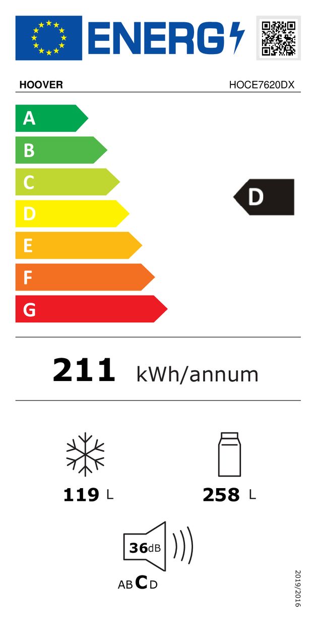 HOCE7620DX 258 l / 119 l Kühl-Gefrierkombi freistehend NoFrost 211 kWh Jahr (Edelstahl)