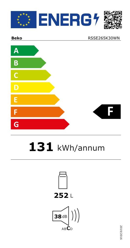 RSSE265K30WN 252 l / 252 l Kühlschrank freistehend EEK: F 131 kWh Jahr (Weiß)