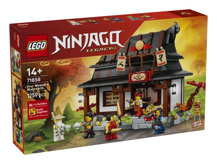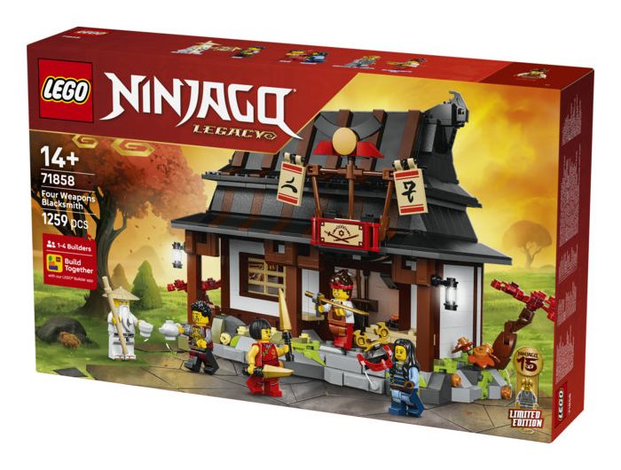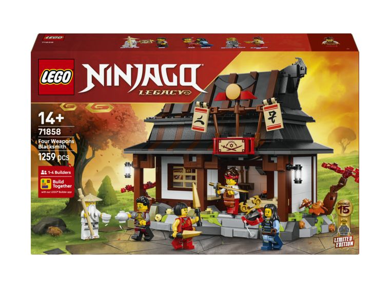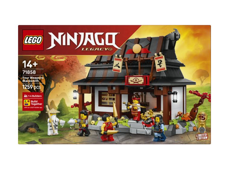 JUBILÄUMSSET: 15-jähriges Jubiläum: Vier-Waffen-Schmiede (71858) ist ein Spielset, das Ninja-Fans ab 14 Jahren zum ersten Mal den allerersten Schauplatz aus der Pilotfolge der LEGO® NINJAGO® TV-Serie bauen lässt