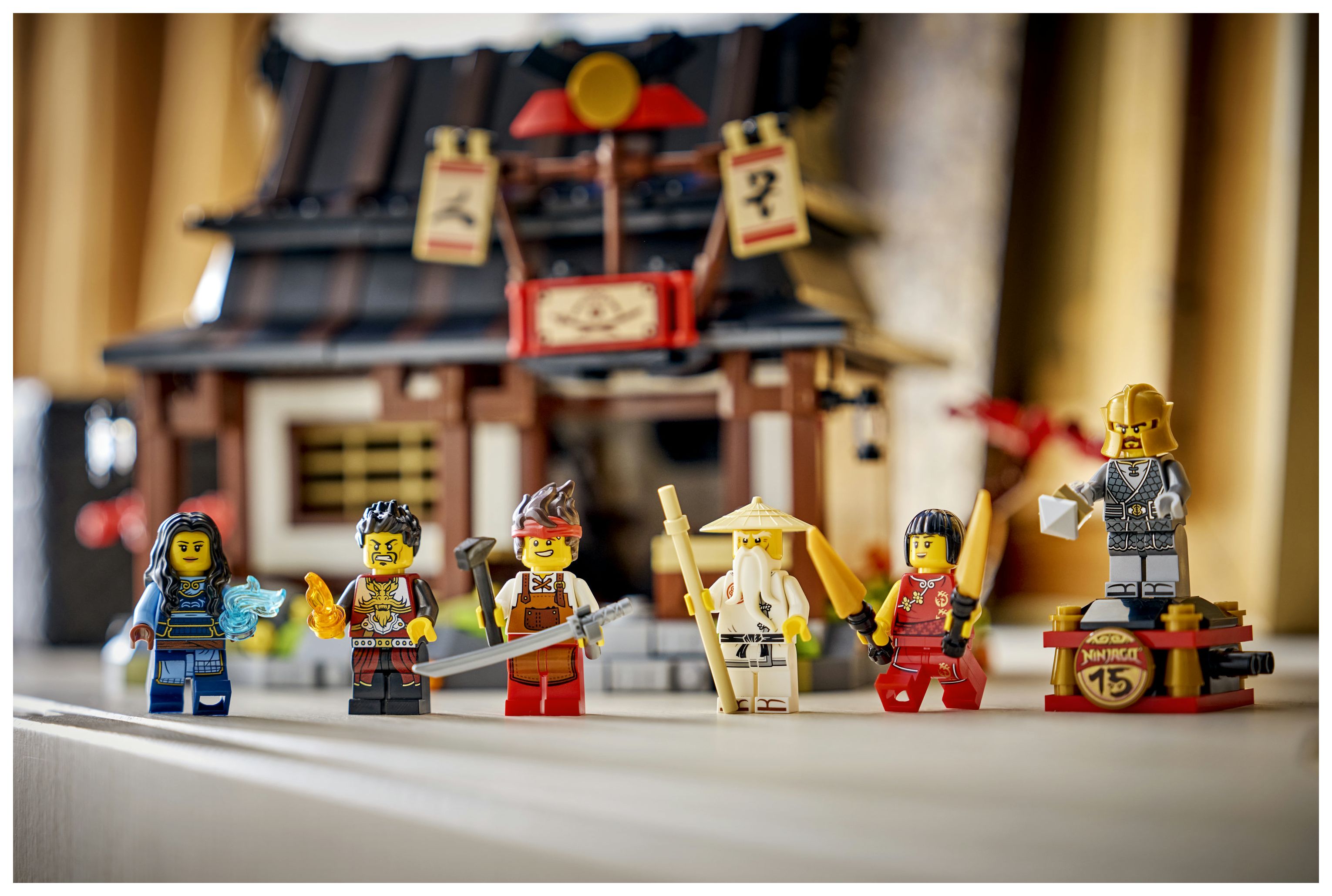 Zu dem Set gehören auch 6 Minifiguren aus der Geschichte der TV-Serie: Maya, Ray, Nya, Schmied Kai, Meister Wu und zum ersten Mal der Elementarmeister der Erde (auf einem Ständer) zum Sammeln. Die LEGO Builder App mit verständlichen digitalen Bauanleitungen lässt Kinder selbstbewusst bauen, ein 3D-Modell vergrößern und drehen und verfolgen, wie weit sie mit ihrem Modell schon sind. Das Set besteht aus 1.259 Teilen.