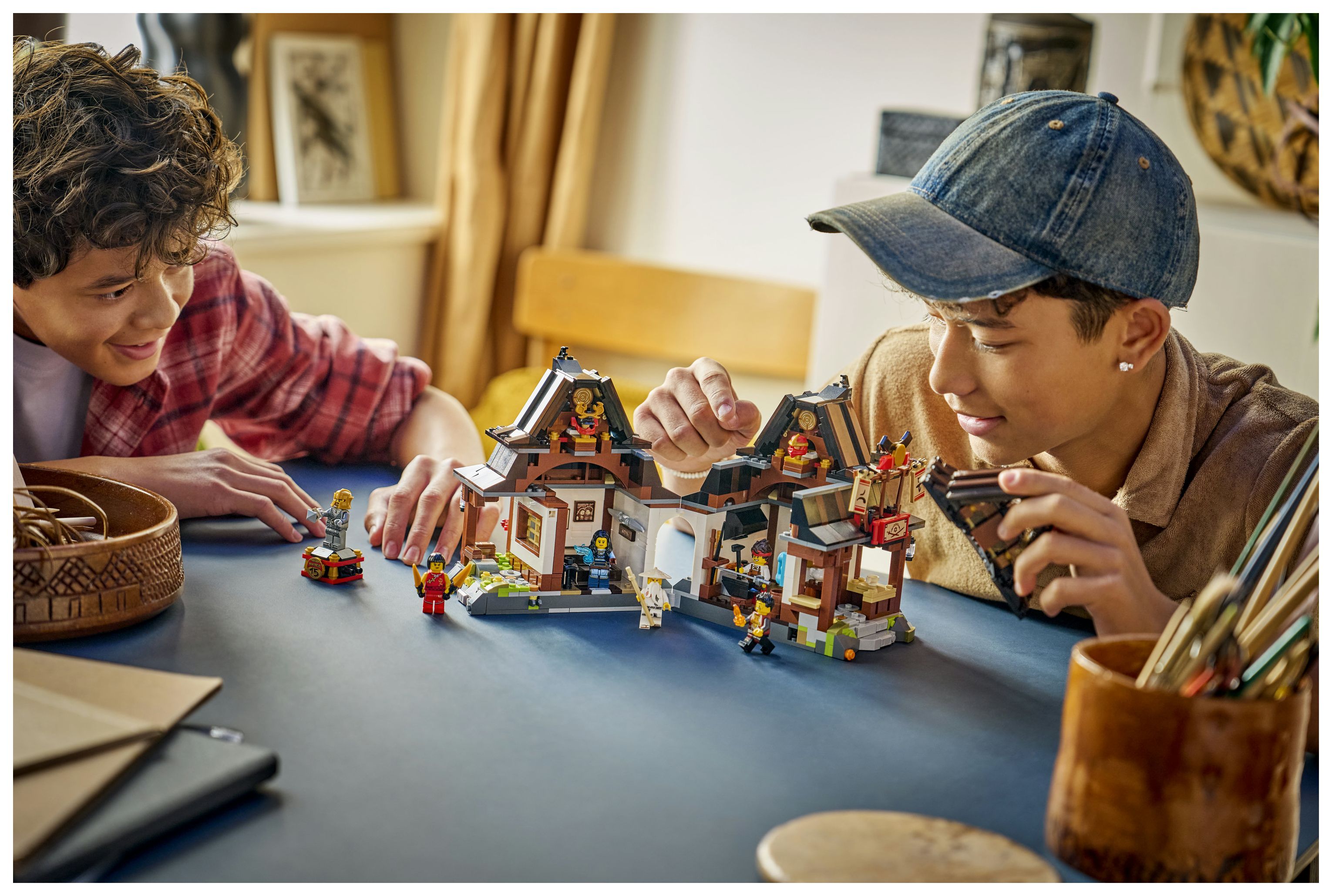 LEGO® MODELL DER SCHMIEDE: Klapp die Vorderseite des fertigen Modells aus diesem Bauset auf, um ein Schlafzimmer und eine Schmiede zu enthüllen, die nur so vor Details aus Geschichte der TV-Serie strotzen und die NINJAGO® Fangemeinde begeistern