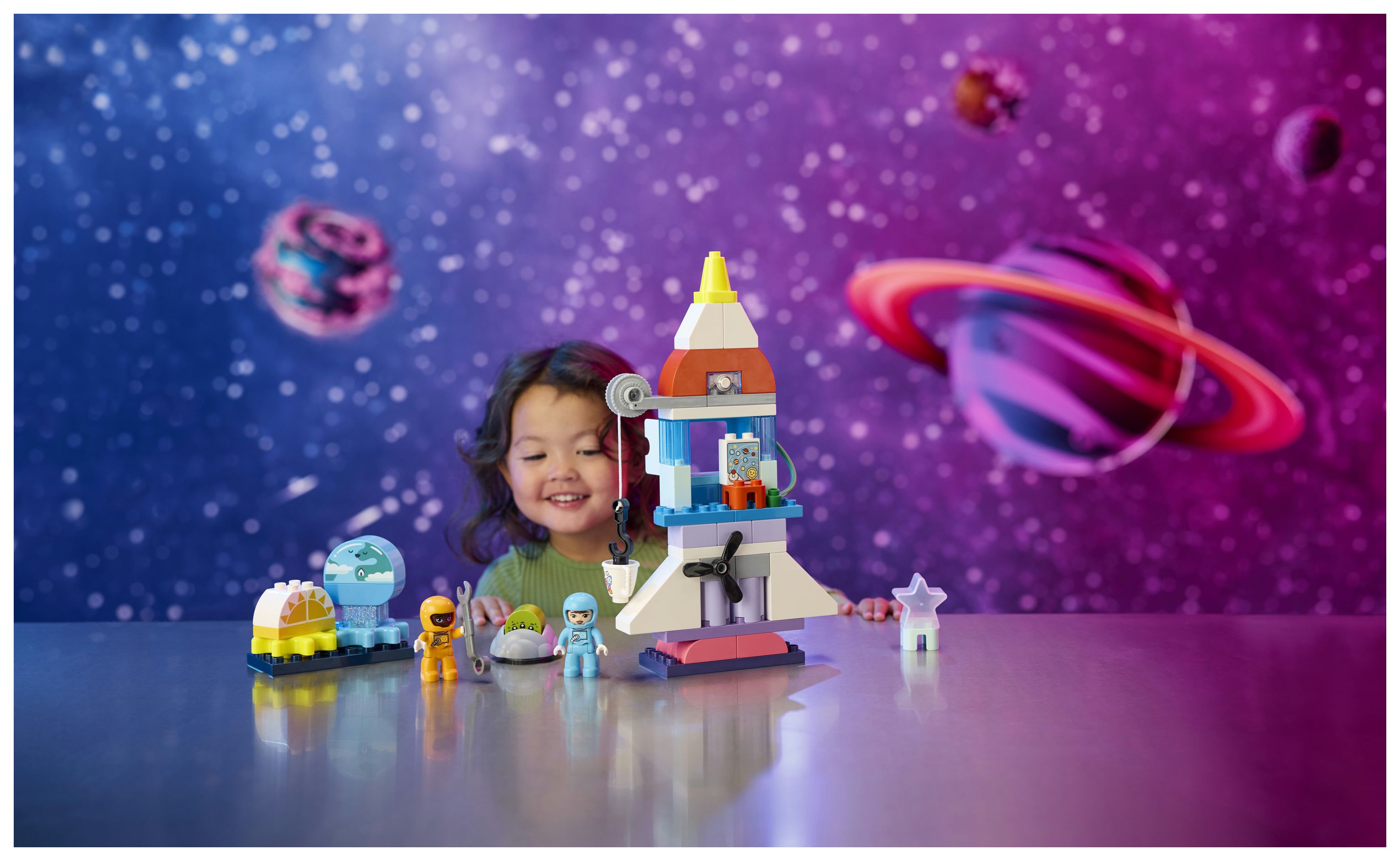 Weck die Neugier deines Kleinkinds: LEGO® DUPLO® Sets helfen Kleinkindern, Fähigkeiten fürs ganze Leben zu entwickeln und besonders einfallsreich zu spielen – sogar im Weltraum