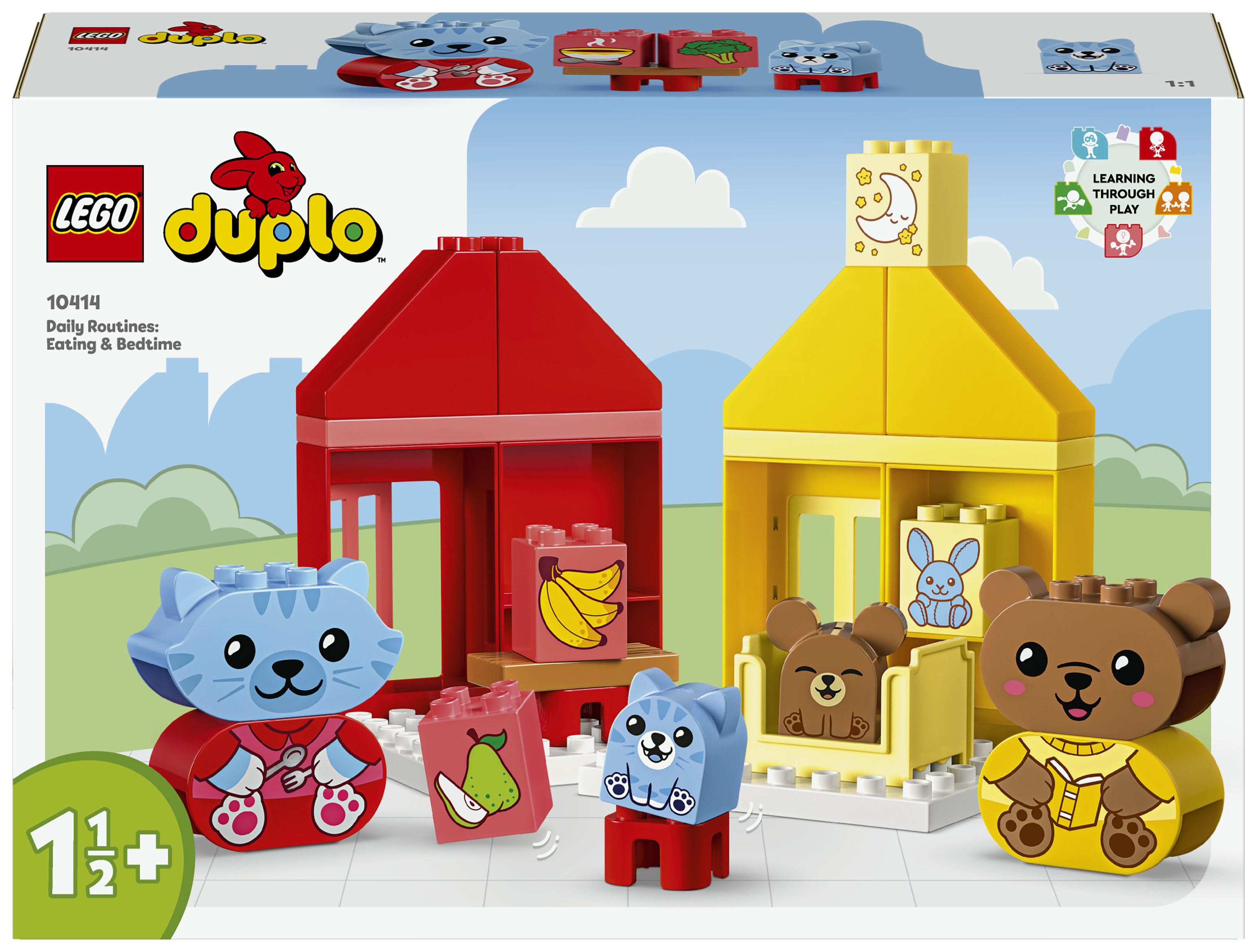 LEGO® DUPLO® Alltagsroutinen: Essen & Schlafenszeit (10414) ist ein Spielzeug, das Kleinkinder die eigenen Gefühle erkunden lässt. Dieses lustige Spielset für Vorschulkinder ab 18 Monaten beinhaltet 4 sympathische Tierfiguren.