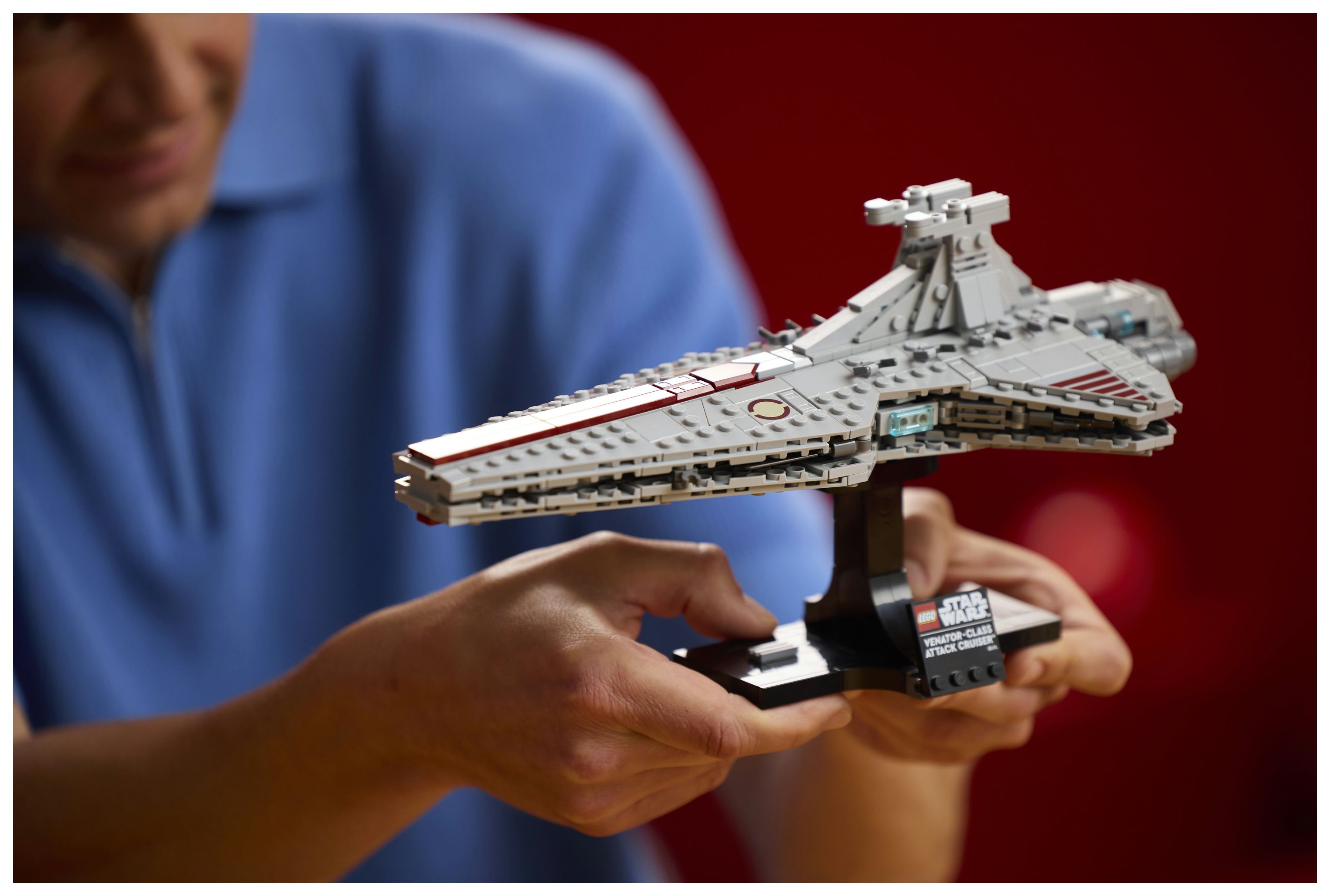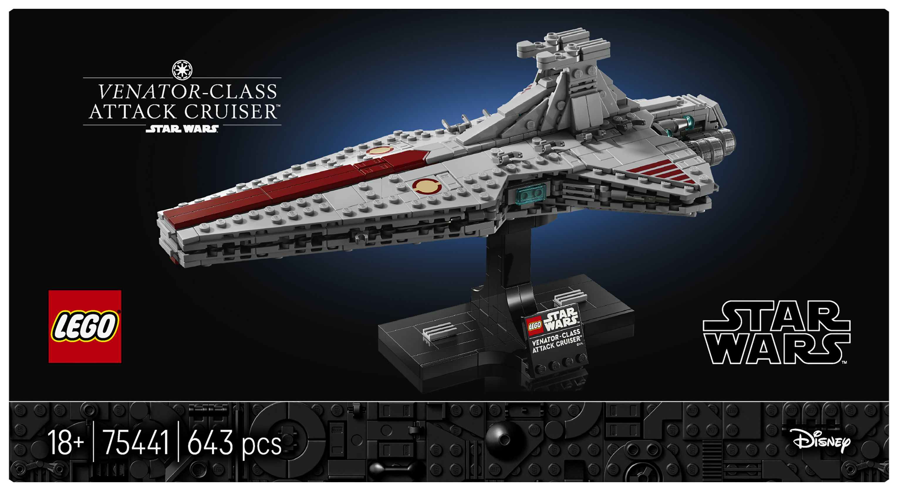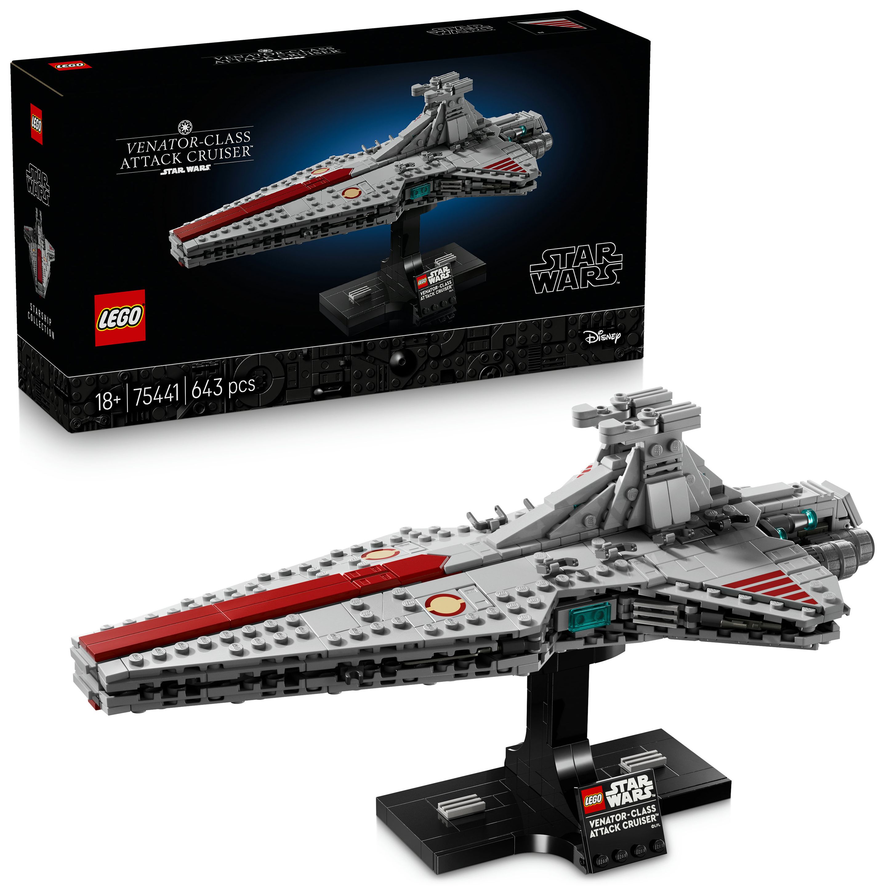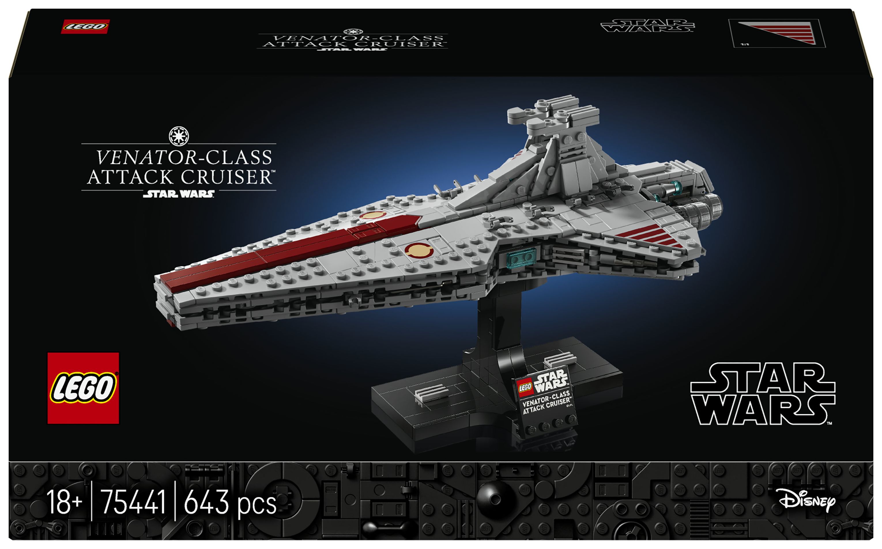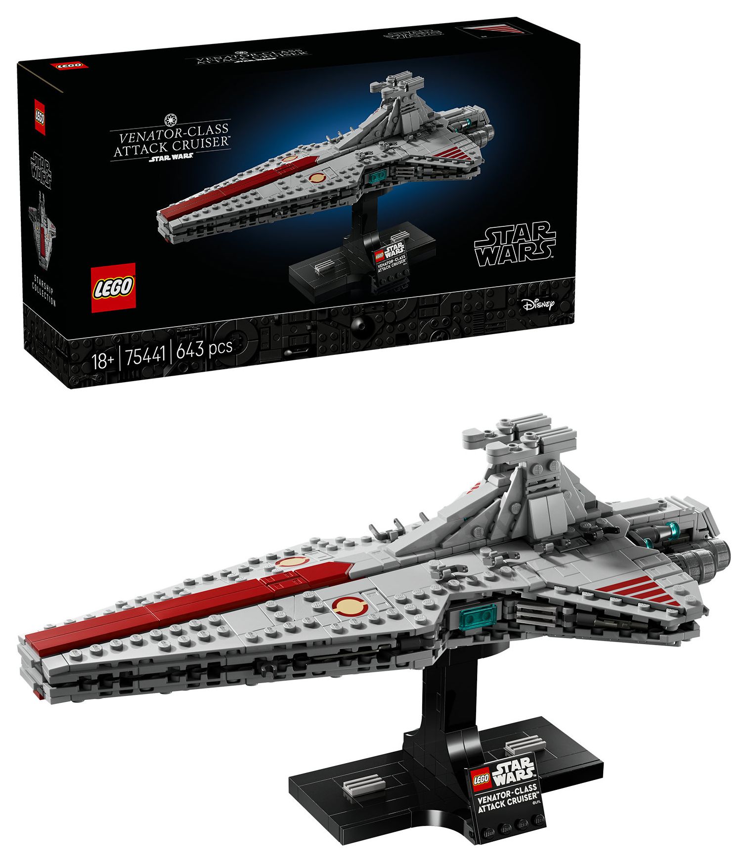 BAUSET MIT DEM MODELL EINES RAUMSCHIFFS: Baue den Angriffskreuzer der Venator-Klasse Attack Cruiser (75441) aus Star Wars: Die Rache der Sith und stell das LEGO® Modell mittleren Maßstabs dann aus