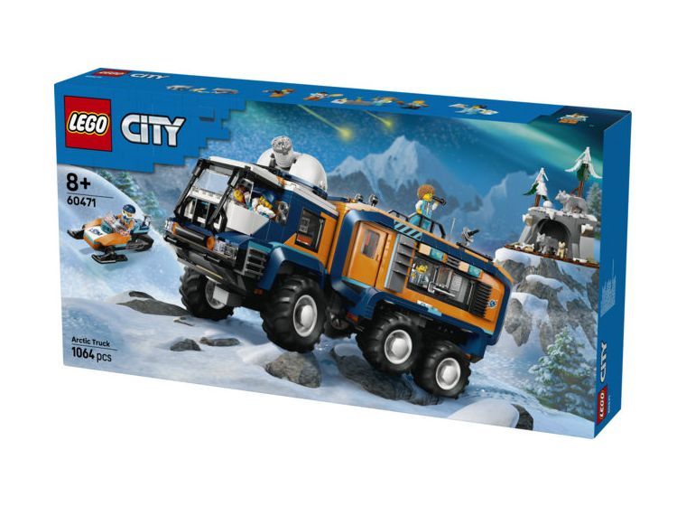 Überrasche einen jungen Abenteurer mit dem LEGO® City Arktis-Truck mit Labor (60471) für Fans von MINT-Spielzeug ab 8 Jahren. Dieses Spielset beinhaltet einen 6-rädrigen Spielzeug-Truck mit Knicklenkung, grobstolligen Reifen und drehbarer Sternwarte auf dem Dach. Zu den coolen Details im Inneren zählen die Fahrerkabine, das Labor und der gemütliche Wohnbereich mit Bad, Küche und Schlafzimmer. Auch ein Schneemobil, das Modell einer Höhle in der Arktis, 5 Polarforscher-Minifiguren, 2 Polarwölfe und 1 Polarwolfwelpe lassen Kinder fantasievoll spielen.