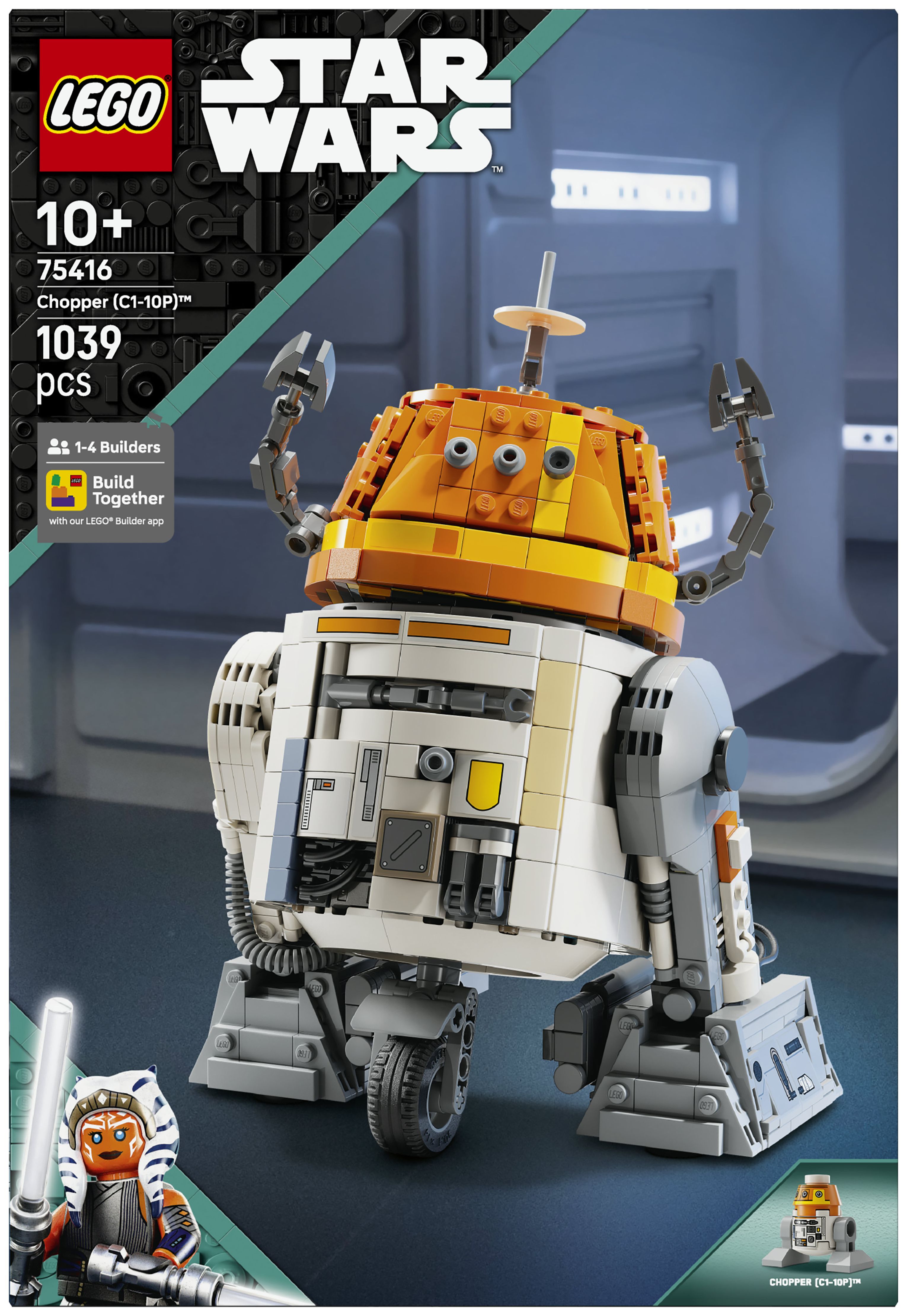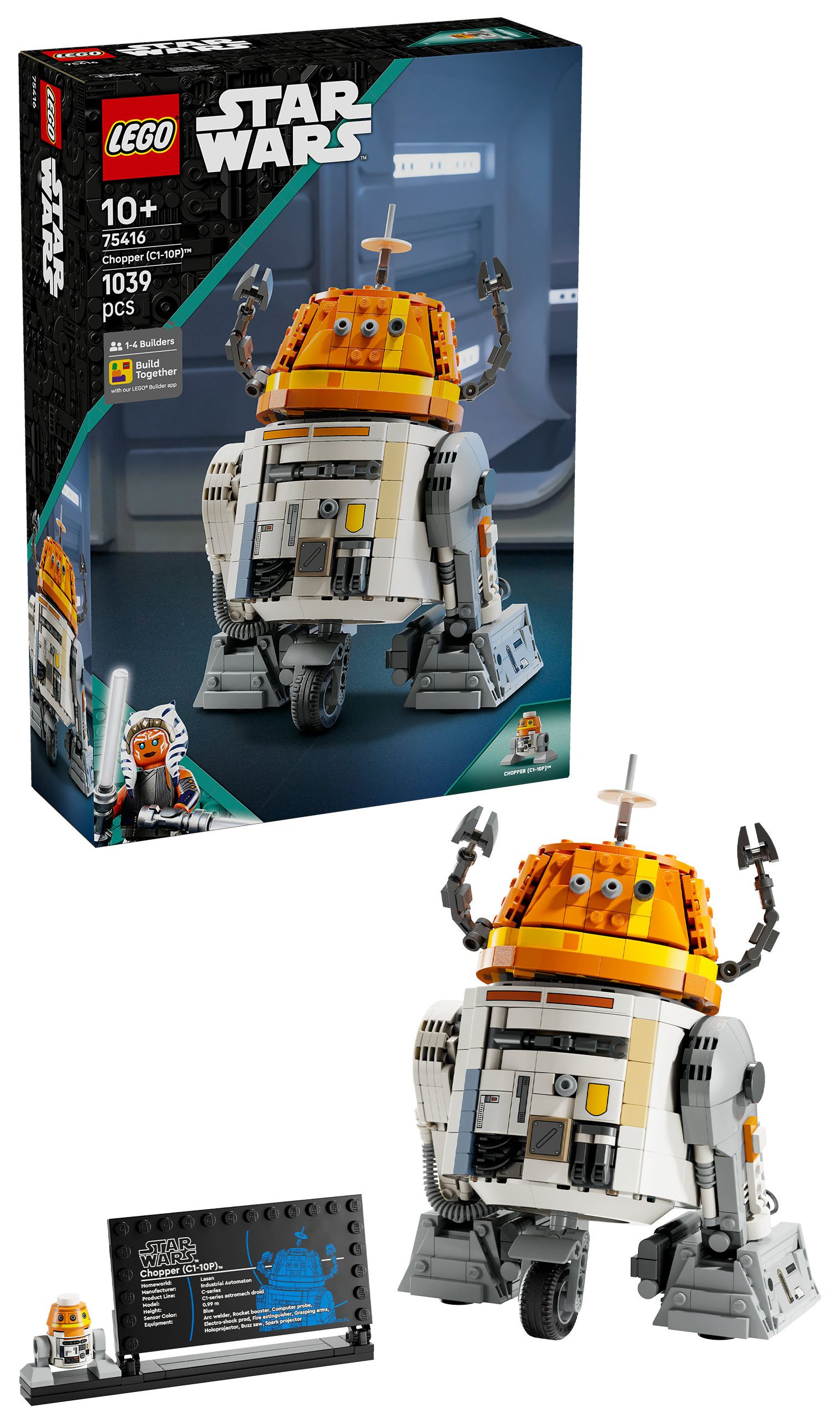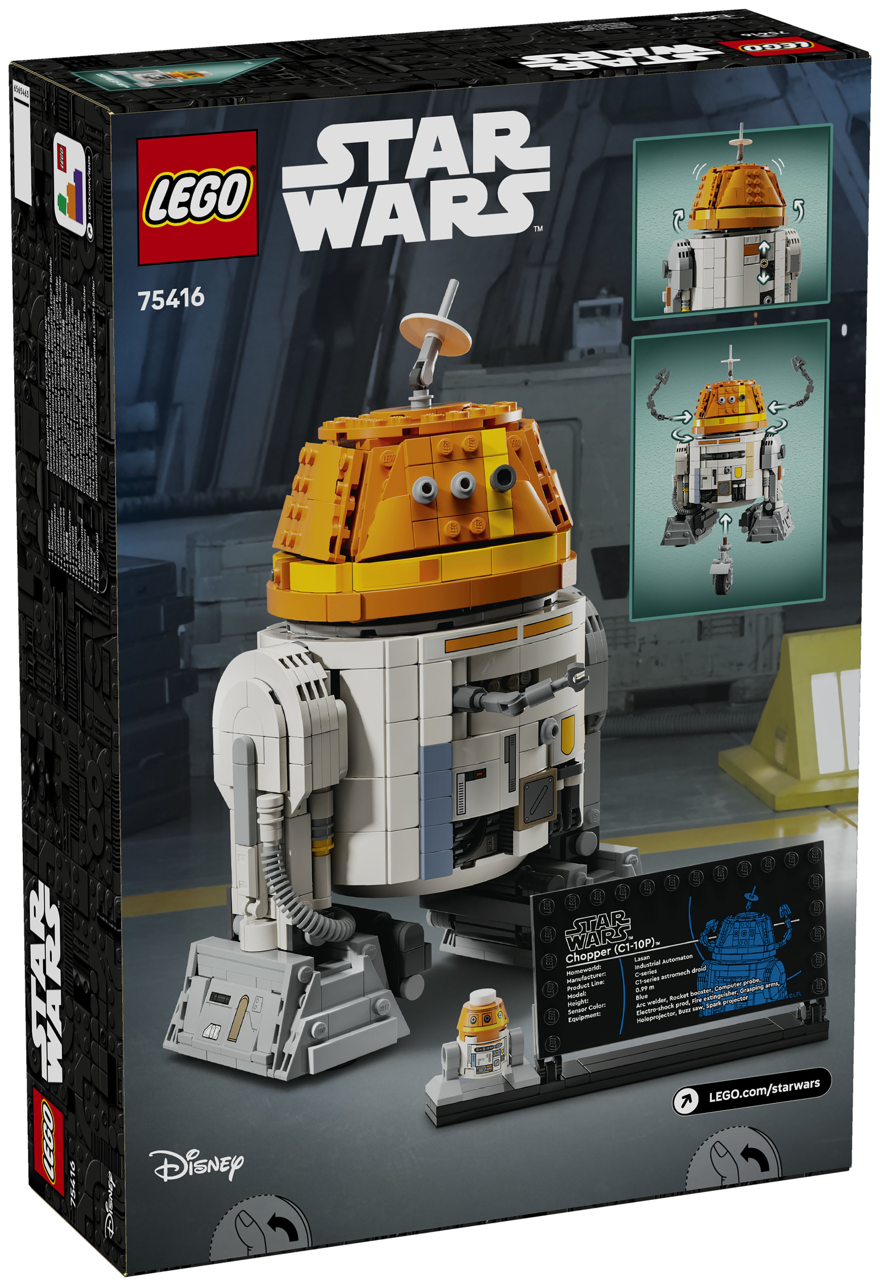 Das LEGO® Star Wars™ Bauset (75416) lässt Kinder ein Modell des liebenswerten Astromech-Droiden Chopper (C1-10P) bauen und ausstellen. Die baubare Figur Chopper aus Star Wars: Ahsoka hat viele originalgetreue Details und ist ein süßes Geburtstags- oder Weihnachtsgeschenk für Jungen, Mädchen und alle Fans ab 10 Jahren. Benutze den Hebel am Rücken, um seinen Kopf die legendären Bewegungen machen zu lassen. Bewege seine Arme und Beine und lass ein Werkzeug aus der Brust herausklappen. Man kann Choppers Arme und sein mittleres Rad abnehmen, damit es den Anschein hat, er hätte die Arme und das Rad in seinen Körper eingefahren.