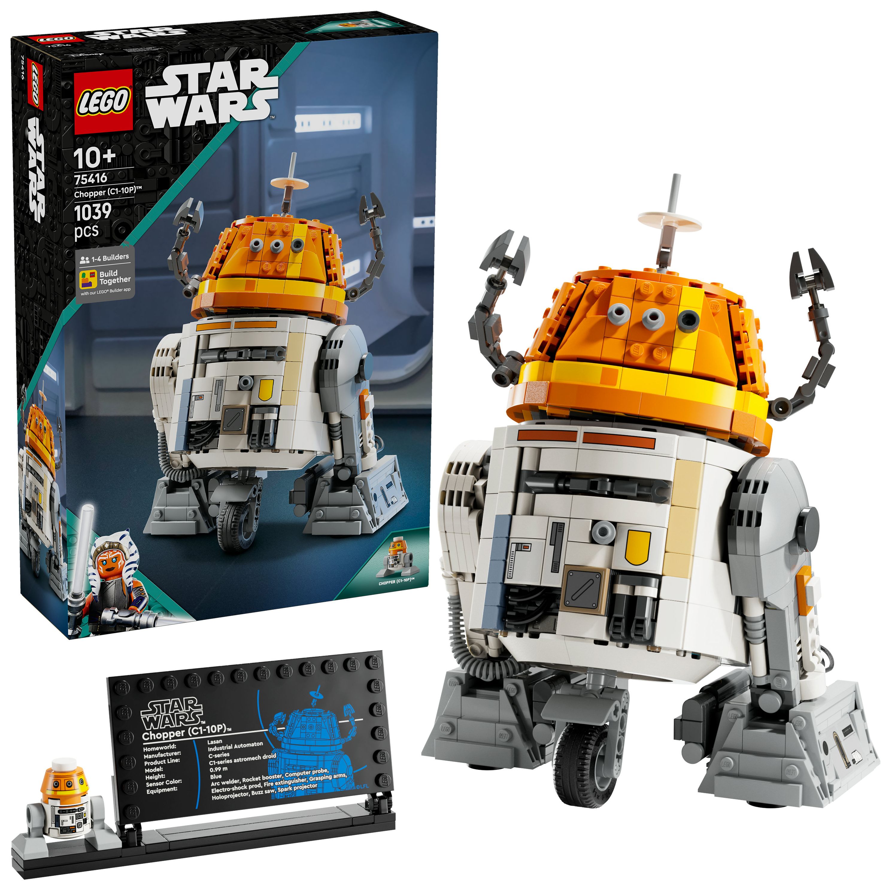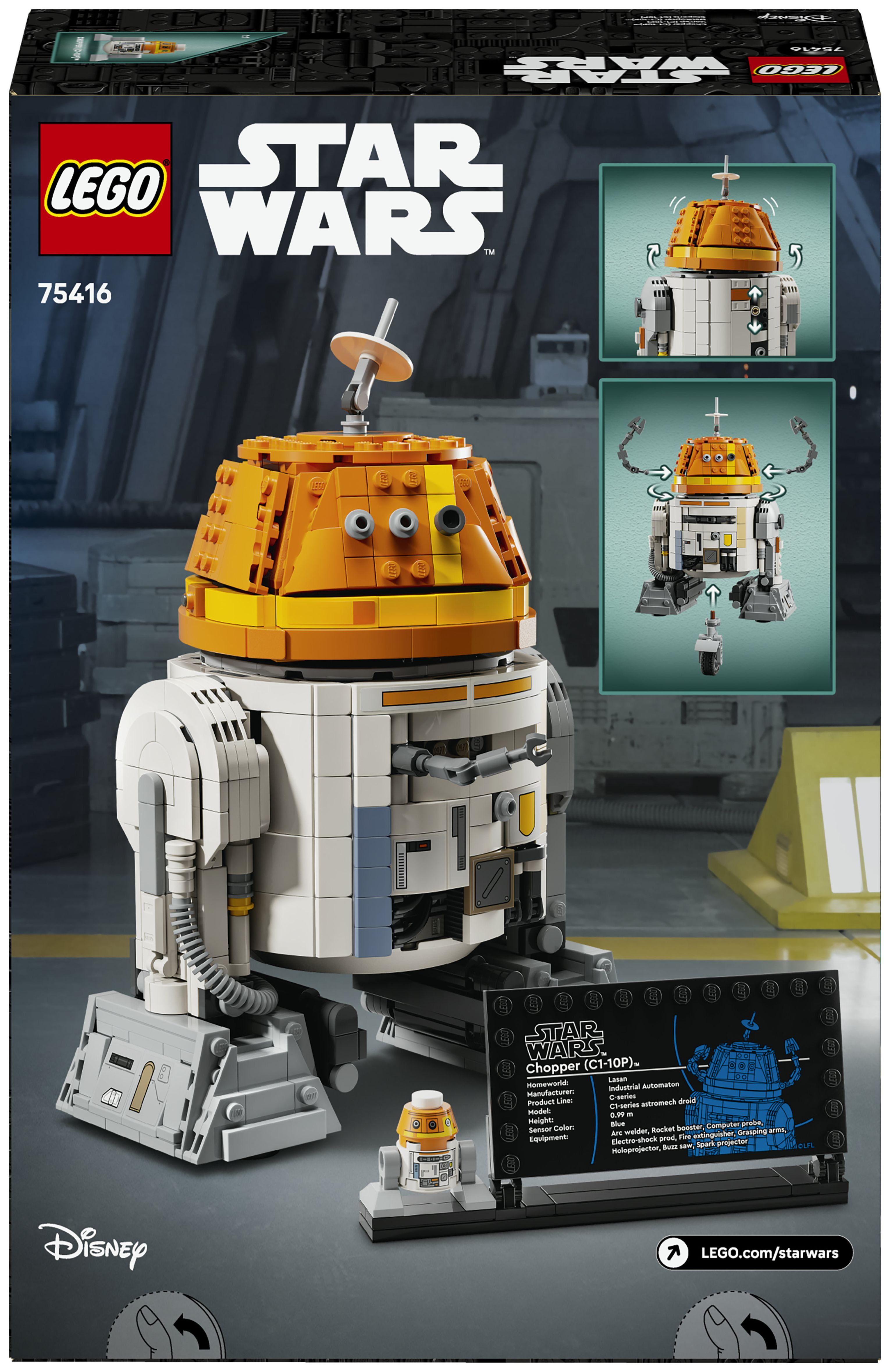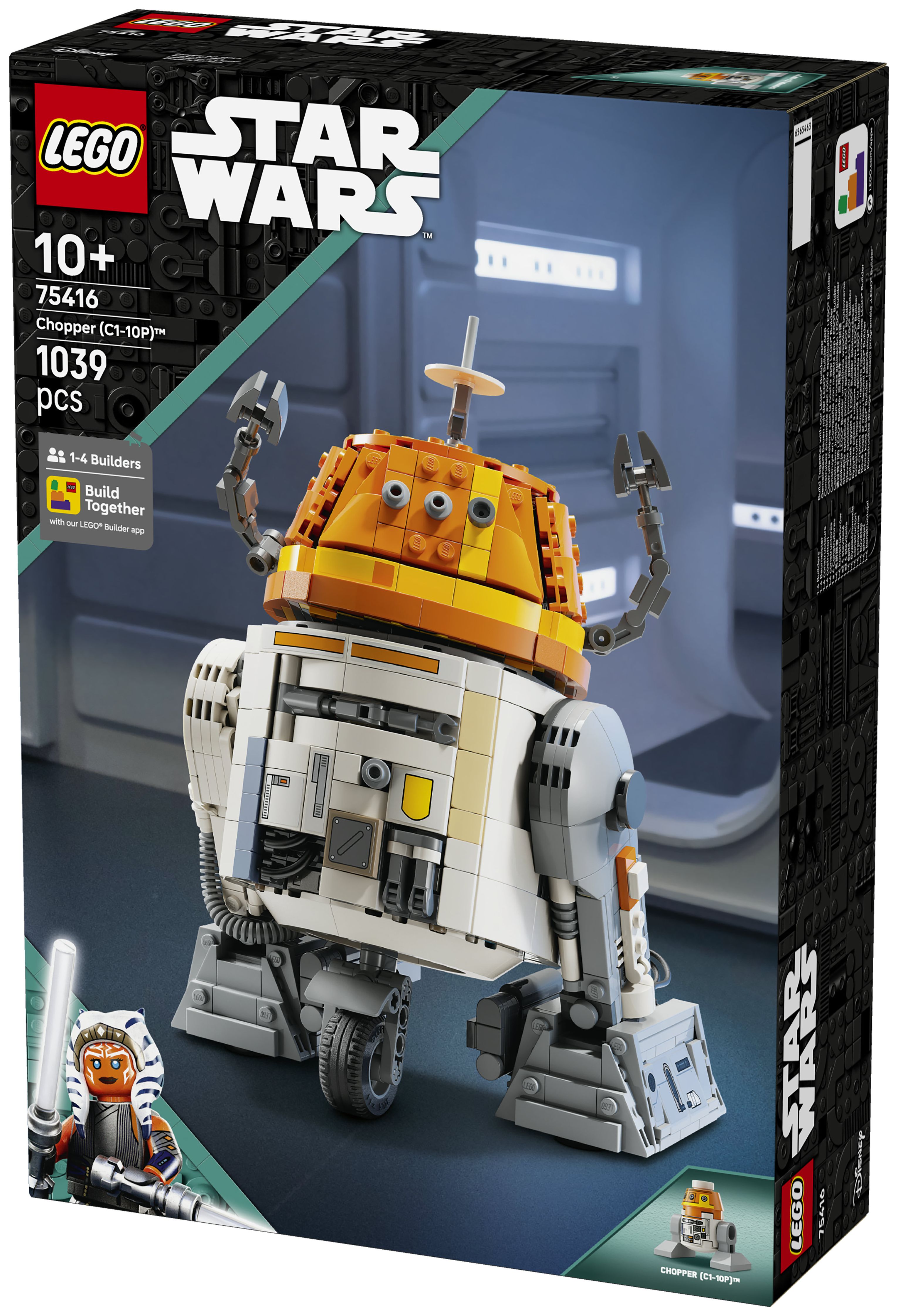 Das LEGO® Star Wars™ Bauset (75416) lässt Kinder ein Modell des liebenswerten Astromech-Droiden Chopper (C1-10P) bauen und ausstellen. Die baubare Figur Chopper aus Star Wars: Ahsoka hat viele originalgetreue Details und ist ein süßes Geburtstags- oder Weihnachtsgeschenk für Jungen, Mädchen und alle Fans ab 10 Jahren. Benutze den Hebel am Rücken, um seinen Kopf die legendären Bewegungen machen zu lassen. Bewege seine Arme und Beine und lass ein Werkzeug aus der Brust herausklappen. Man kann Choppers Arme und sein mittleres Rad abnehmen, damit es den Anschein hat, er hätte die Arme und das Rad in seinen Körper eingefahren.