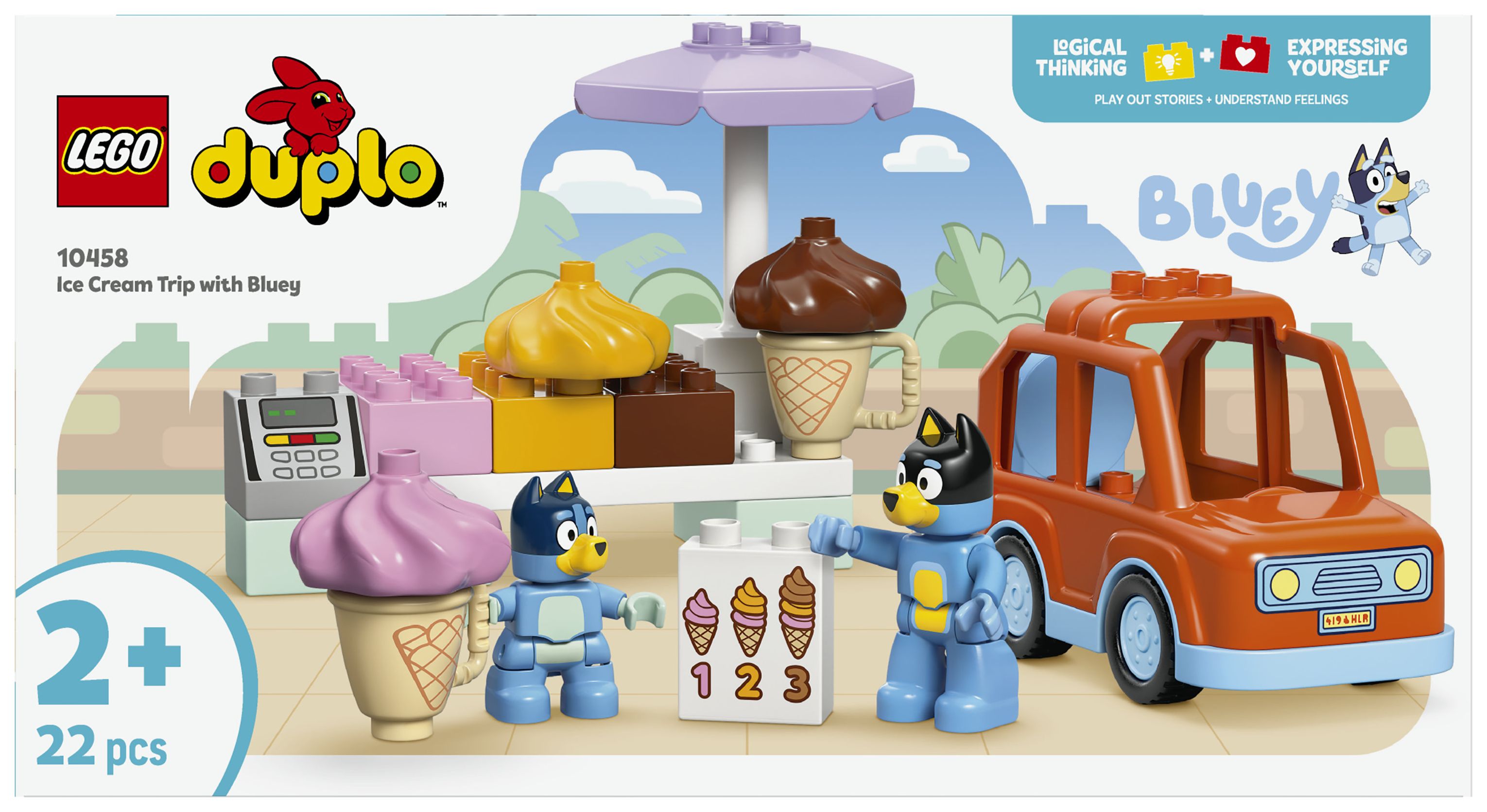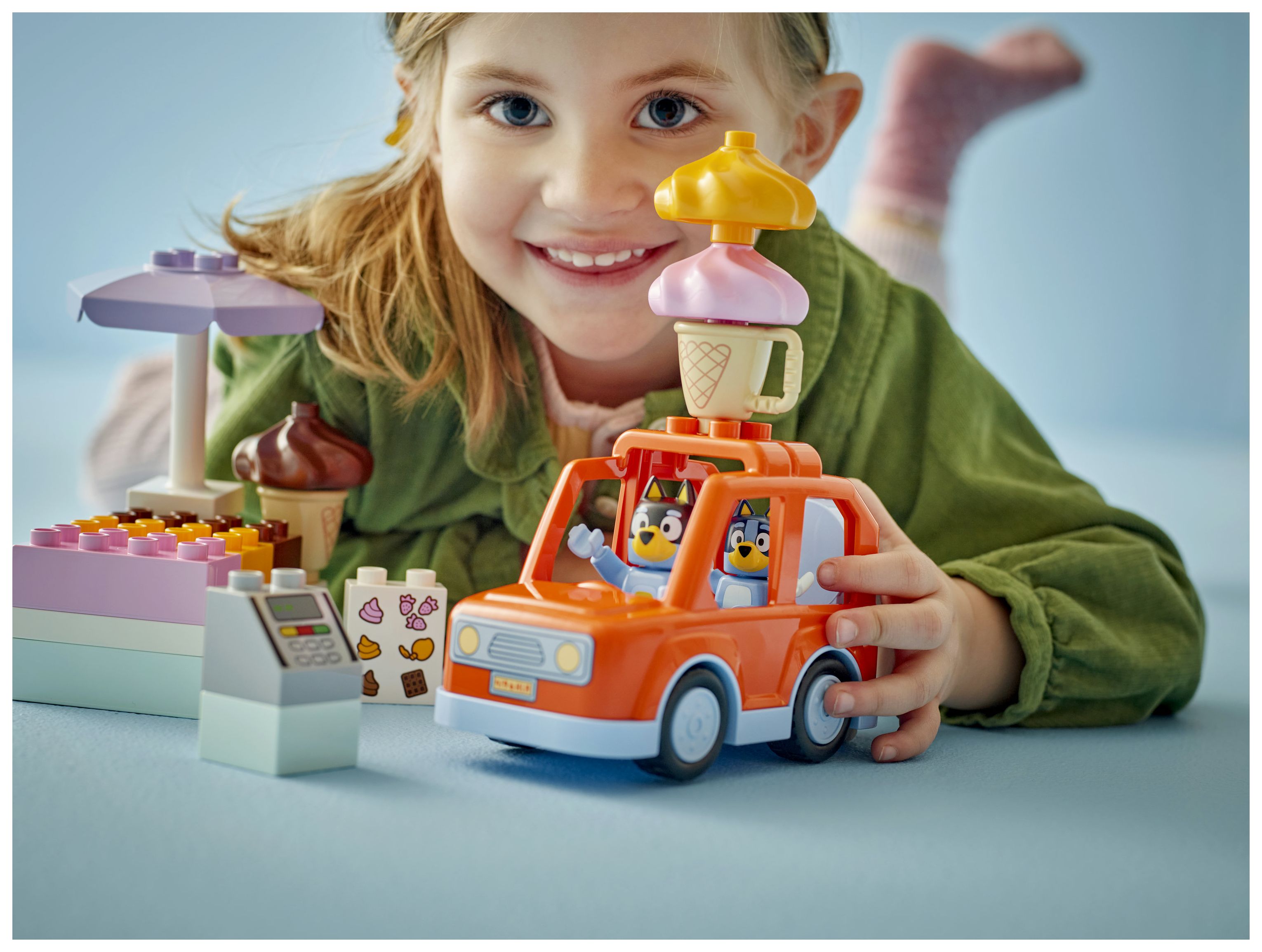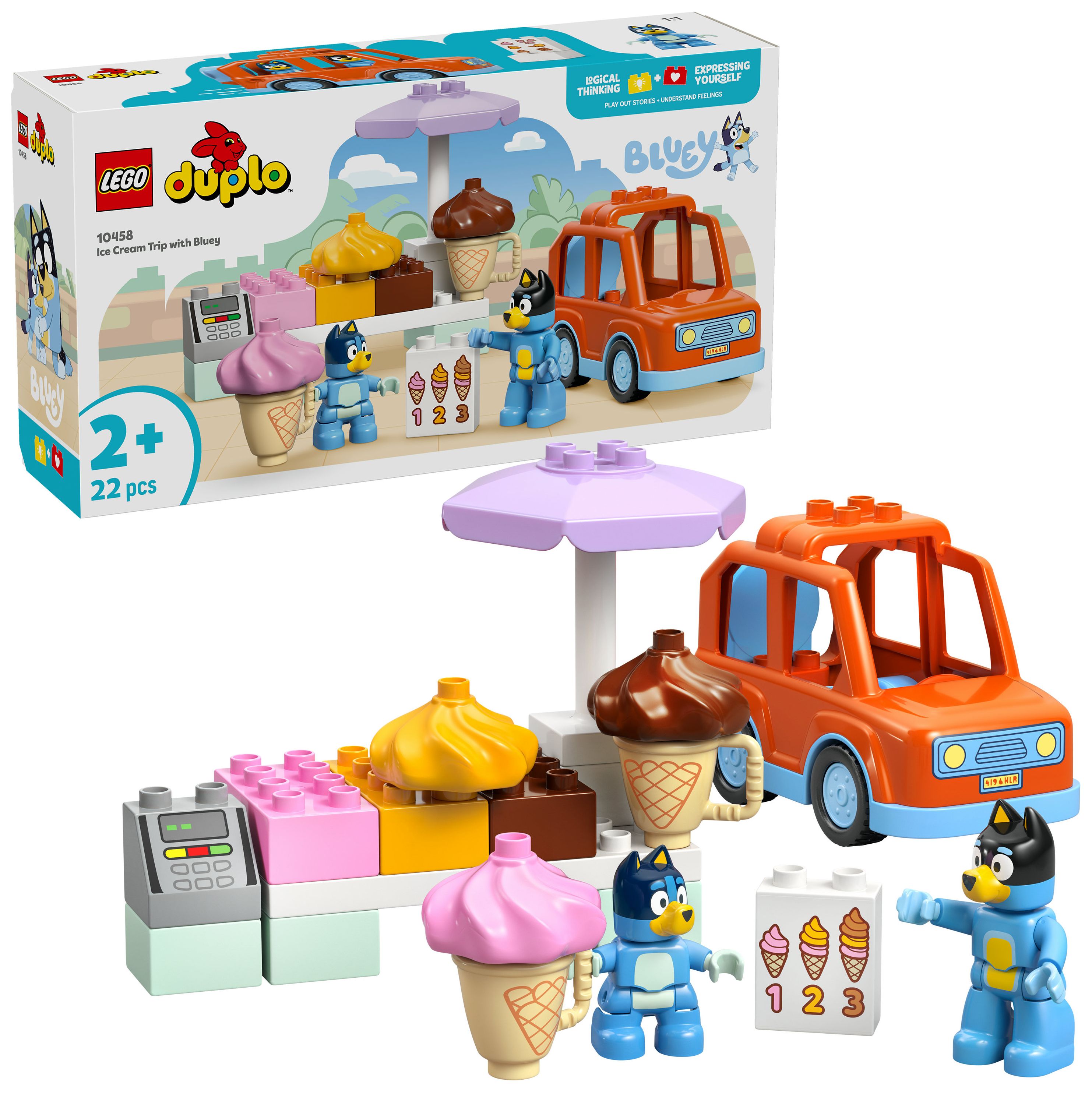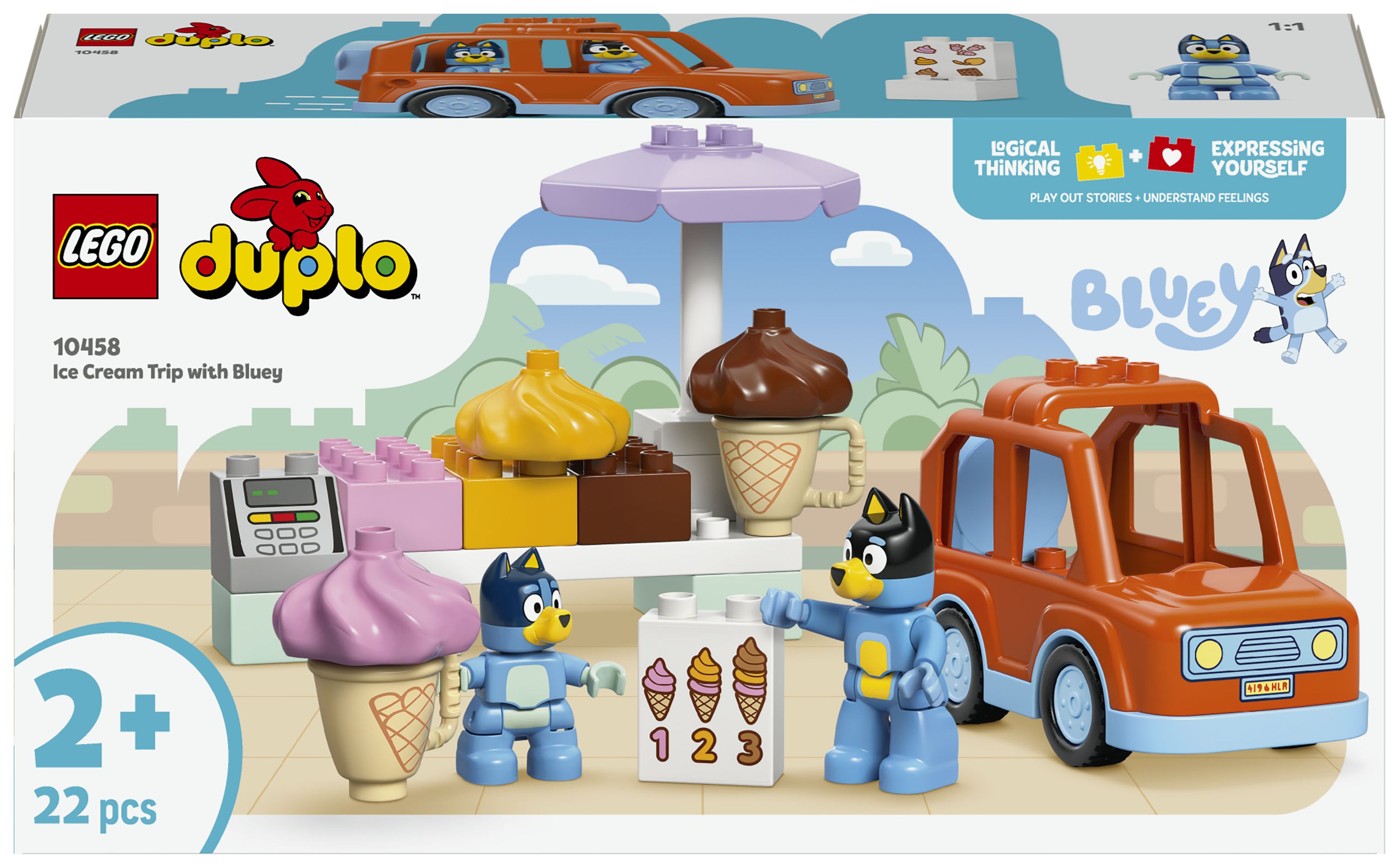 LEGO® DUPLO® Bluey Ausflug zur Eisdiele mit Bluey (10458); Set mit Auto und 2 Figuren; fantasievolles Spielerlebnis; Familienspaß; Geschenk für Kleinkinder ab 2 Jahren