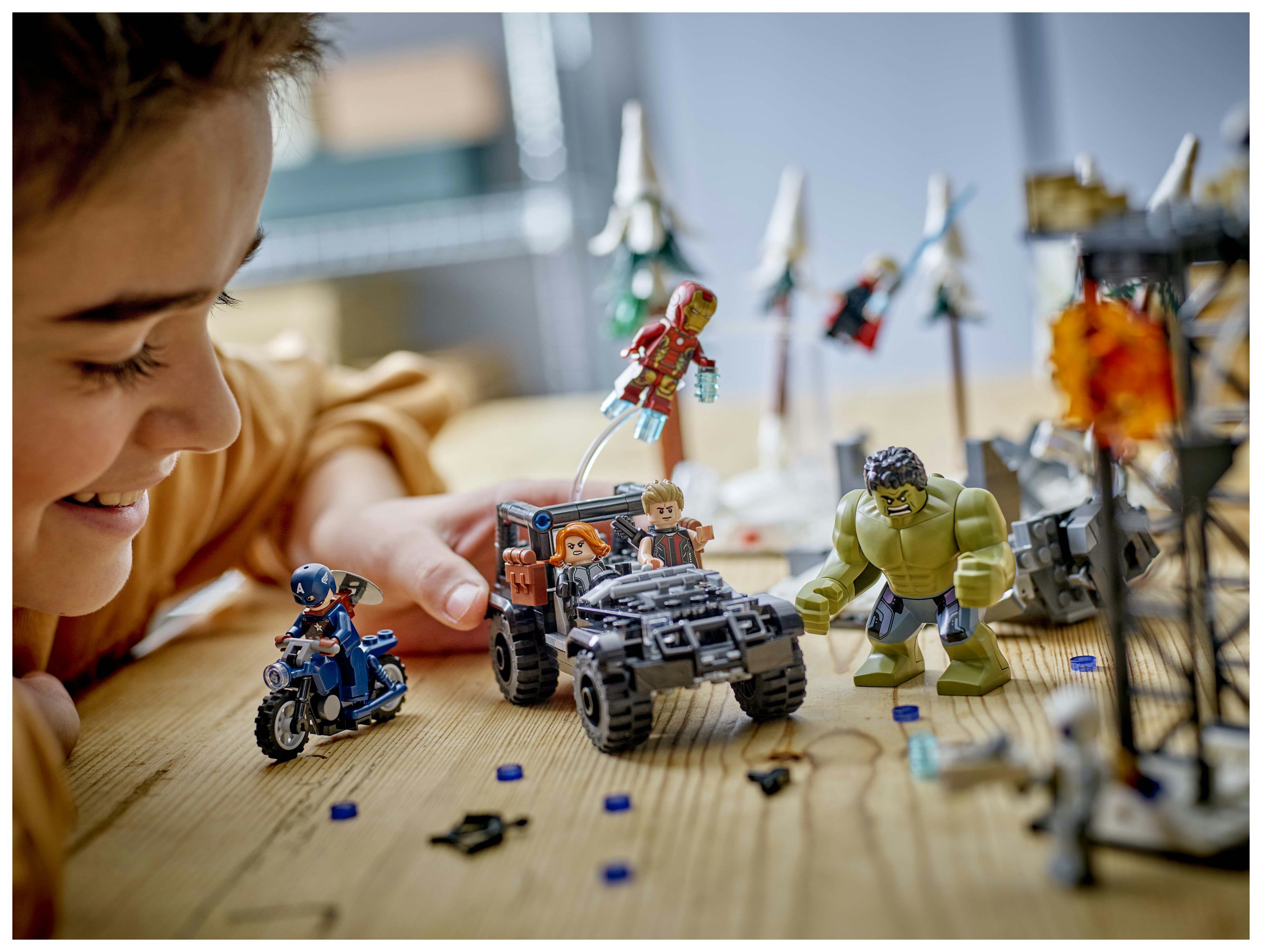 LEGO® Marvel Avengers zum Sammeln: Dieses Set zum Bauen, Spielen und Ausstellen beinhaltet 7 Minifiguren – Black Widow, Captain America, Iron Man, Thor und 3 HYDRA-Soldaten – sowie den Hulk als größere Figur