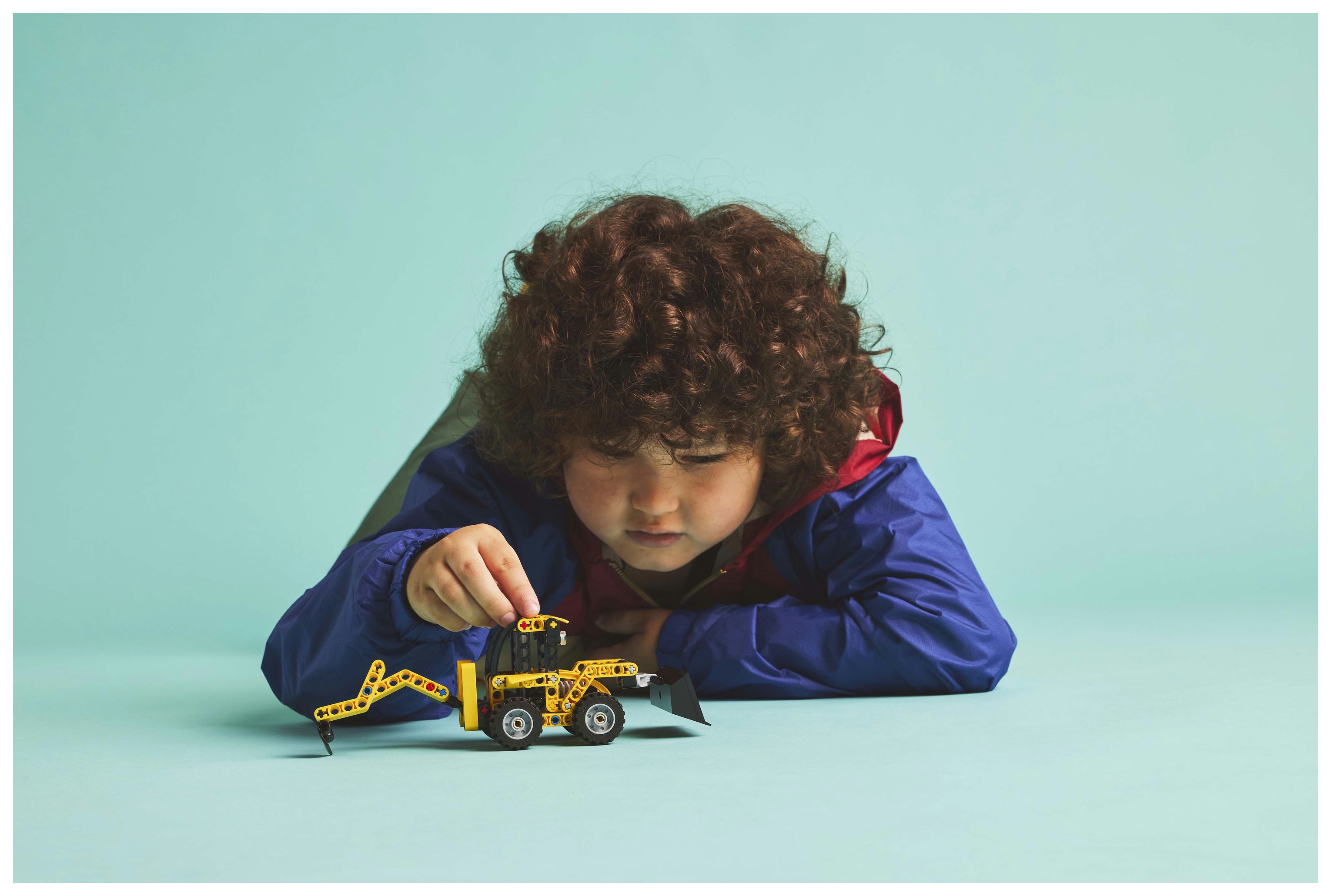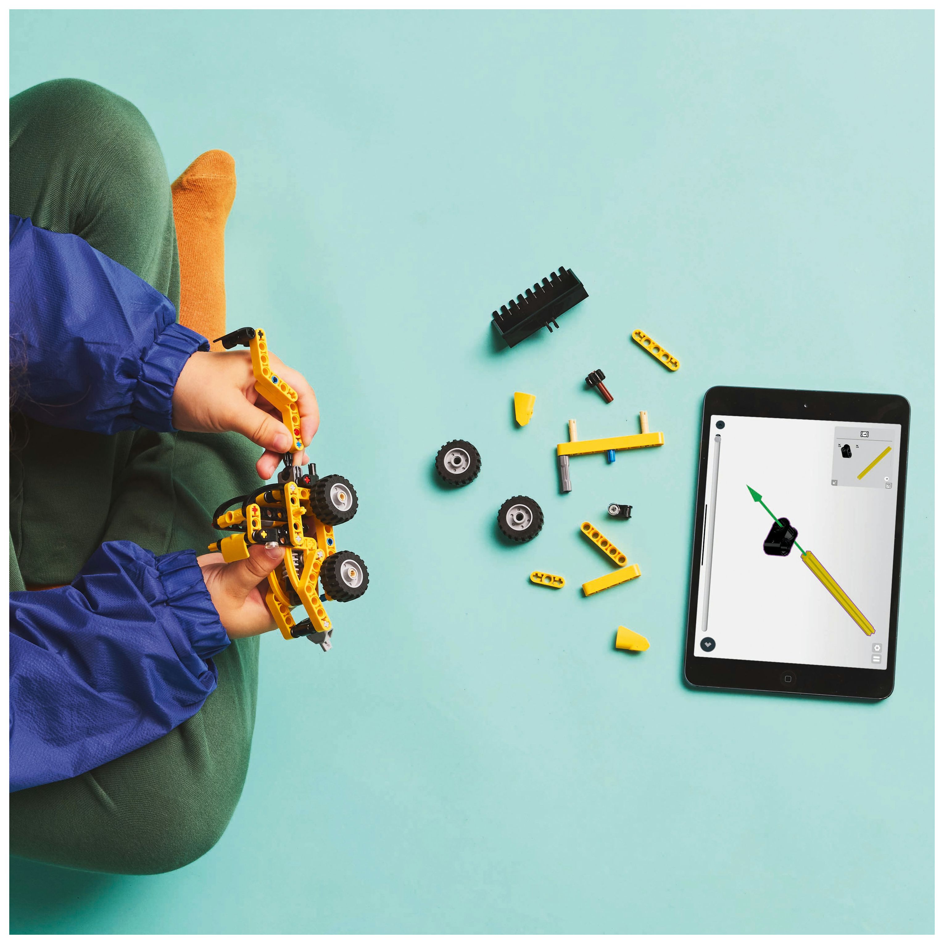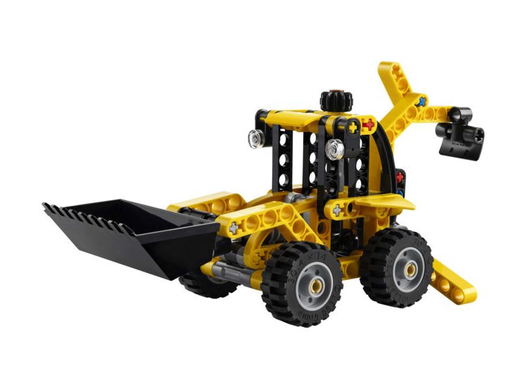 Probiere die vordere und hintere Schaufel aus: Der LEGO® Technic Baggerlader verfügt neben einer Heckschaufel und Stützfüßen auch über eine vordere Schaufel, die man mithilfe des Knaufs anheben oder absenken kann