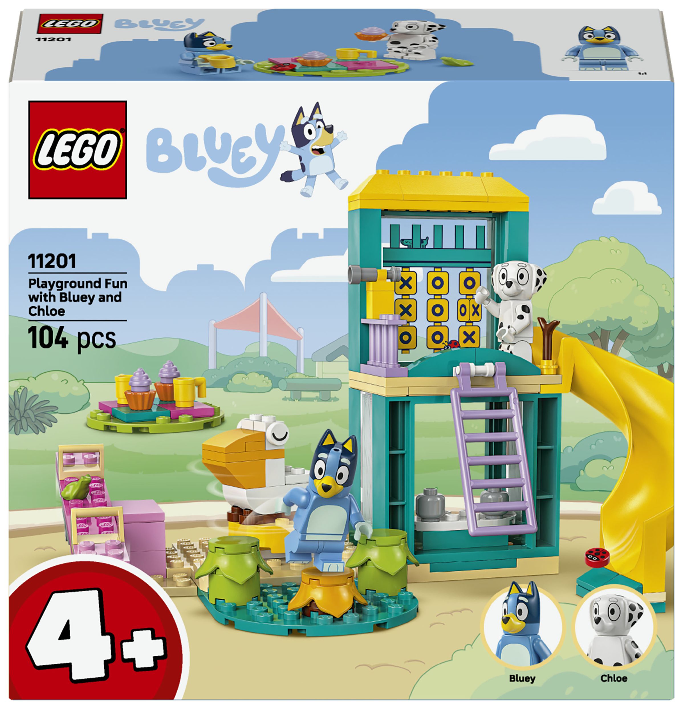 Bluey und Chloe auf dem Spielplatz (11201) ist ein Spielset für Fans der TV-Serie Bluey. Dieses Spielzeug bietet Vorschulkindern ab 4 Jahren unzählige kreative Spielmöglichkeiten. Beim Spielen entwickeln Kleinkinder Selbstvertrauen und lernen Probleme zu lösen.