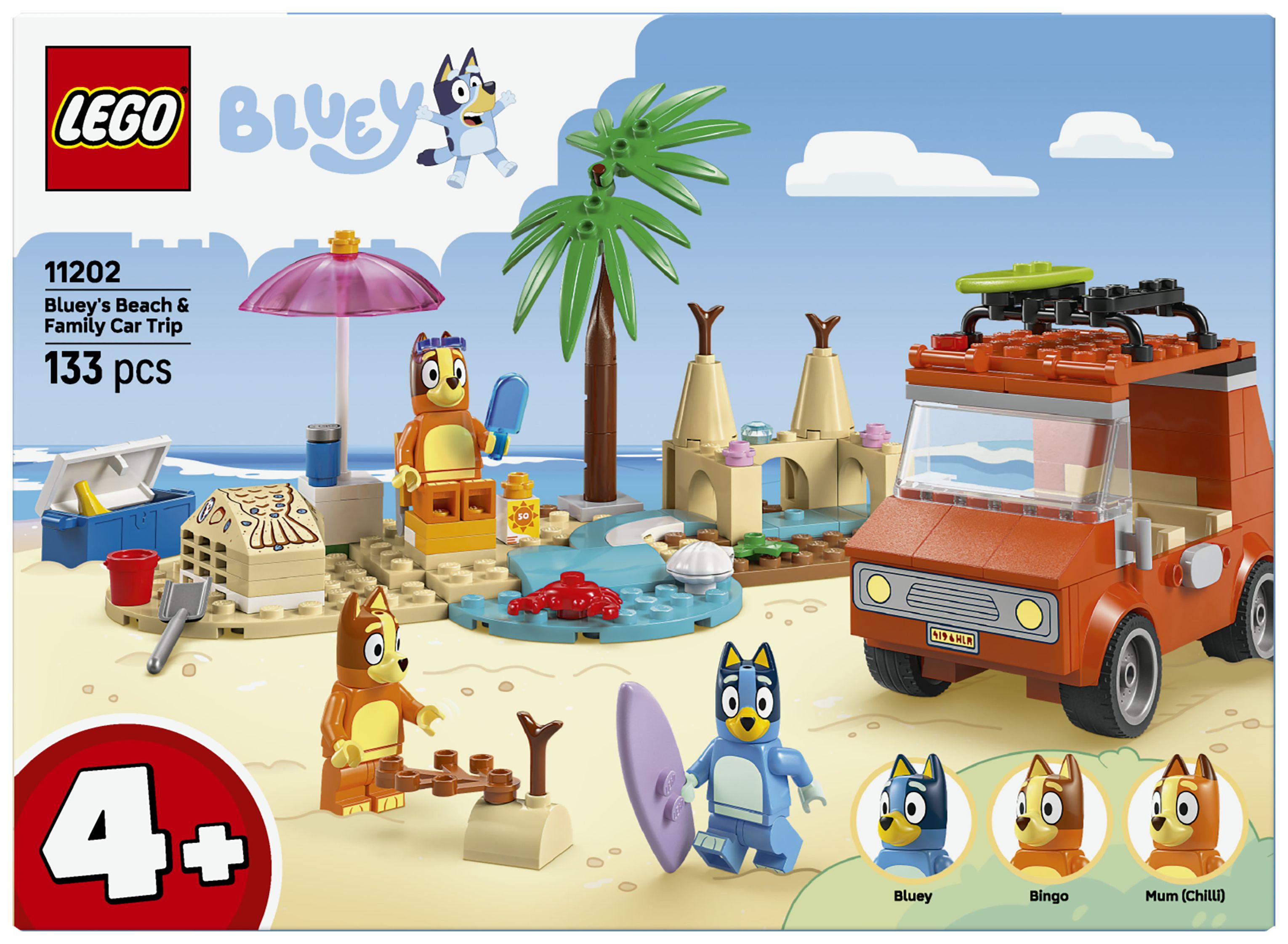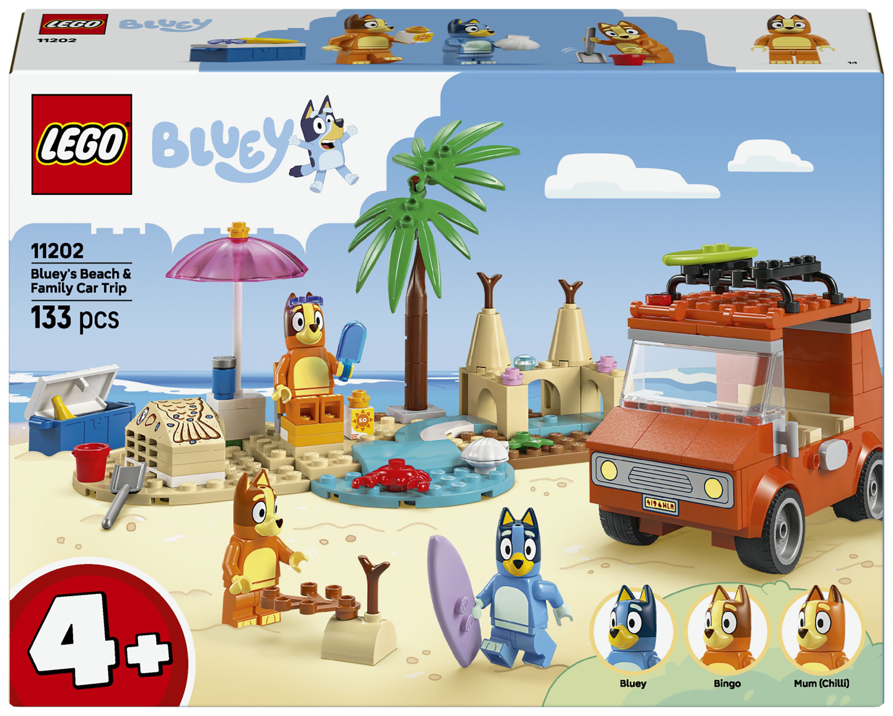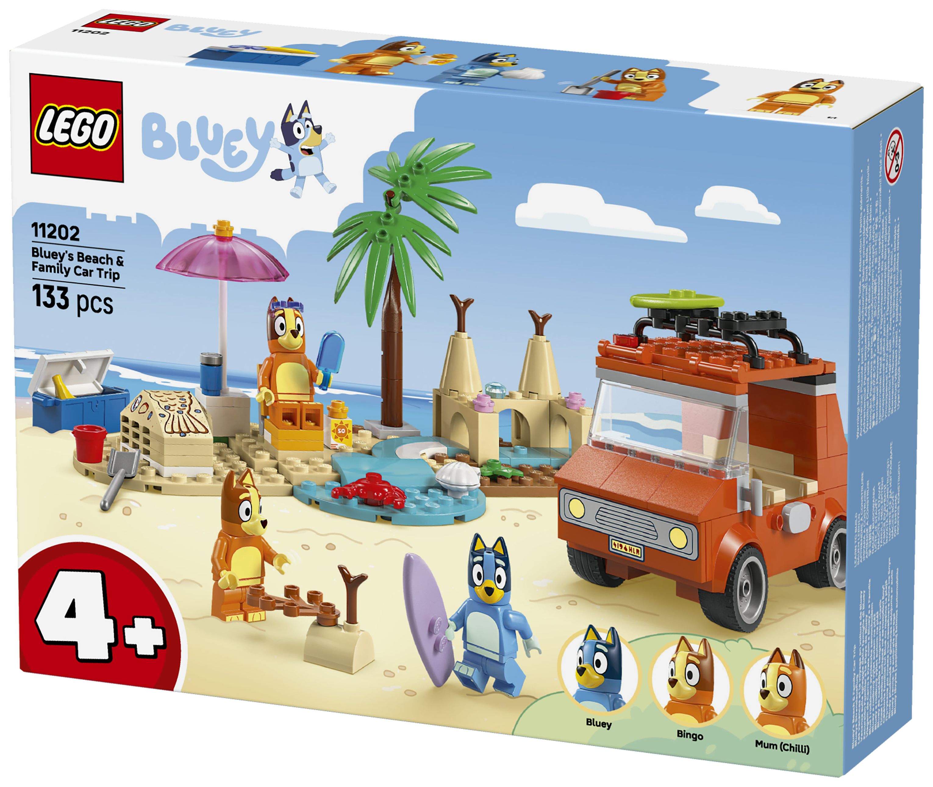 Blueys Strandausflug (11202) ist ein interaktives Spielzeug für junge Fans der TV-Serie Bluey und ein tolles Geschenk für Kinder ab 4 Jahren. Bluey, Bingo und Mum beladen das Auto für einen tollen Tag am Strand. Das Set lässt Kinder nicht nur fantasievoll spielen und Kreativität entwickeln, sondern bringt ihnen auch bei, kleine Probleme zu lösen.