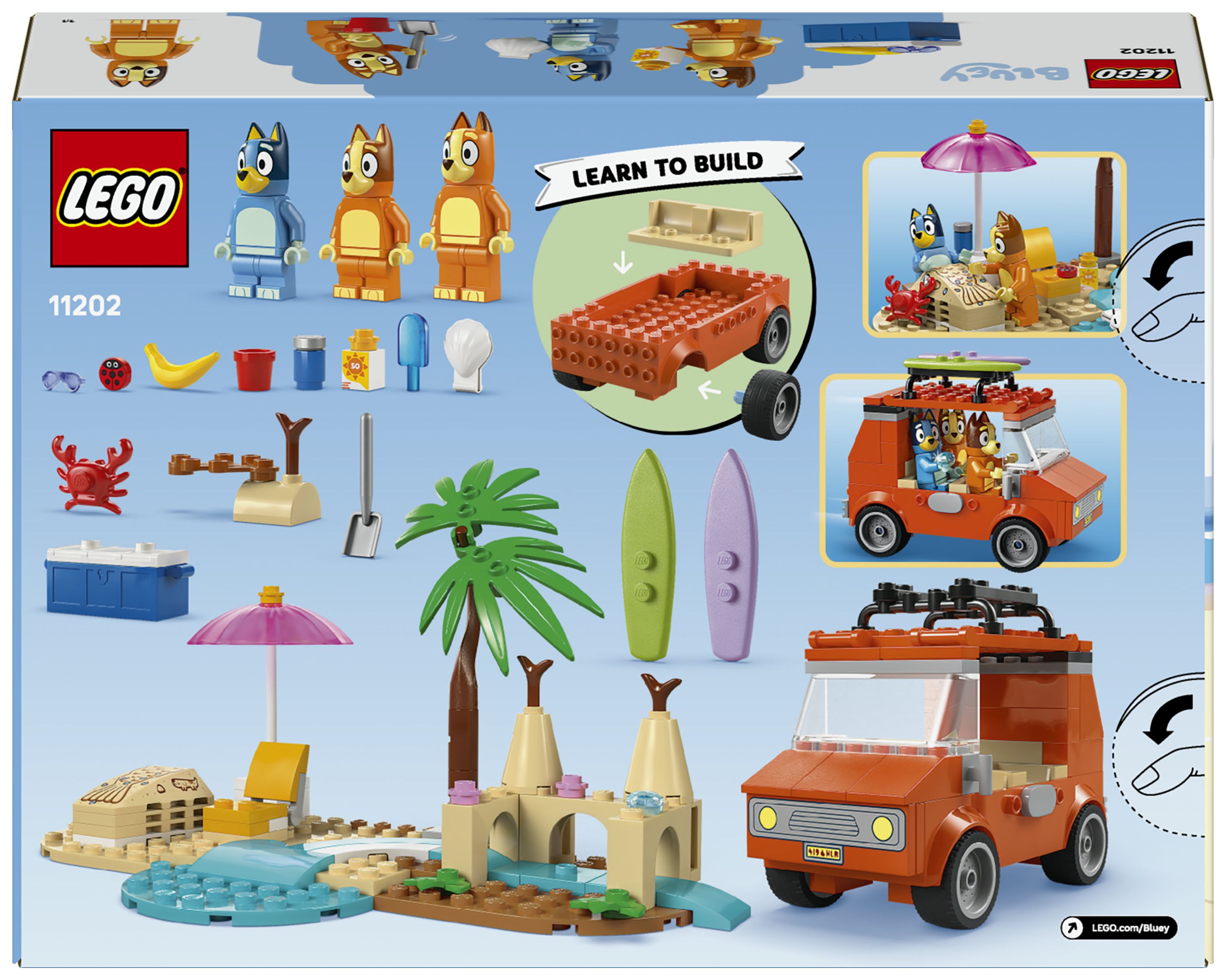 LEGO® Bluey: Blueys Strandausflug (11202); kreatives Bauset für Vorschulkinder; Spielset mit Auto und Minifiguren; Geschenk für Jungen und Mädchen ab 4 Jahren