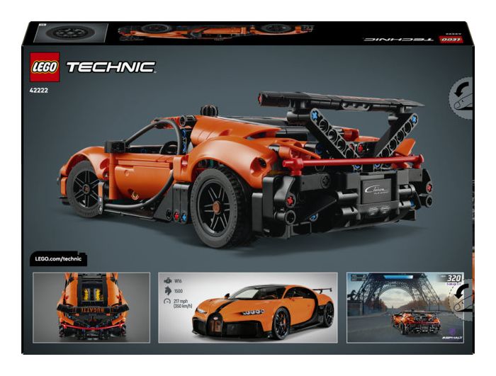 Das LEGO® Technic Bugatti Chiron Pur Sport Hypercar (42222) lässt Jungen und Mädchen ab 9 Jahren den Nervenkitzel auf einer Rennstrecke erleben. Der Flitzer hat jede Menge coole Funktionen, die Autofans erkunden können. Lenke das Hypercar mit dem Knauf auf dem Dach des Modells, klapp die Motorhaube auf, um den W16-Motor zu bestaunen, und öffne die Türen.