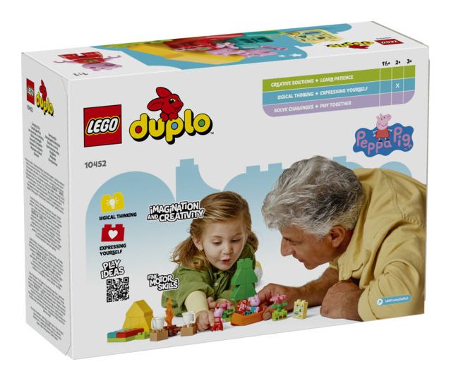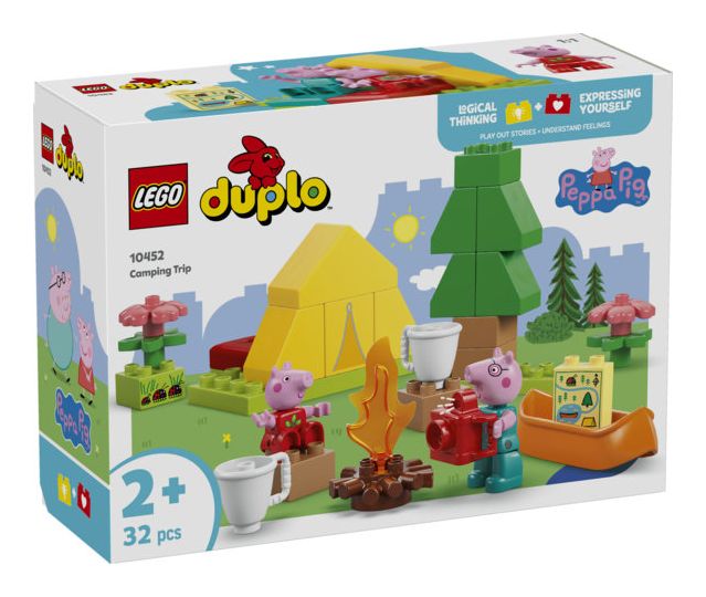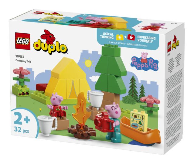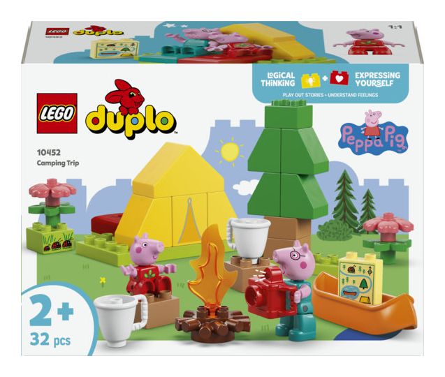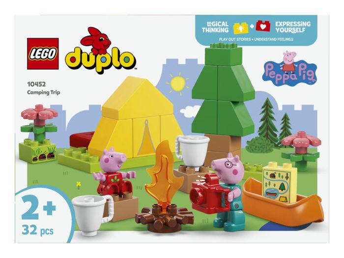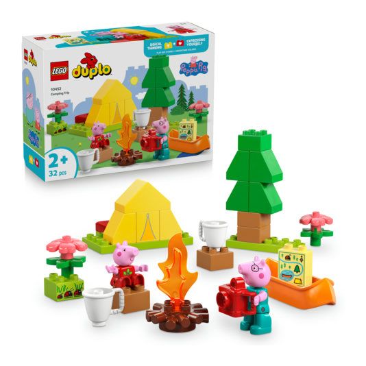 LEGO® DUPLO® Peppa Wutz Campingausflug (10452) ist ein Bau- und Spielset, das Kleinkinder auf ein Abenteuer schickt. Wenn Vorschulkinder kreativ spielen, entdecken sie, wie sie sich dabei fühlen, wenn sie etwas zum ersten Mal machen. Rollenspiele mit Peppa und Papa lassen sie einen Campingausflug und eine Kanutour auf dem Fluss erleben.
