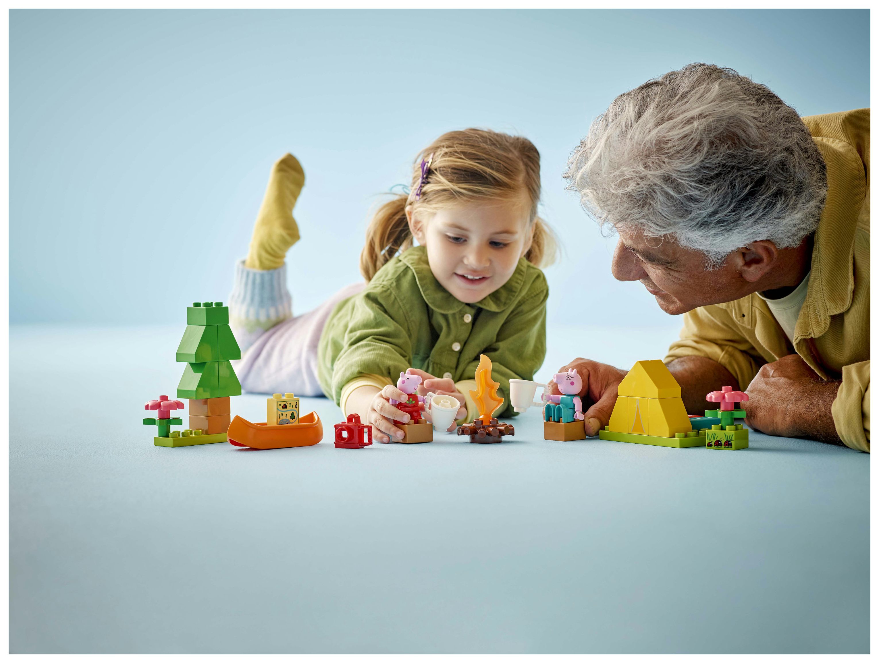 Campingspielset für naturbegeisterte Vorschulkinder: LEGO® DUPLO® Peppa Wutz Campingausflug ist ein Bauspielzeug, das Kleinkinder mit Peppa Wutz und Papa zu Abenteuern im Wald aufbrechen lässt