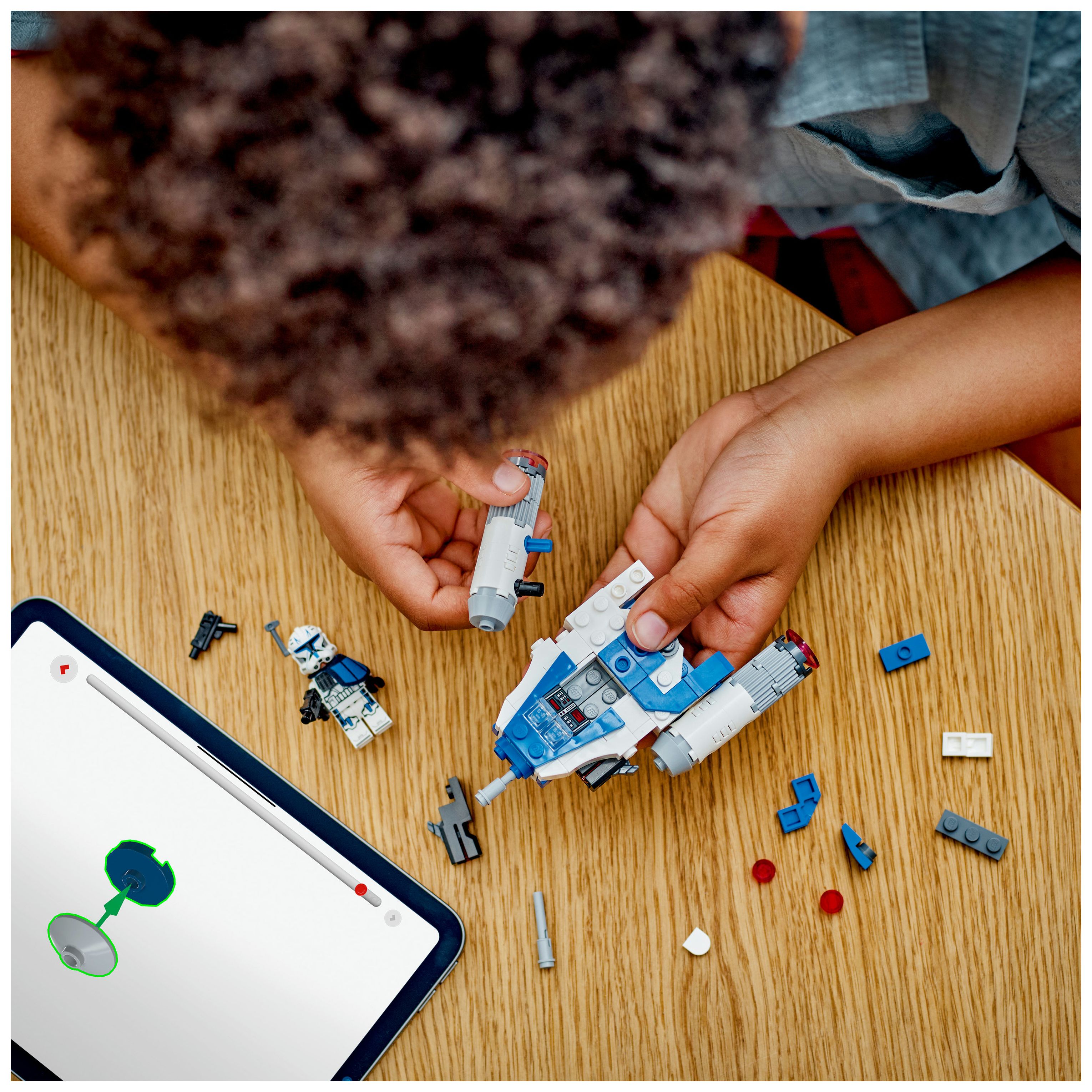 Rasch gebauter LEGO® Star Wars™ Sternjäger im Mikro-Maßstab: Captain Rex Y-Wing Microfighter aus LEGO Steinen inspiriert junge Kinder dazu, eigene Abenteuer aus Star Wars: The Clone Wars darzustellen