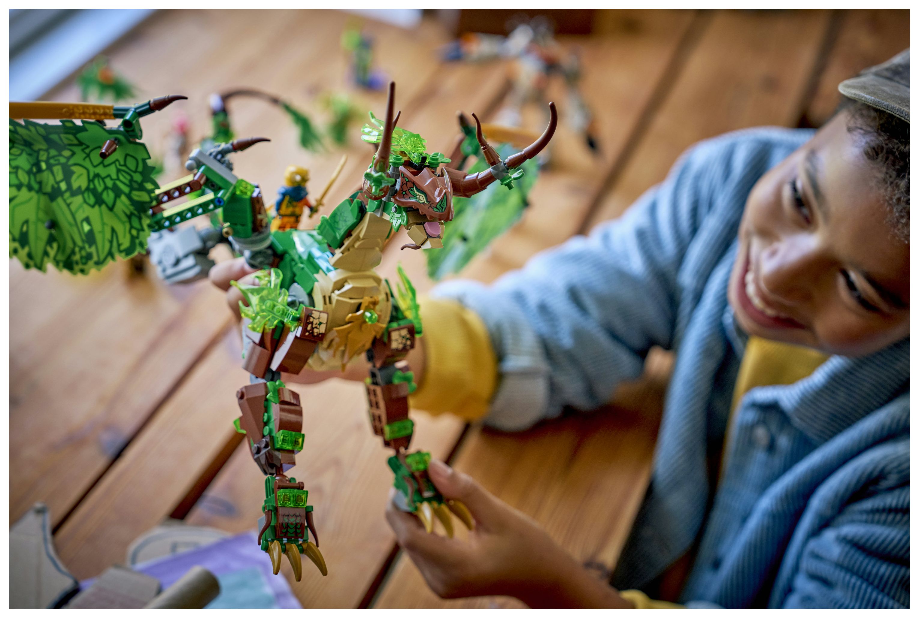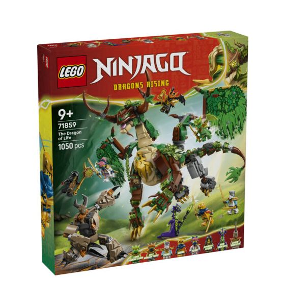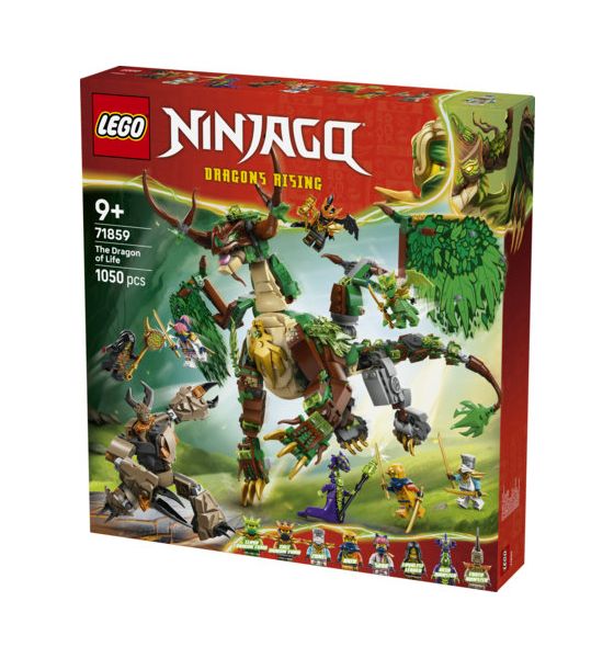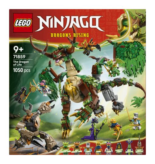 LEGO® NINJAGO® Der Drache des Lebens (71859) lässt Kinder ab 9 Jahren das Modell bauen und dann die Actionszenen aus der 4. Staffel der TV-Serie NINJAGO Aufstieg der Drachen nachspielen. Der Spielzeugdrache kann seine Flügel ausbreiten oder anlegen und Kiefer, Kopf, Hals, Knöchel, Klauen und Schwanz bewegen. Außerdem trägt er einen Sattel für eine Minifigur.