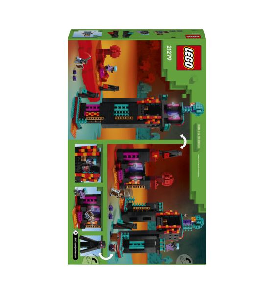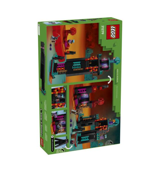 Das Hauptmodell ist ein Turm in der Form des Endermans. In seinem Kopf befindet sich ein Netherportal, jede Schulter trägt einen Balkon und in 2 Räumen stehen eine Werkbank, ein Zaubertisch und eine Kiste für Enderperlen. Leitern führen die Beine hinauf, und die Gelenkarme sind voll beweglich. Draußen befinden sich Elemente aus dem Wirrwald und dem Karmesinwald. Zum Set gehören auch 4 Minifiguren (ein Dimensionsverteidiger, ein Welträuber und 2 Endermen) sowie 2 Endermilben. Die Ausrüstung umfasst eine Minecraft Armbrust sowie ein Netherit-Schwert und einen Netherit-Schild. Der Enderman-Turm kann in 2 Festungen in unterschiedlichen Farben umgebaut werden, um den klassischen PvP-Actionspaß nachzustellen. Die LEGO® Builder App bietet zusätzlichen Bauspaß. Besteht aus 867 Teilen.