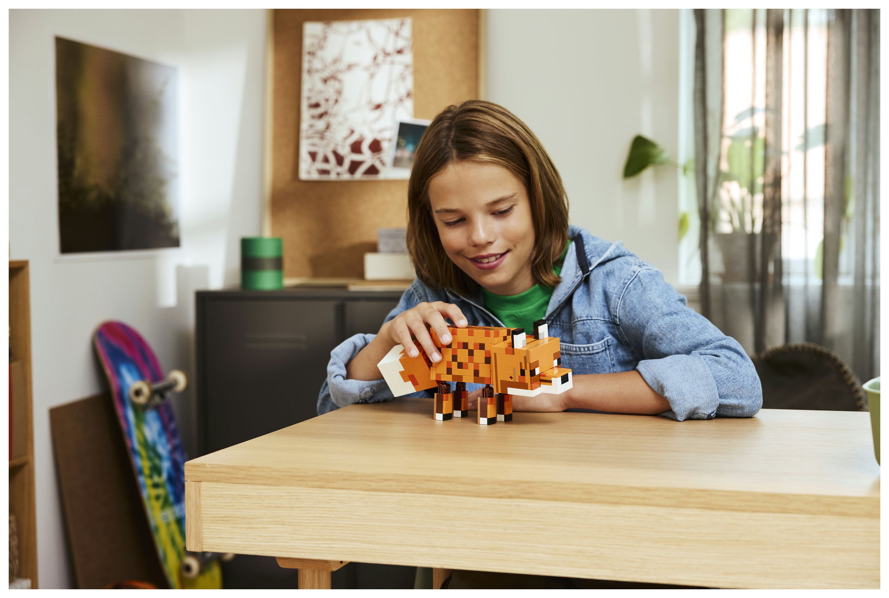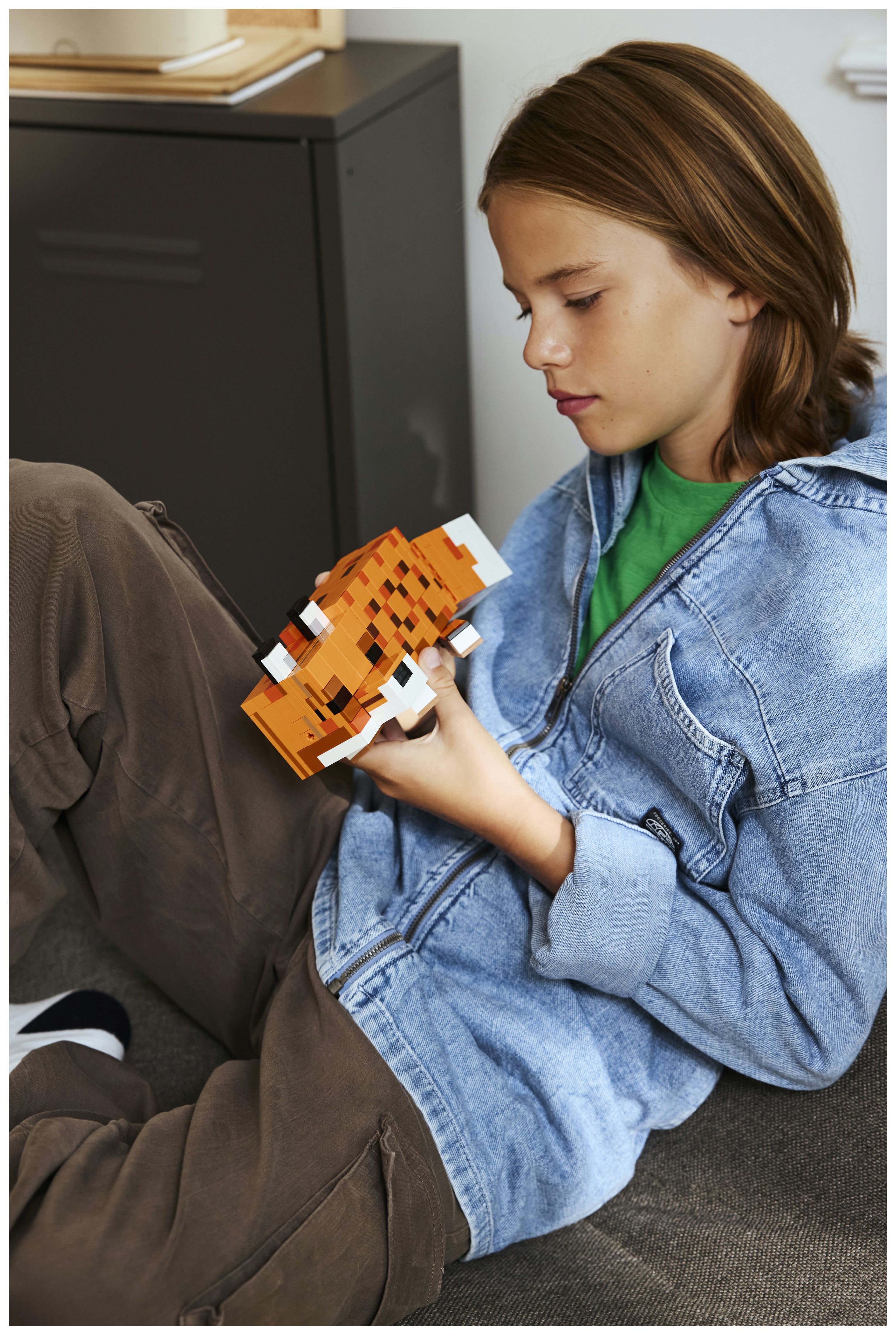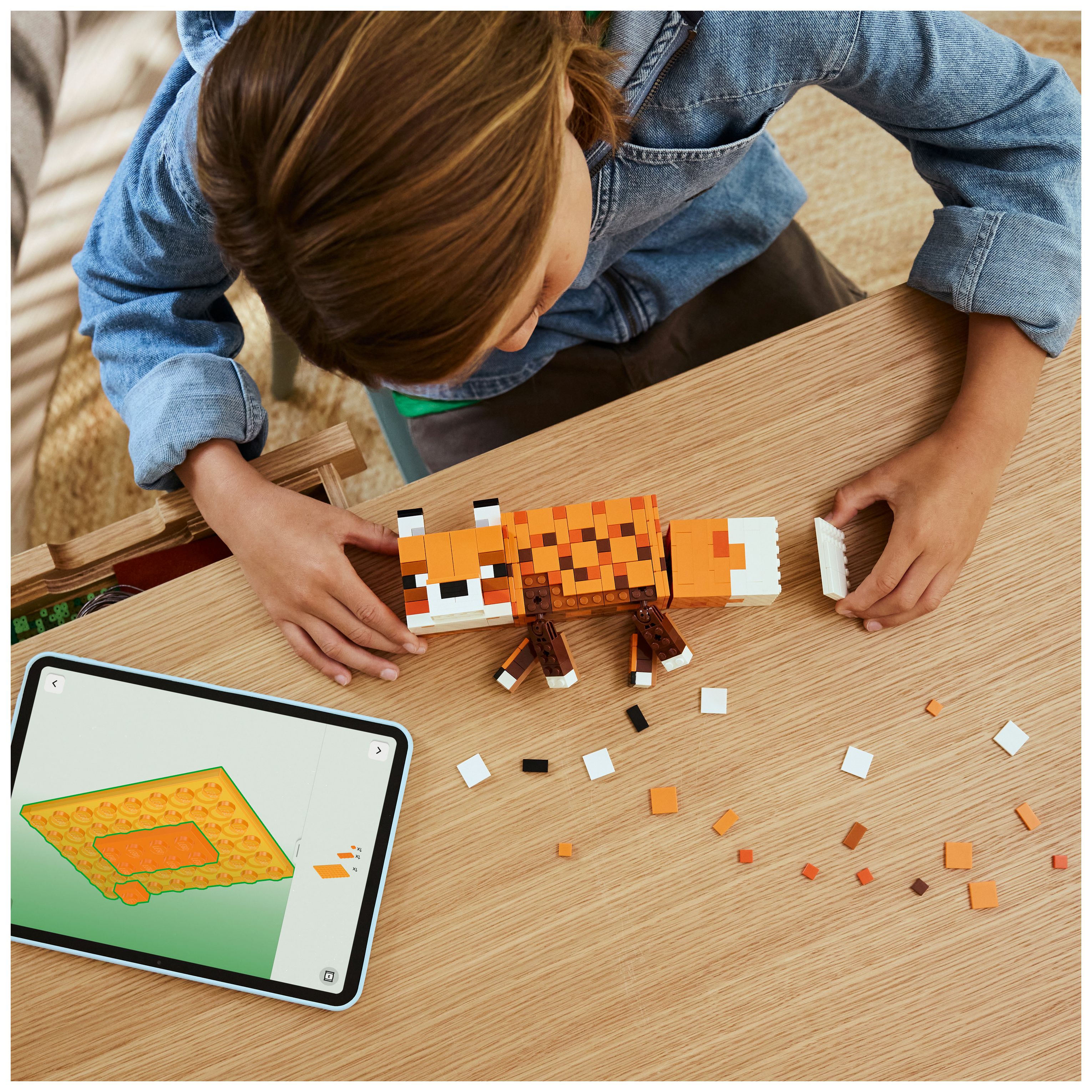 Dieses Bauset für Kinder bildet den Fuchs aus dem Videospiel in einem imposanten Maßstab und sehr originalgetreu nach. Deshalb ist das Set ein tolles Geschenk für Minecraft-Spieler und alle Fans, die Gaming-Deko lieben. Man kann die Beine bewegen, den Hals drehen und den Kopf anders positionieren. Du kannst die Figur sitzend oder stehend mit offenen Augen oder liegend mit geschlossenen Augen ausstellen, als würde er schlafen. Und die LEGO Builder App mit verständlichen digitalen Bauanleitungen lässt Kinder selbstbewusst bauen, 3D-Modellansichten vergrößern und drehen und den Baufortschritt verfolgen. Das Set besteht aus 497 Teilen.