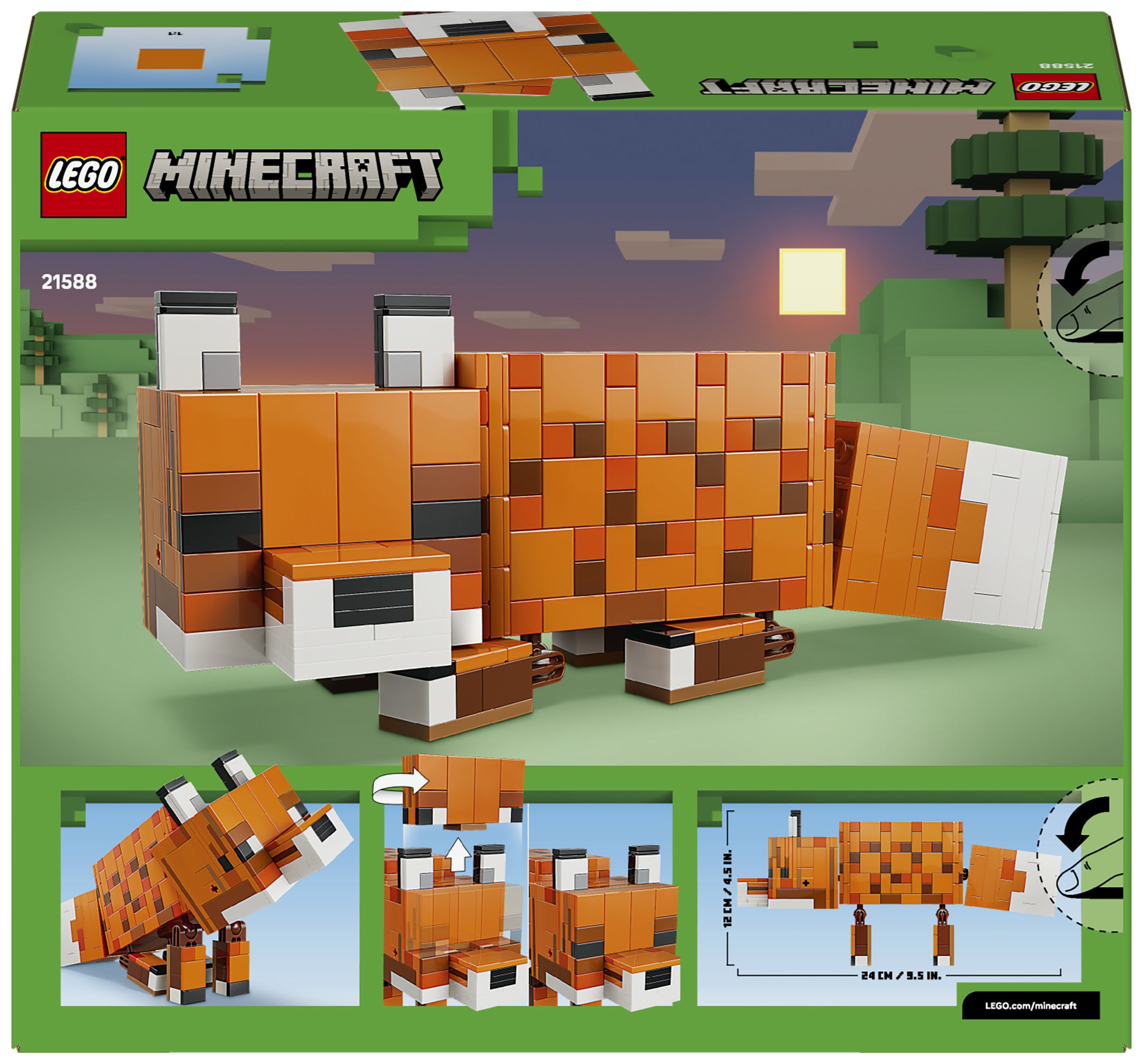 ABMESSUNGEN: LEGO® Minecraft® Der Fuchs aus diesem 497-teiligen Bauset ist 12 cm hoch, 6 cm breit und 24 cm tief