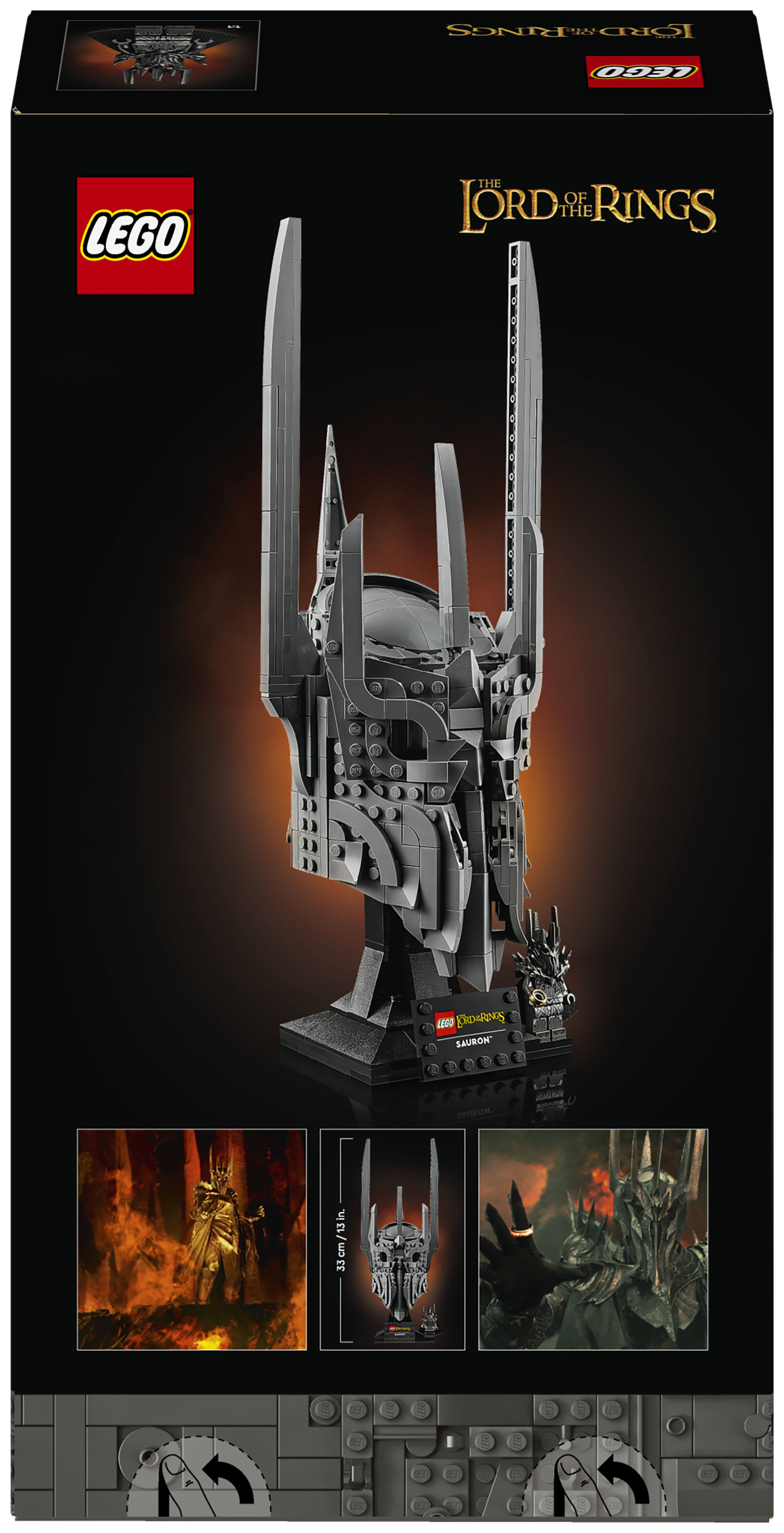 ABMESSUNGEN: LEGO® Icons Der Herr der Ringe: Saurons Helm ist ein 538-teiliges Bauset mit einem 33 cm hohen, 13 cm breiten und 13 cm tiefen Modell
