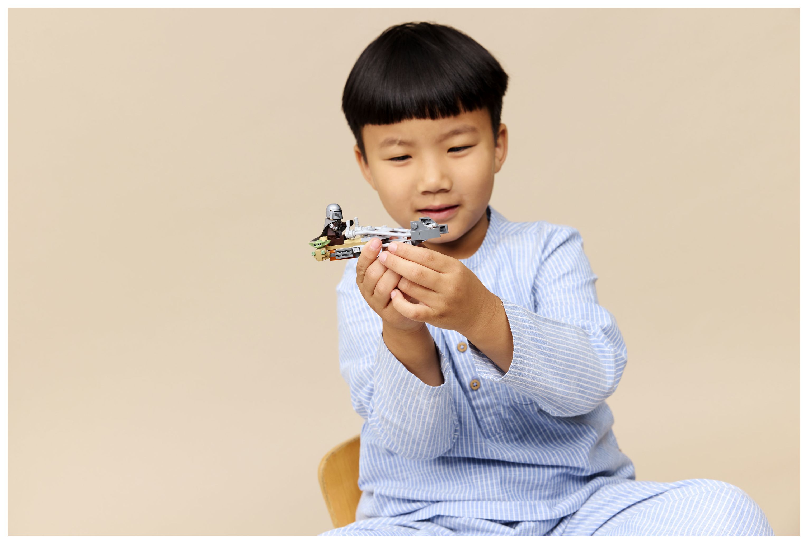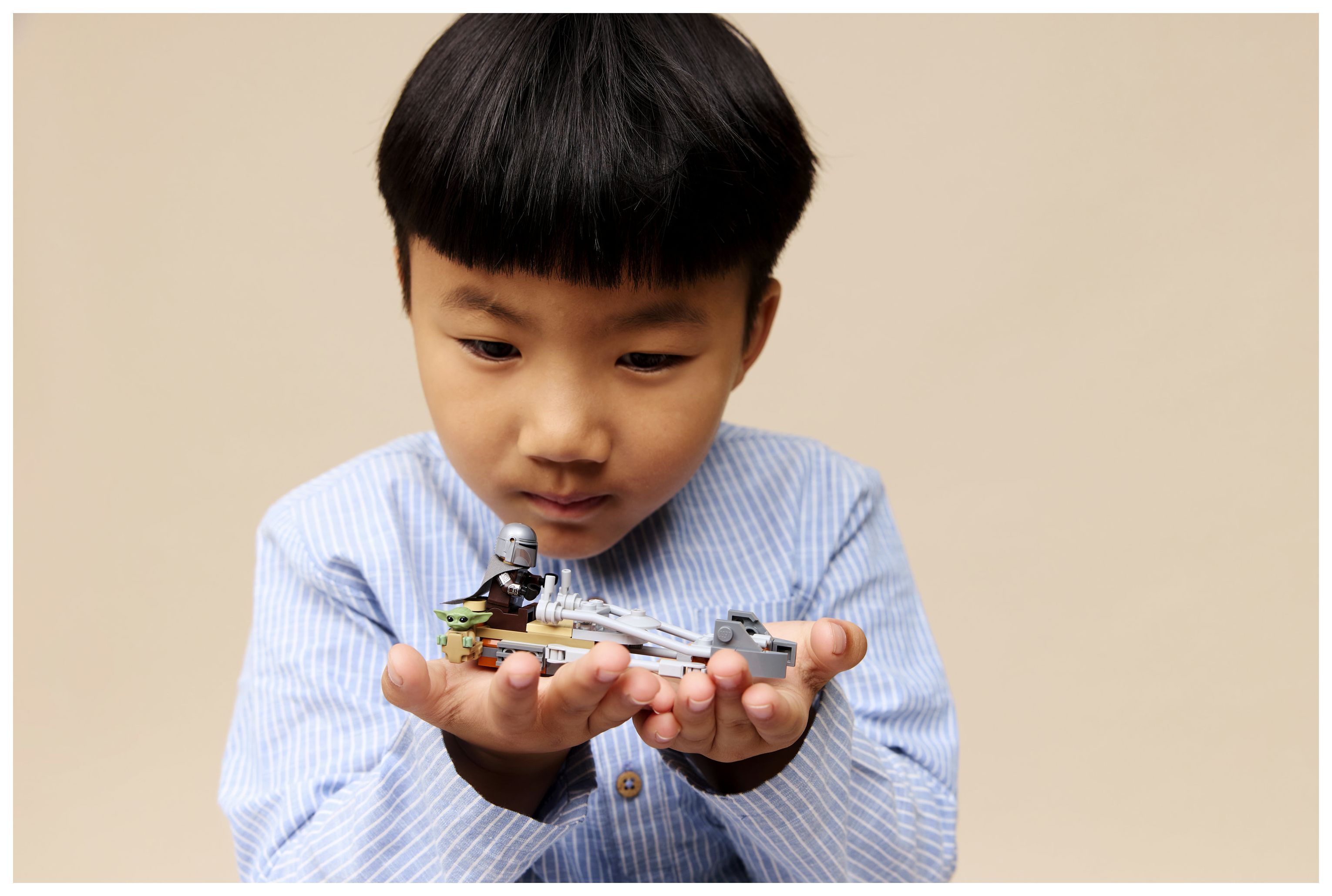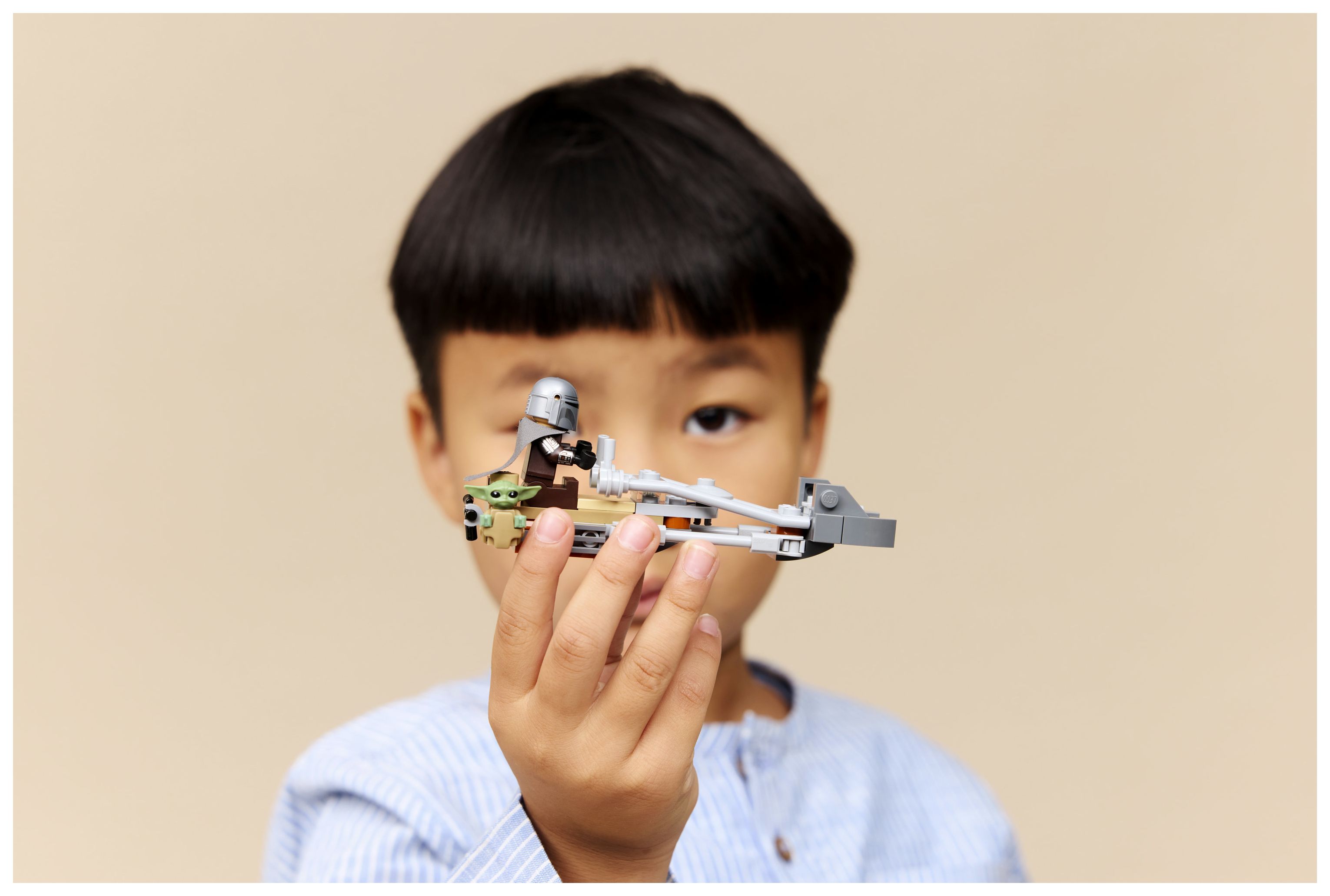 Freu dich darauf, mit diesem coolen Bau- und Spielset spannende Szenen auf Tatooine aus der 1. Staffel von Star Wars: The Mandalorian nachzustellen. Der Mandalorianer und Grogu auf ihrem Speeder Bike™ (75436) ist ein cooles kleines Geschenk aus LEGO® Steinen für Kinder ab 6 Jahren. Setz den Mandalorianer auf den Minifigur-Fahrersitz und steck Grogu in die Satteltasche an der Seite. Befestige das Blastergewehr des Mandalorianers am Heck des Fahrzeugs, damit es für jedes Actionabenteuer griffbereit ist.