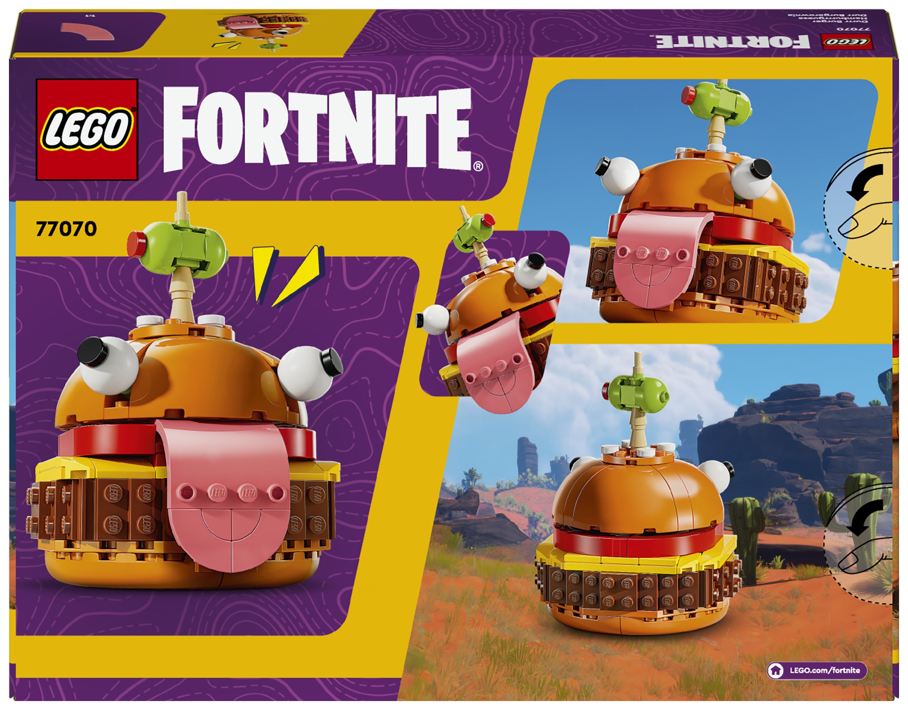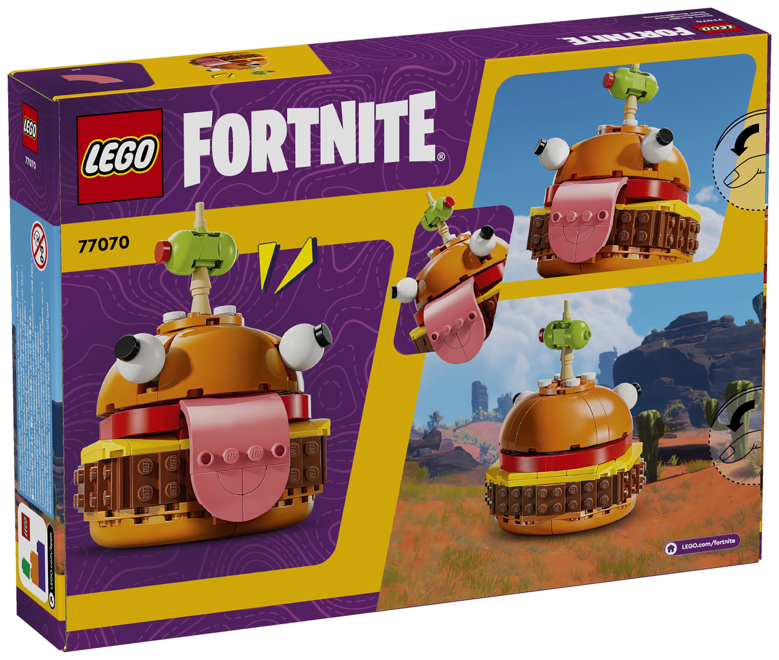 Das Set basiert auf dem Videospiel LEGO Fortnite und lässt Fans ein Modell des legendären Restaurantmaskottchens aus dem Fortnite Universum erschaffen und ausstellen. Junge Gamer werden große Freude daran haben, das Modell detailgetreu mit den unverwechselbaren Augen, der Zunge und der auf einen Zahnstocher gespießten Olive nachzubilden.