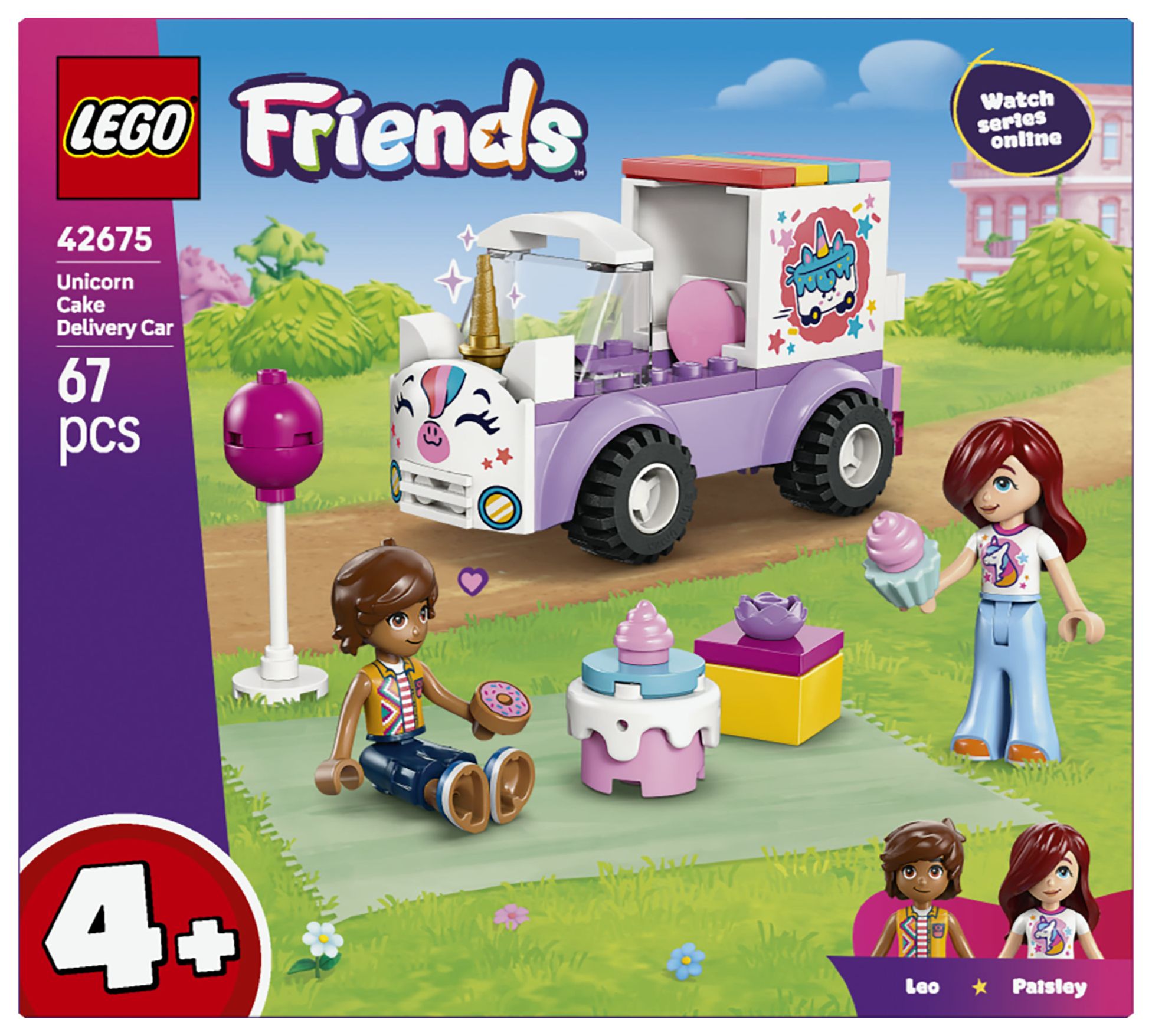 LEGO® Friends Einhorn-Kuchenlieferwagen (42675); Bau- und Spielset mit 2 Spielfiguren, Geschenk, Kuchen und Donut; Geschenk für Kleinkinder ab 4 Jahren