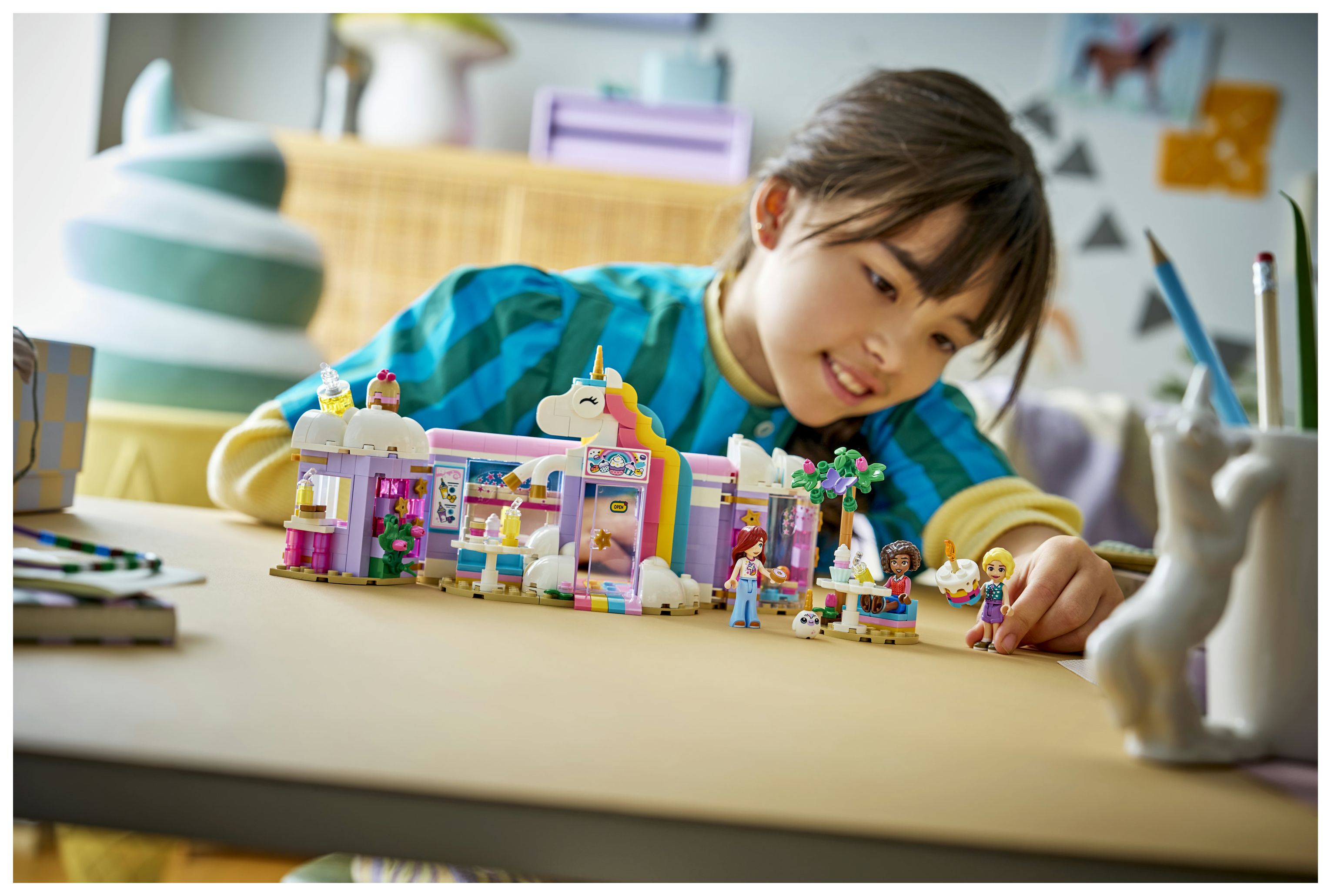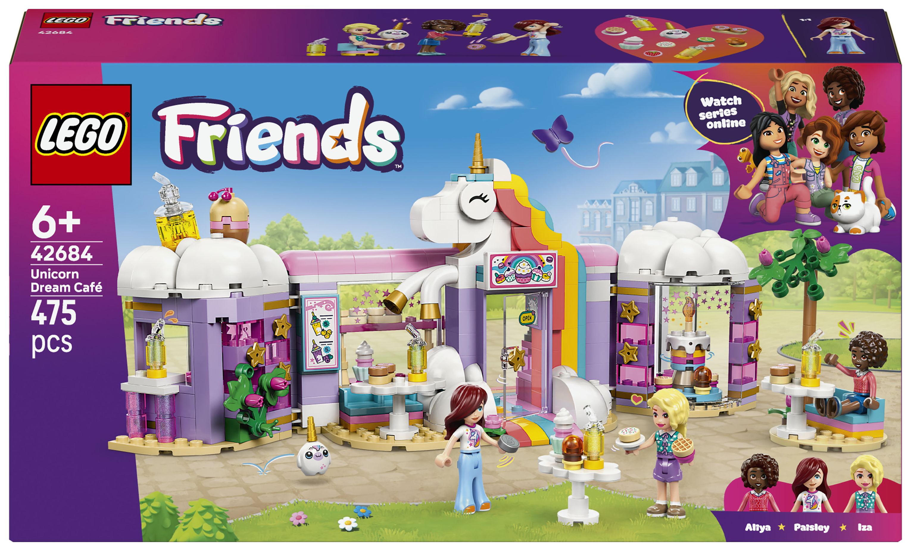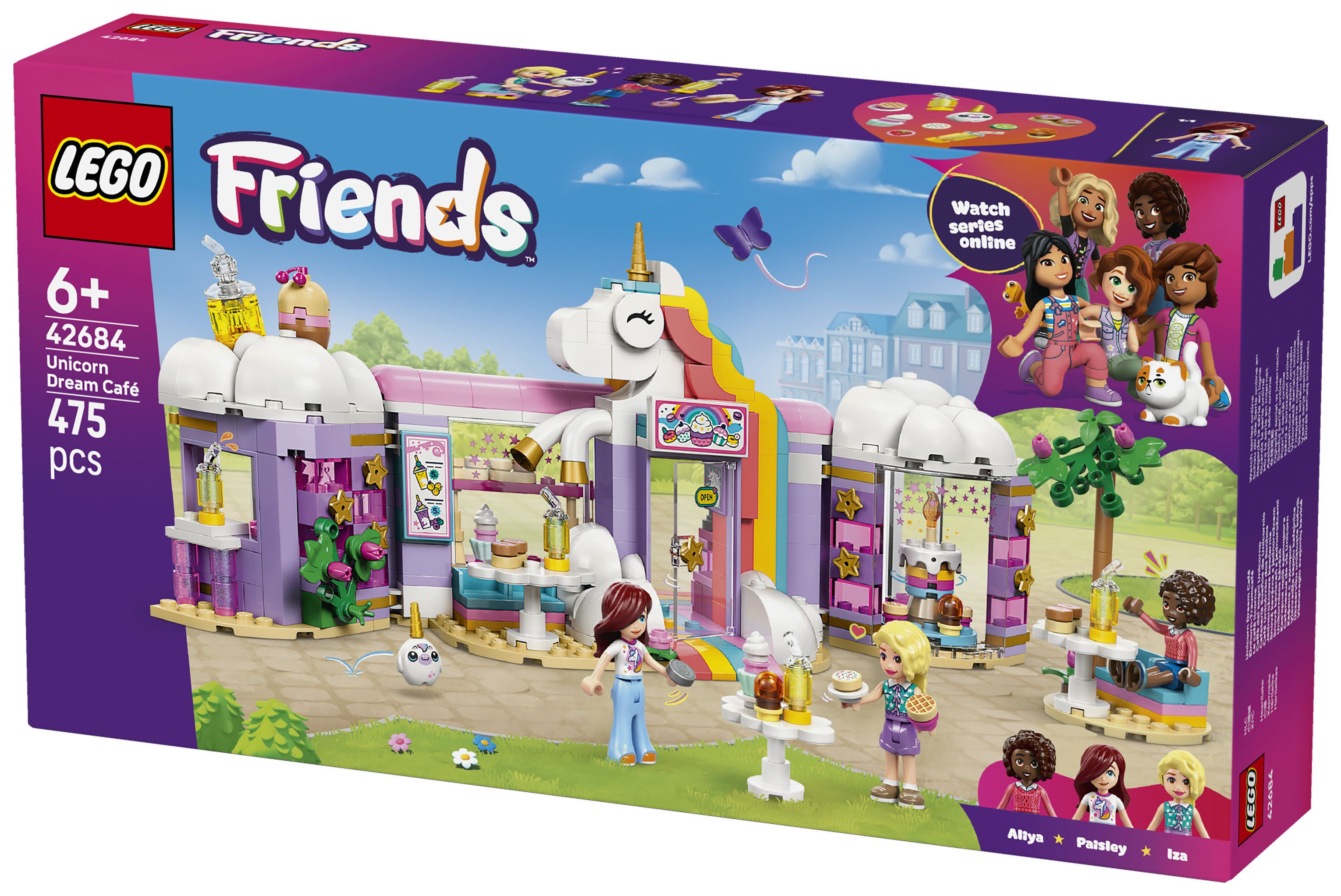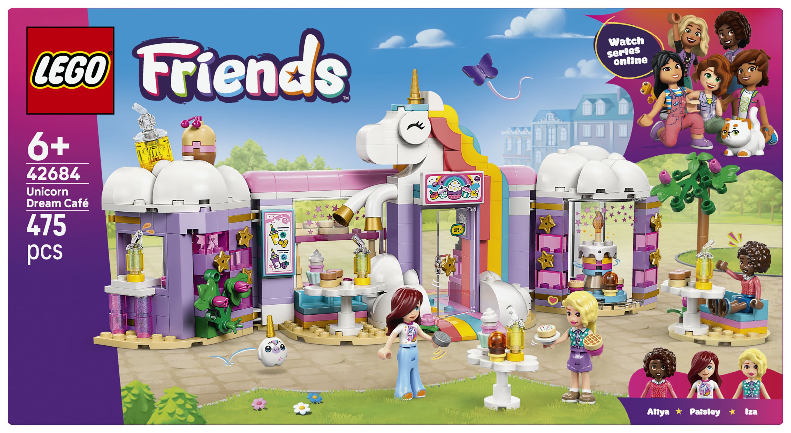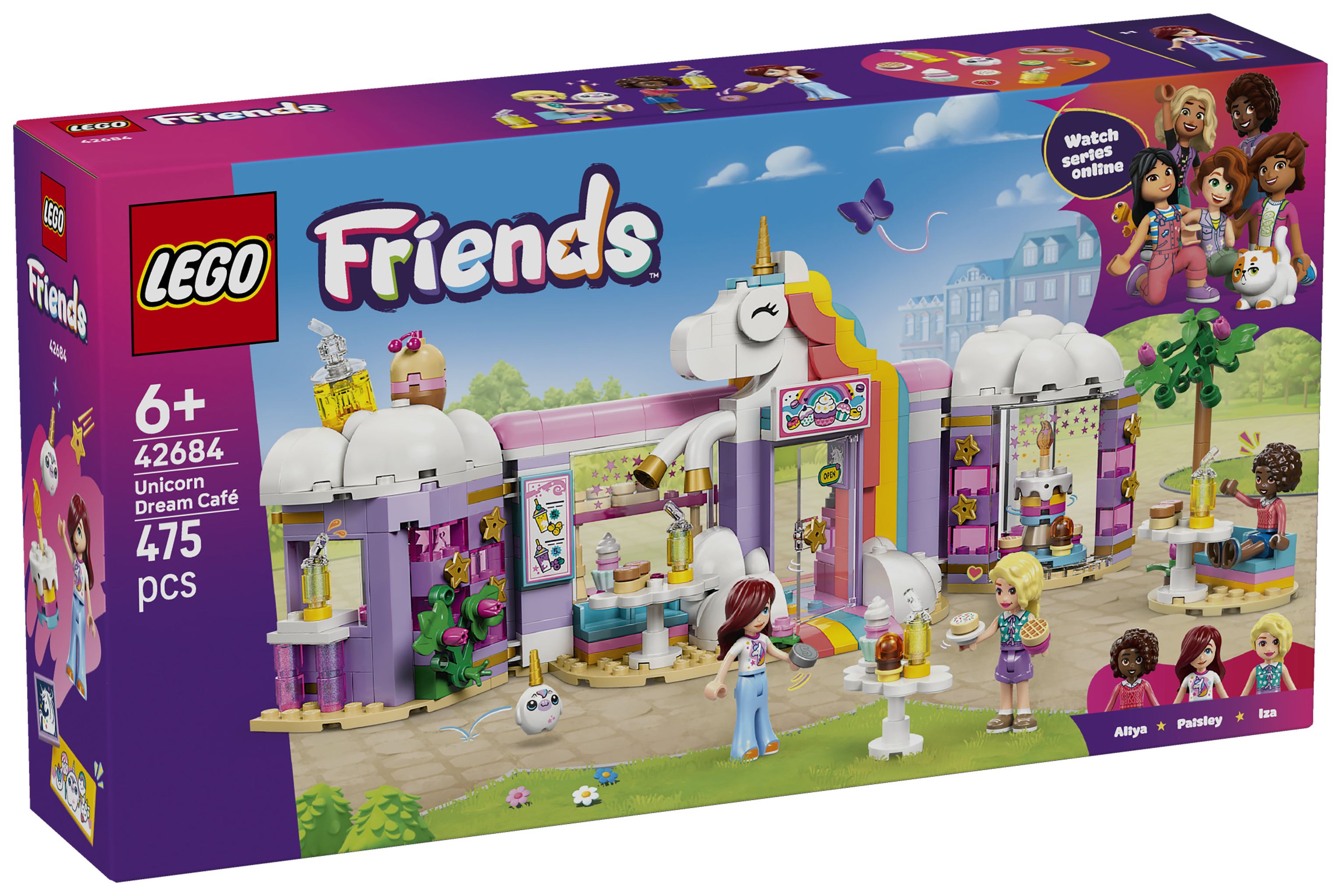 Das LEGO® Friends Einhorn-Traumcafé (42684) lässt Kinder ab 6 Jahren besonders kreativ spielen. Kinder können mit den zahlreichen süßen Zubehörelementen ihre Geschichten im Regenbogeneinhorn-Spielzeugcafé darstellen.