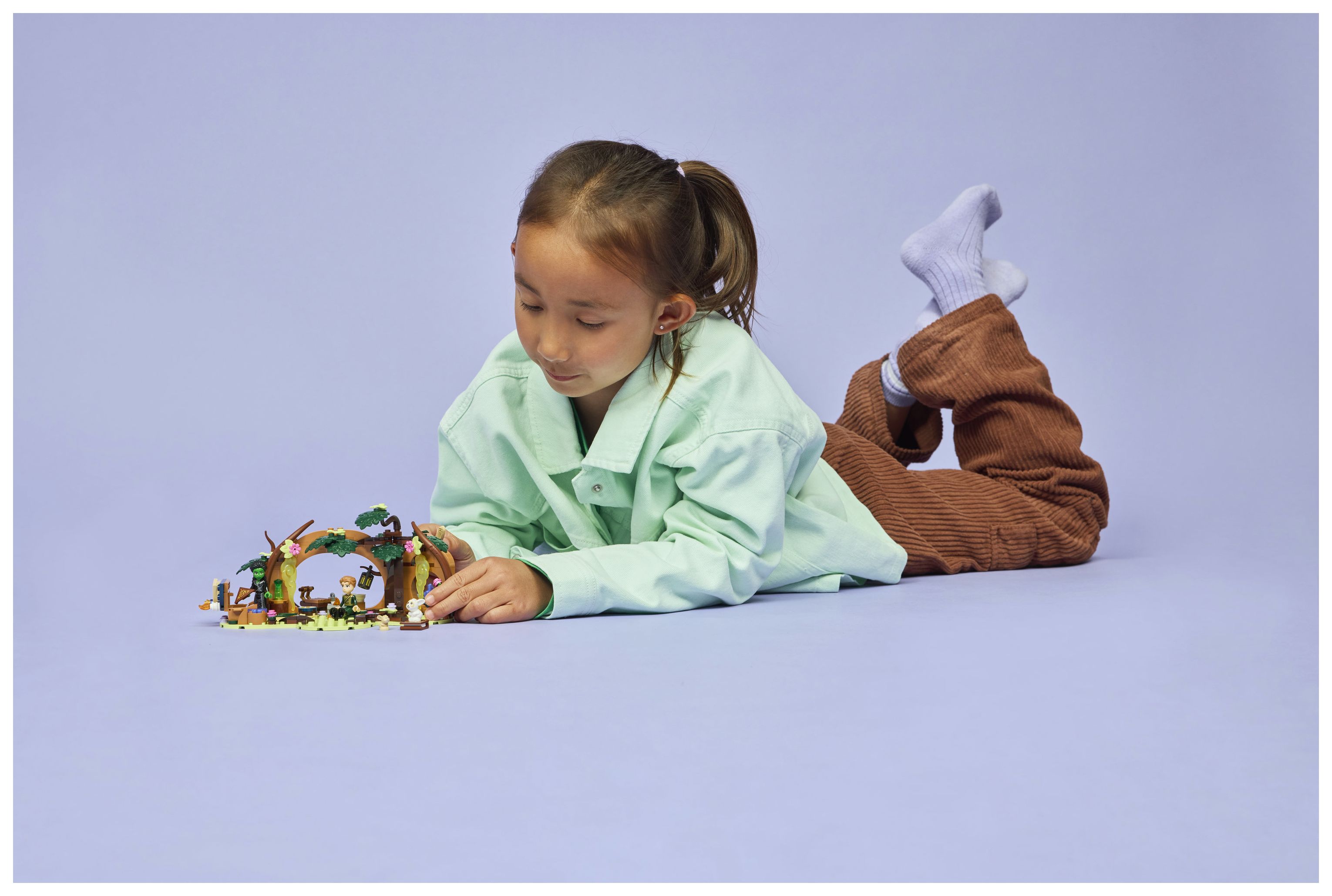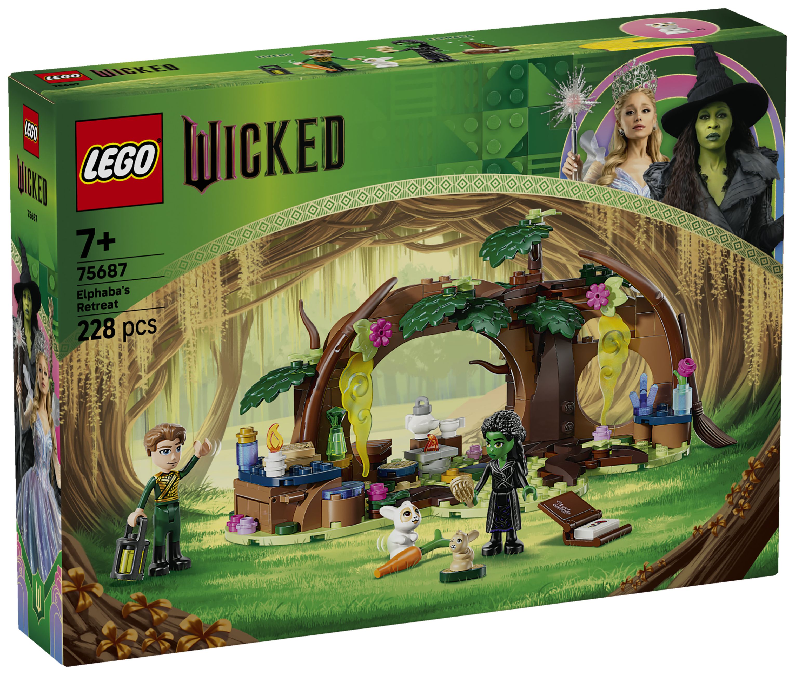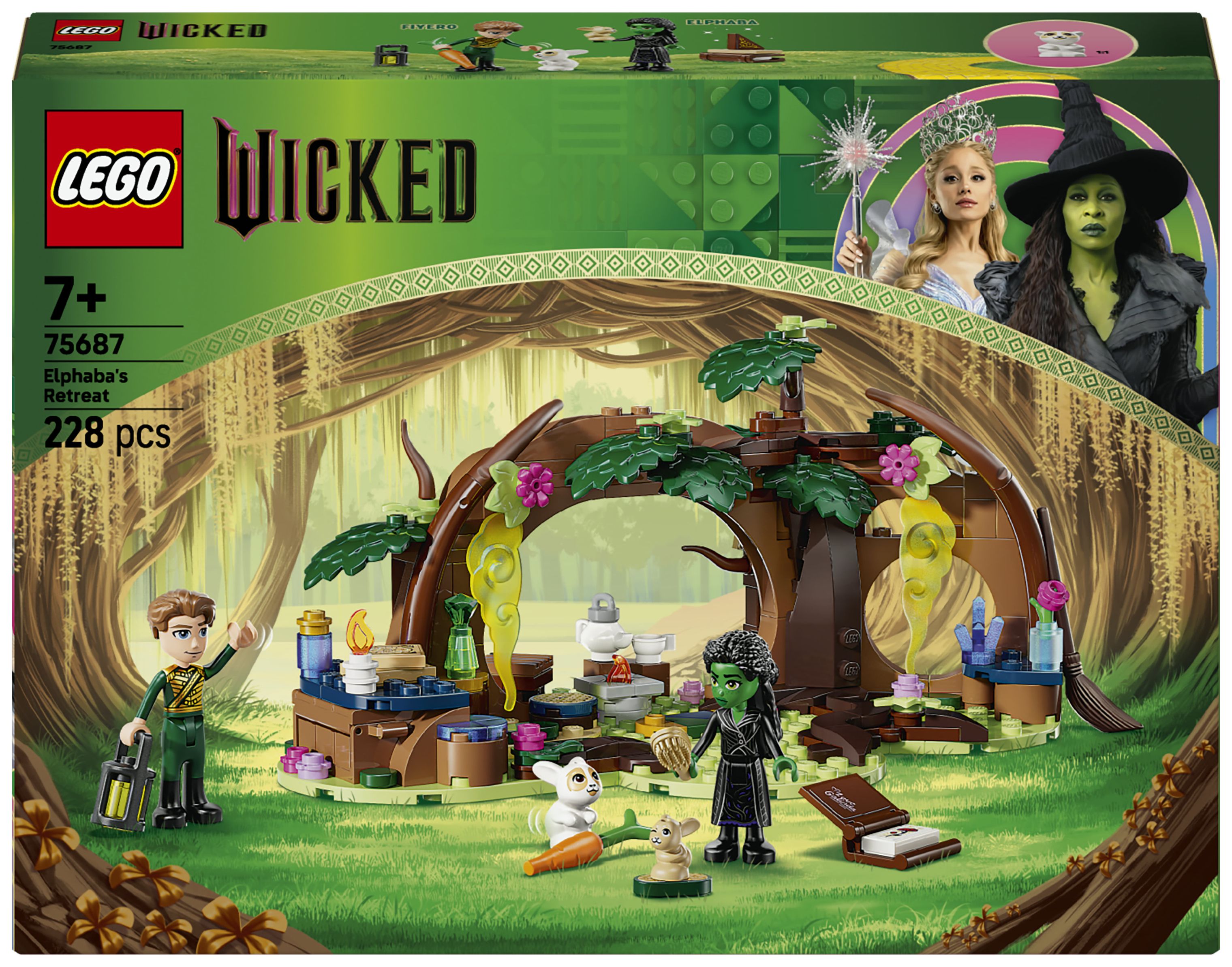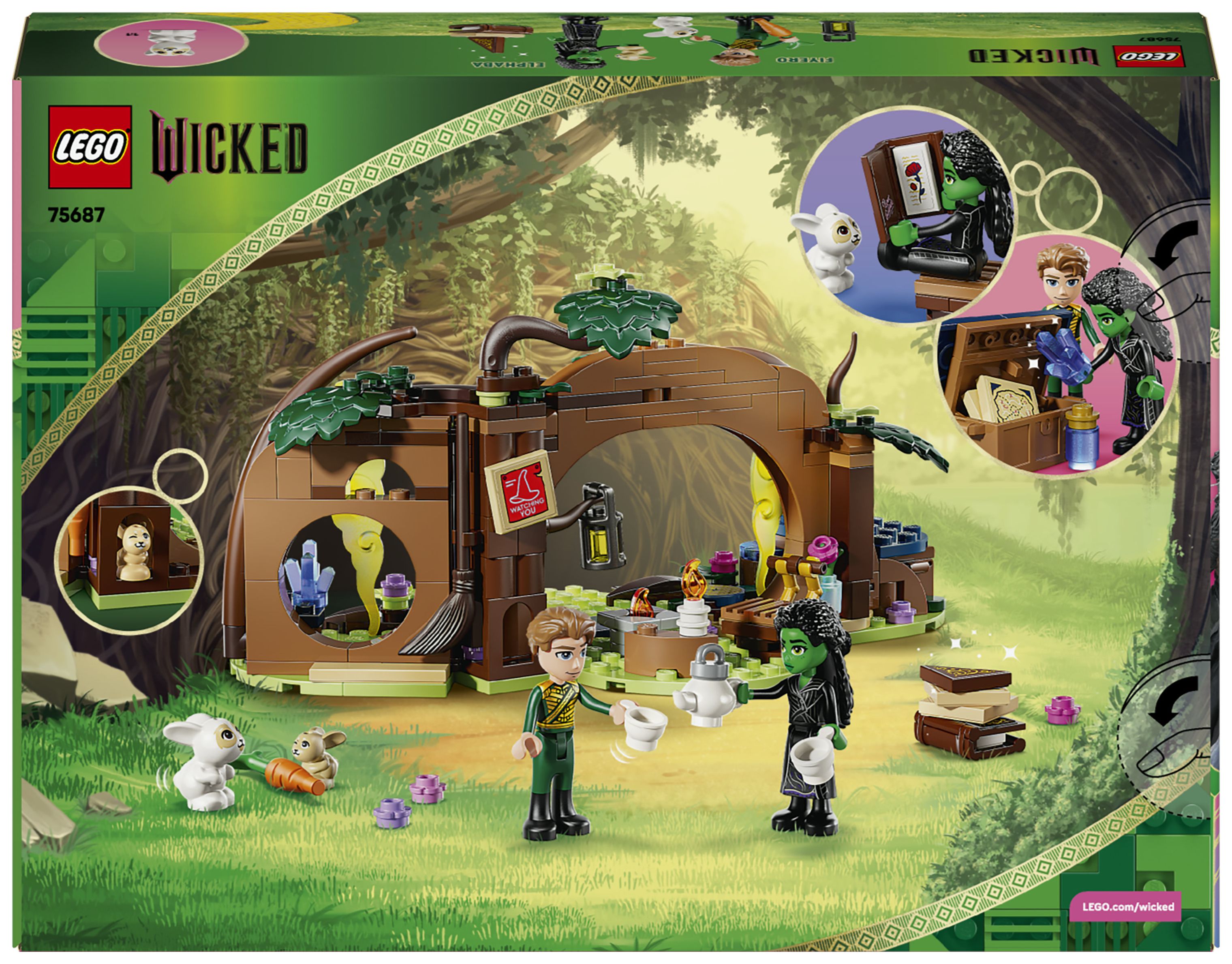 Elphabas Versteck (75687) ist ein kreatives Spielzeug, das Kinder ab 7 Jahren zu vielen Rollenspielen in einer magischen Welt einlädt. Mädchen, Jungen und Fans von Wicked können eine ganz besondere Filmszene nachbilden und Elphabas Versteck im Wald aus LEGO® Steinen bauen.