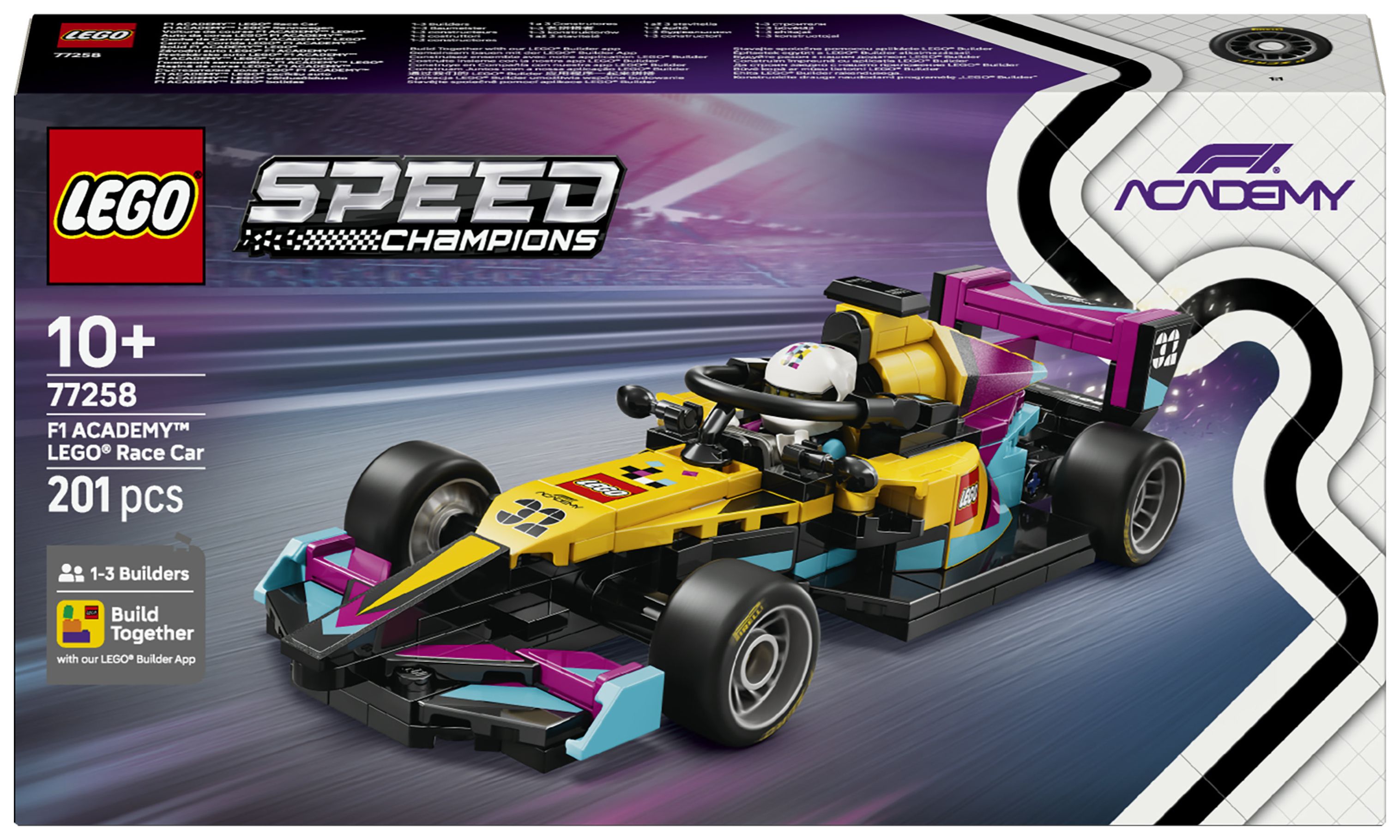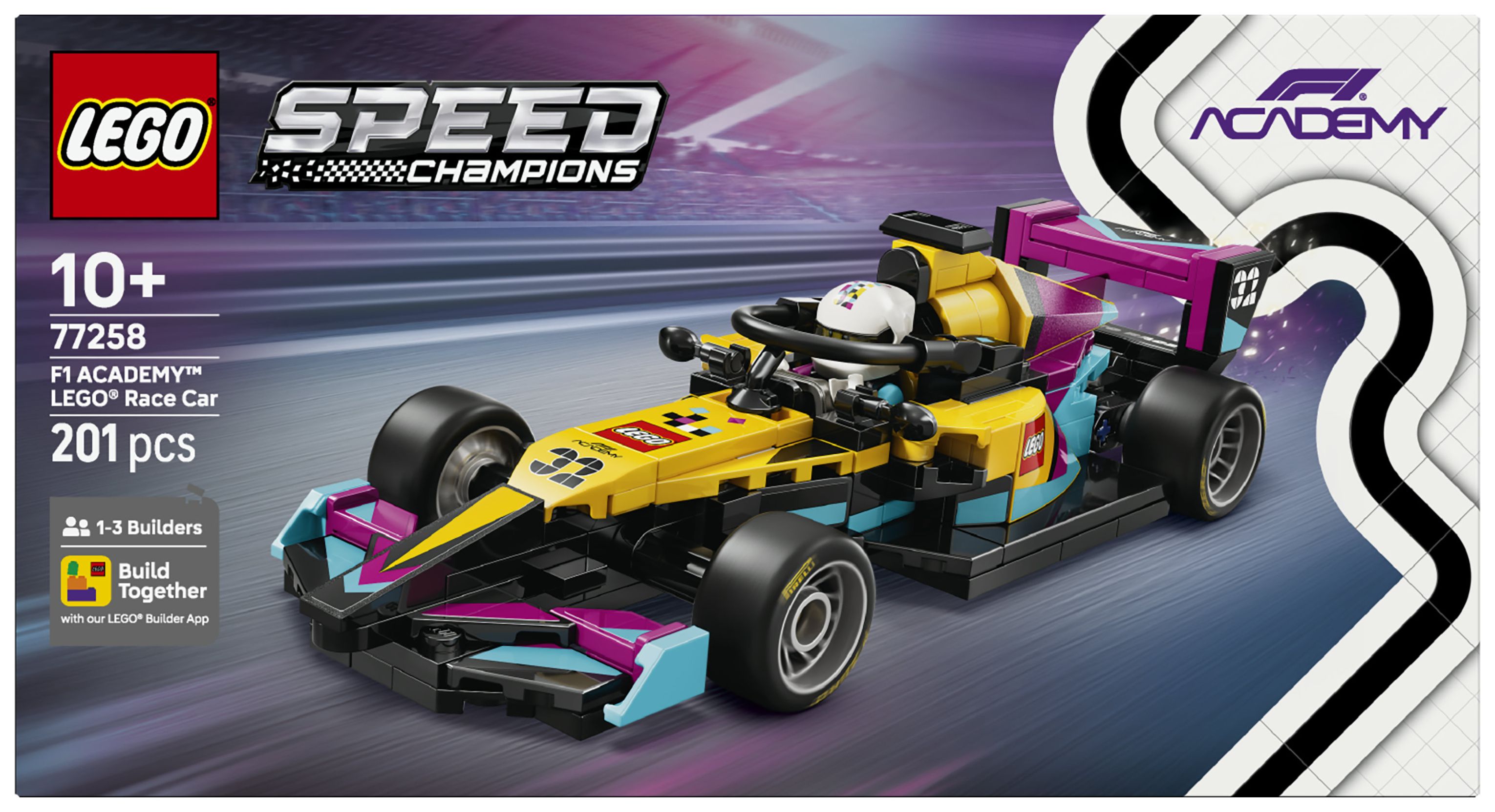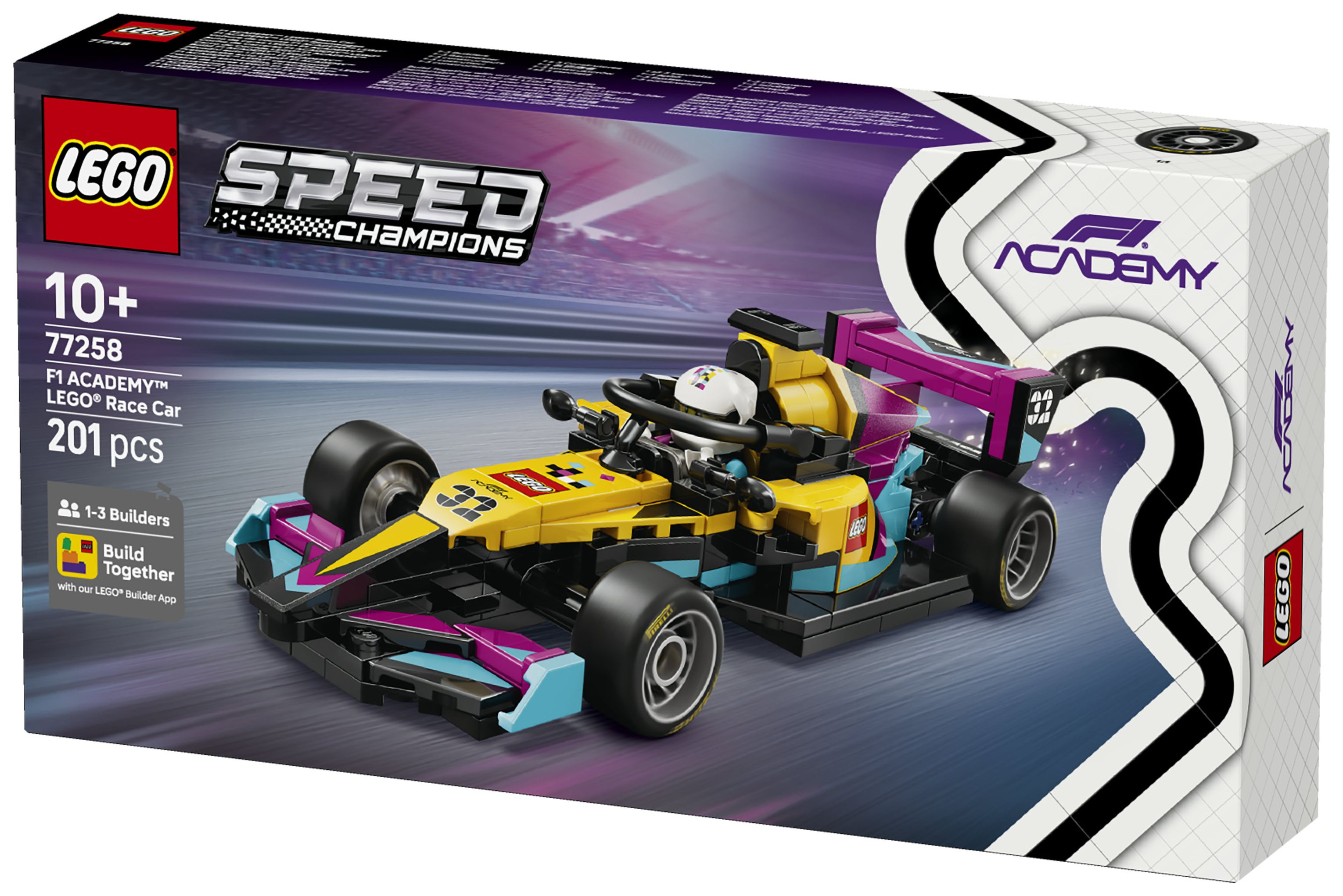 Im Jahr 2026 geht die LEGO Gruppe zum ersten Mal in der F1 ACADEMY™ an den Start – und zwar mit ihrem eigenen F1 ACADEMY Rennwagen. Kinder ab 10 Jahren können das tolle Modell zum Ausstellen bauen. Dieser LEGO® Speed Champions F1 ACADEMY LEGO Rennwagen (77258) zum Spielen und Ausstellen hat viele Details des Flitzers aus der F1 ACADEMY. In dieser Rennserie gehen ausschließlich Frauen an den Start.