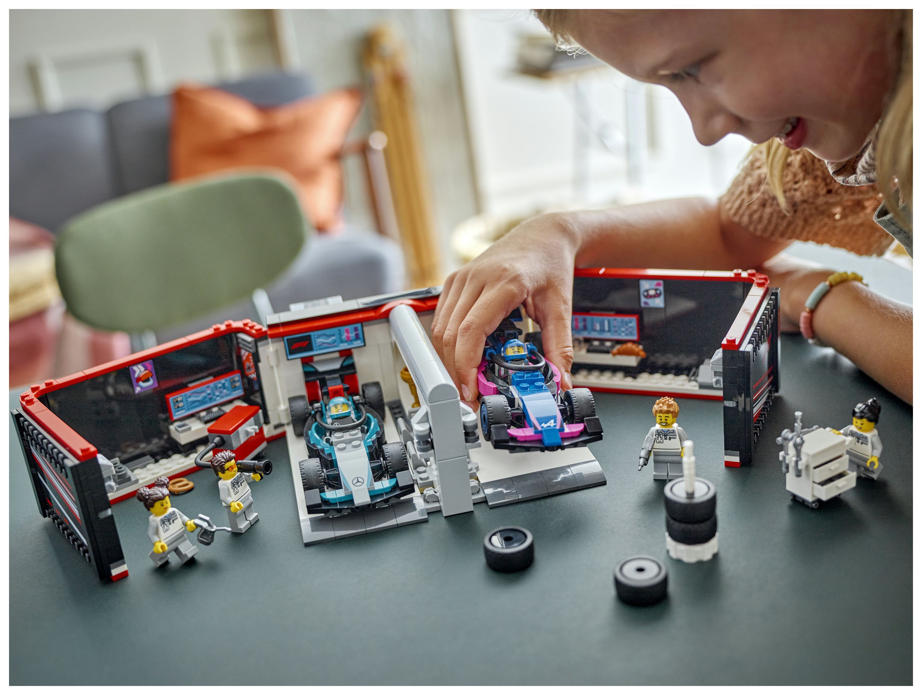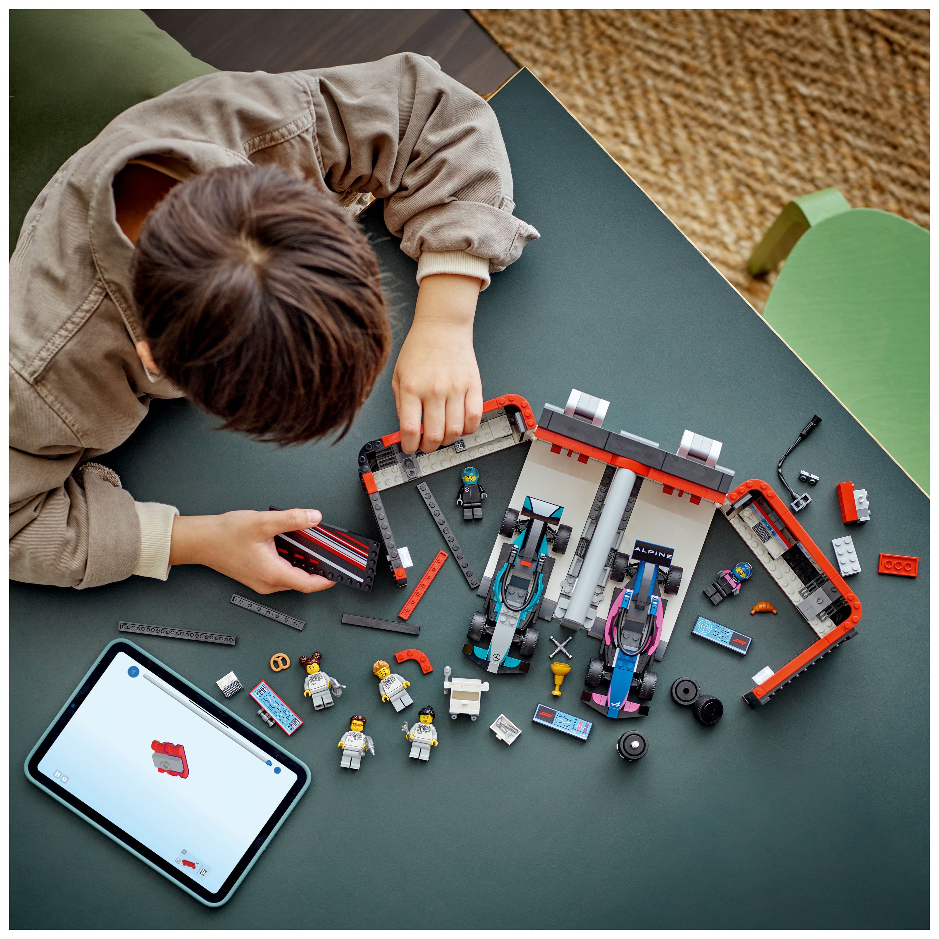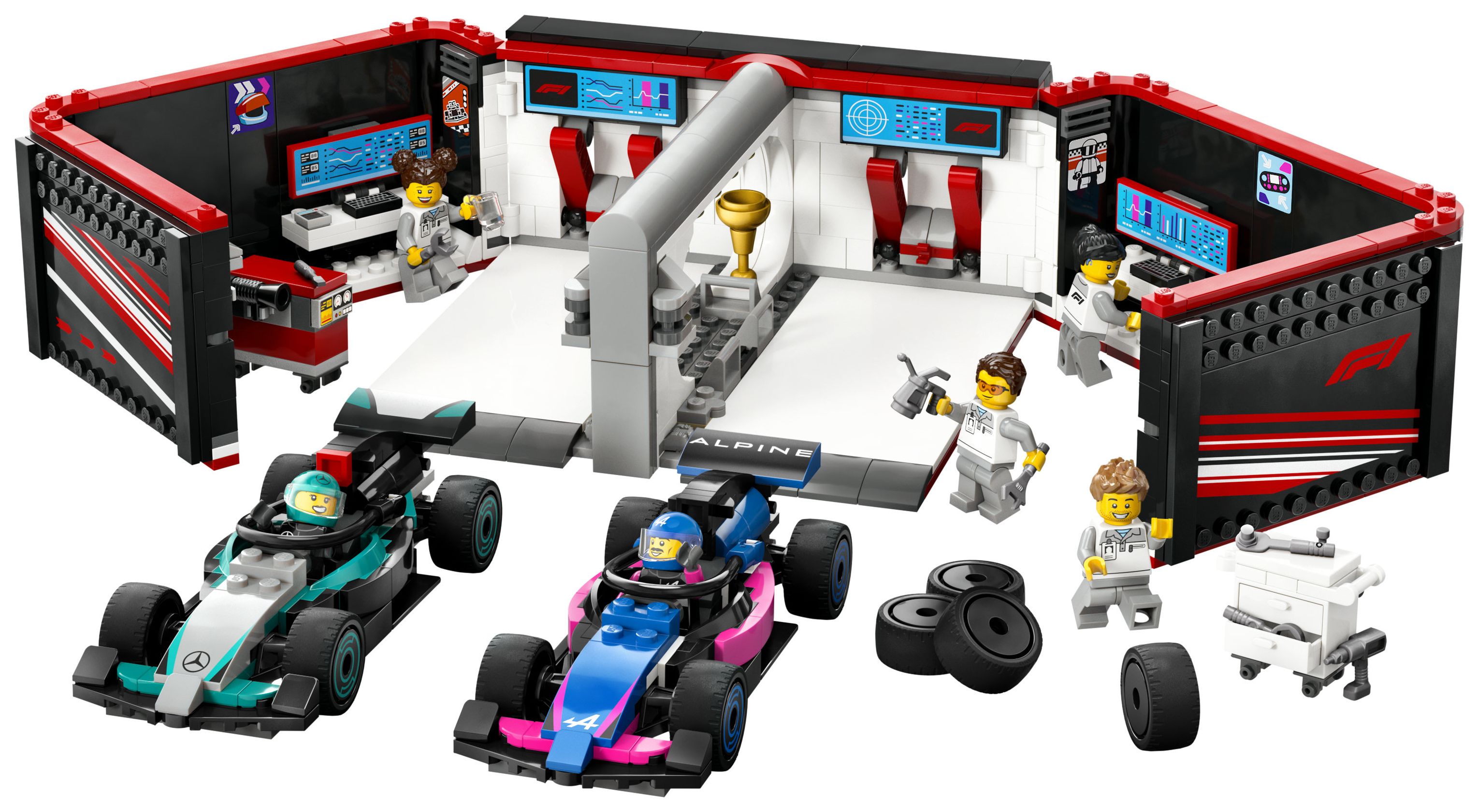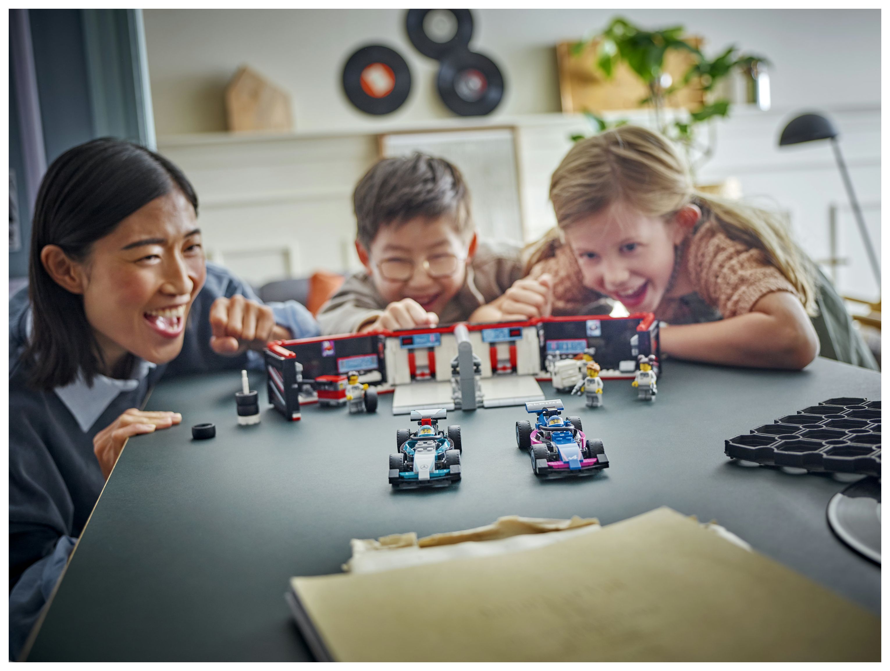 LEGO® F1® Spielzeug-Autowerkstatt: LEGO City F1 Garage mit Mercedes-AMG & Alpine Rennautos ist ein Bauset für Kinder ab 7 Jahren, das den Nervenkitzel echter Formel 1® Rennen ins Kinderzimmer holt
