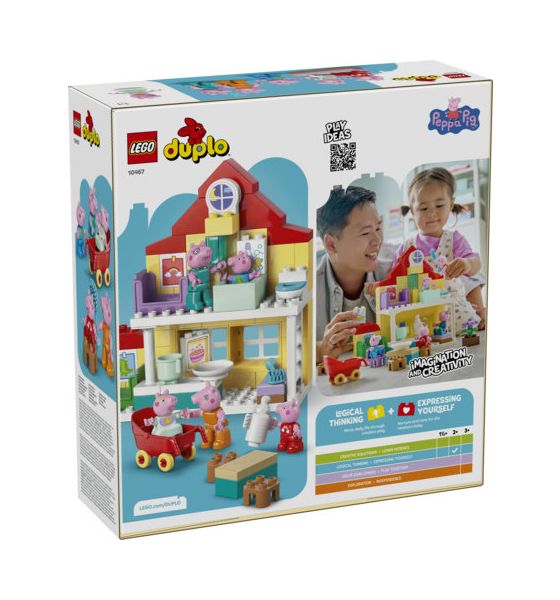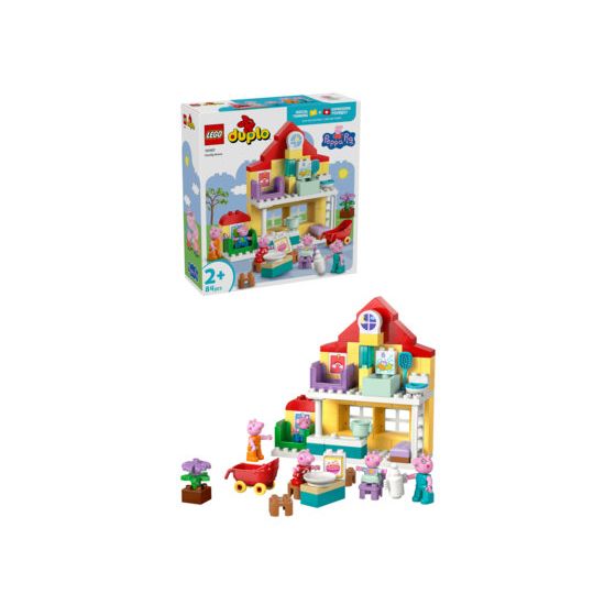 Genau wie in der TV-Serie befinden sich in diesem 2-geschossigen LEGO® DUPLO® Spielzeughaus eigene Zimmer für Schorsch und Peppa sowie eine Küche, ein Bad und ein Wohnzimmer. Dieses Spielzeug lässt junge Kinder Szenen aus der TV-Serie sowie den eigenen Tagesablauf nachspielen. Kleinkinder können so tun, als würden sie sich gleich schlafenlegen oder mit der Familie frühstücken.