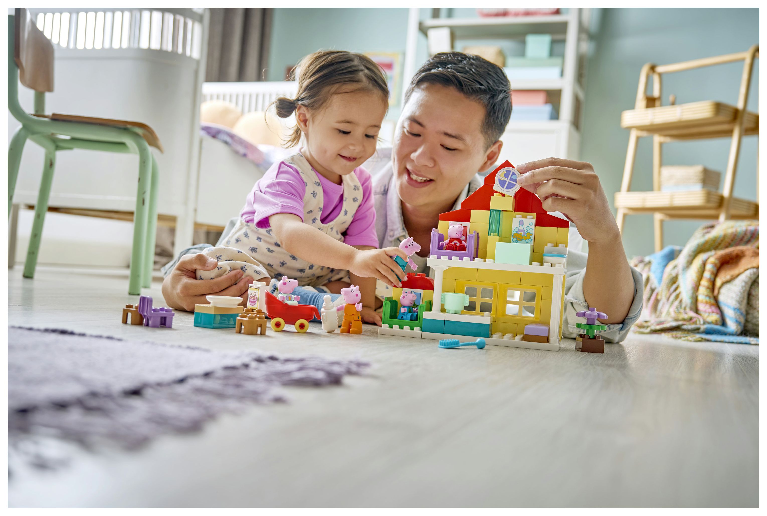 NACHSTELLEN DES FAMILIENALLTAGS: Dieses Spielzeughaus lässt Kinder den Familienalltag nachspielen und in die Rolle von Mama, Papa, Schorsch, Evie und Peppa schlüpfen