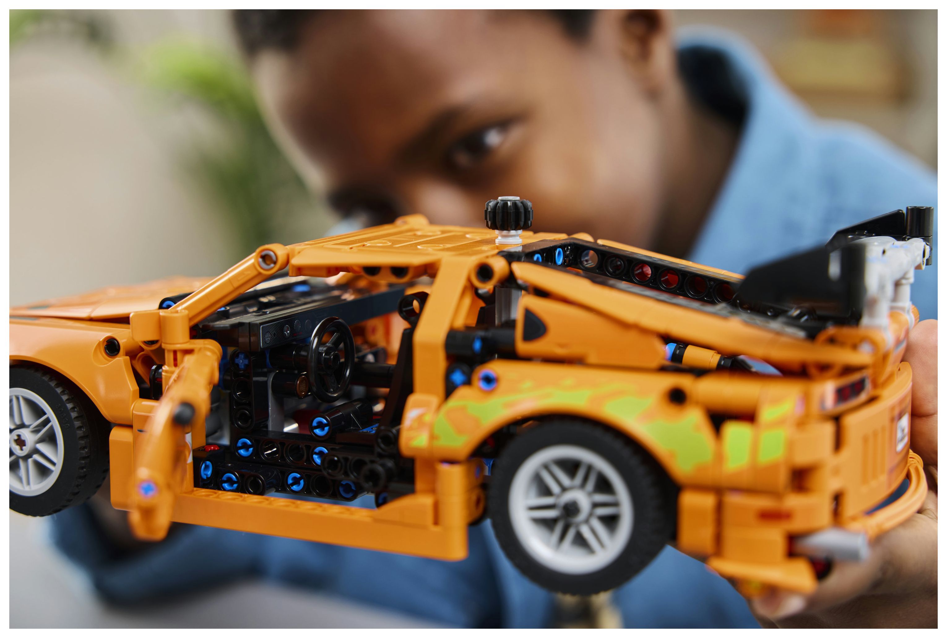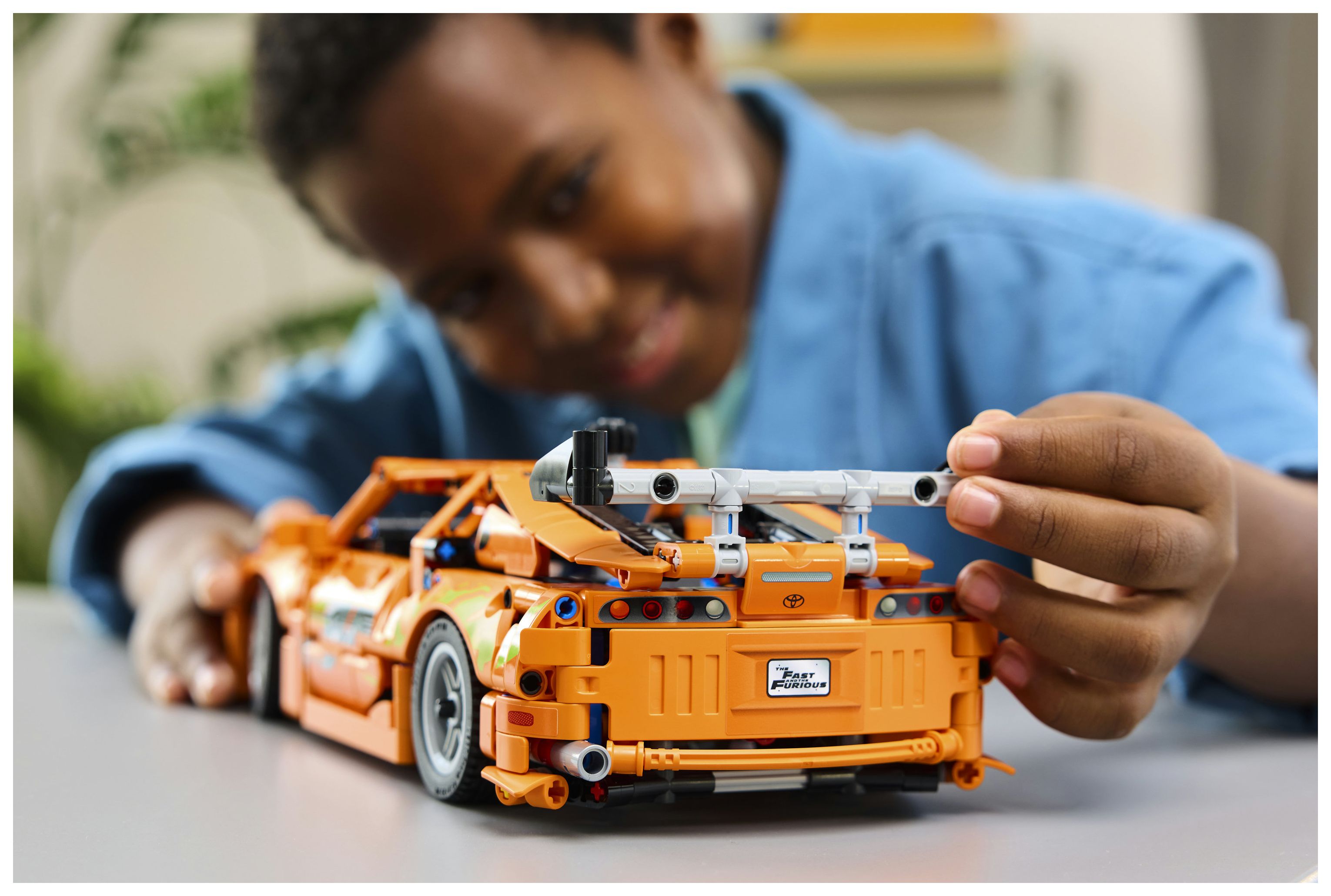 Baubares Modell des Toyota Supra: Dieser Spielzeugsportwagen strotzt nur so vor Details und Anspielungen, die Fans der Filmreihe Fast and Furious begeistern werden. Hierzu zählen auch die beiden NOS-Lachgasflaschen im Kofferraum