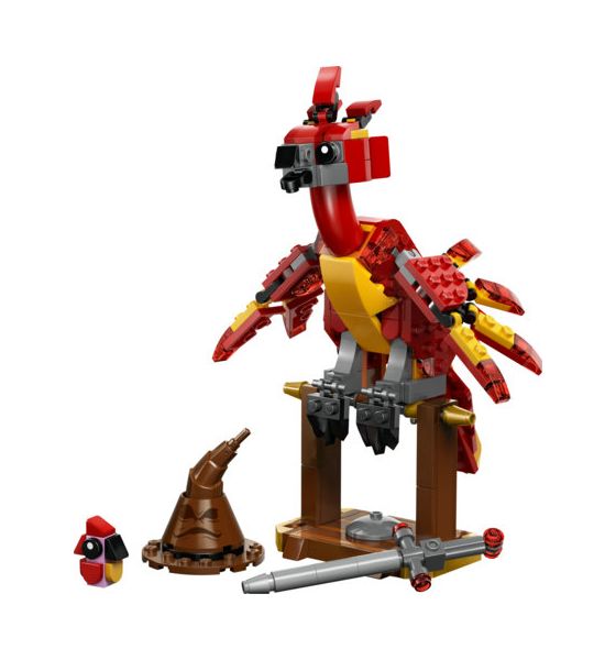 LEGO® Harry Potter™ Fawkes™: Dumbledores Phönix (76448) ist ein Bau- und Spielset, mit dem junge Harry Potter Fans, die Tiere lieben, ihre Begeisterung für die Zauberwelt ausleben können. Der bewegliche Phönix Fawkes hat Greifkrallen, mit denen er sich an die Stange klammern oder den Sprechenden Hut und das Schwert von Gryffindor™ schnappen kann.