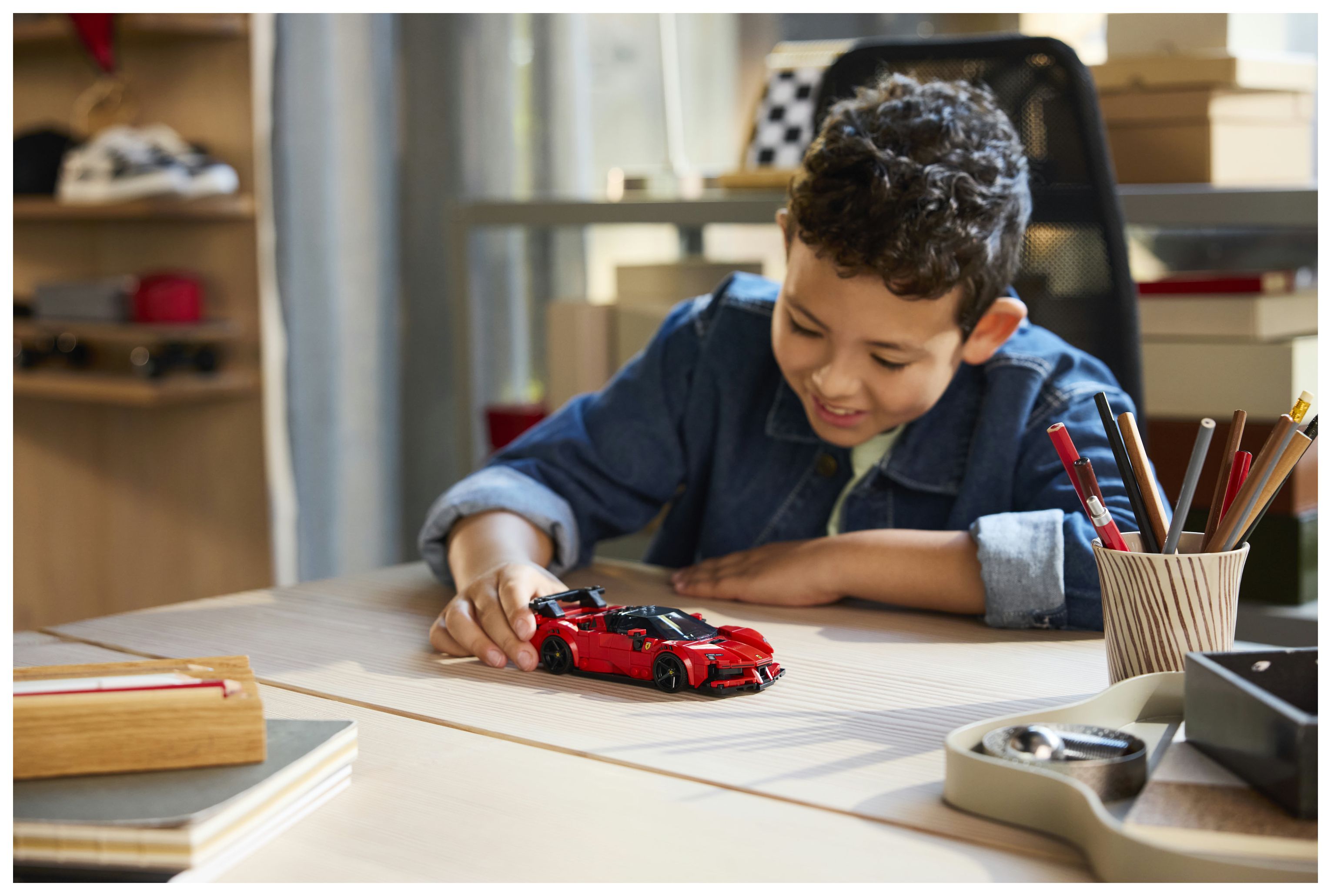 Kinder ab 9 Jahren können den stylishen LEGO® Speed Champions Ferrari SF90 XX Stradale Sportwagen (77254) bauen, ausstellen und für spannende Rennen benutzen. Das Modell des Ferrari-Boliden besitzt viele Designdetails des leistungsstärksten Ferrari-Sportwagens mit Straßenzulassung.