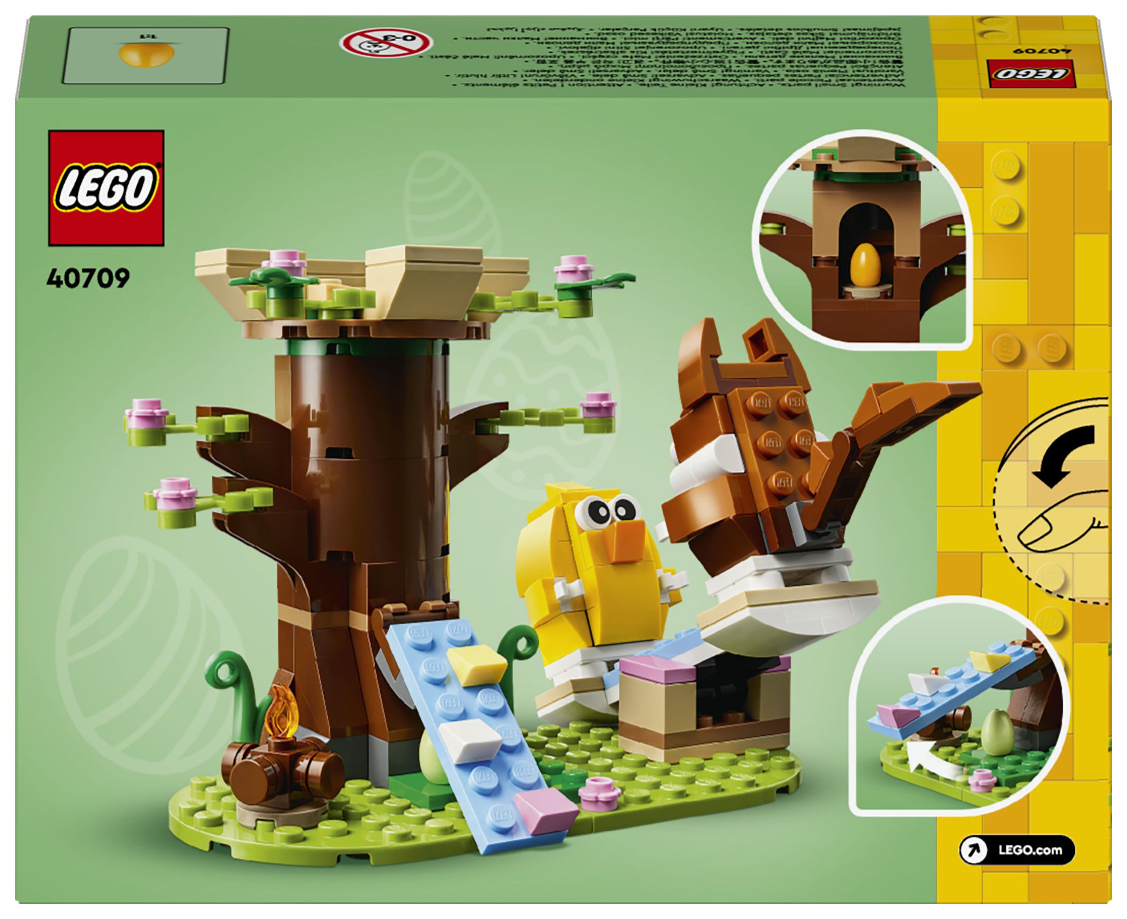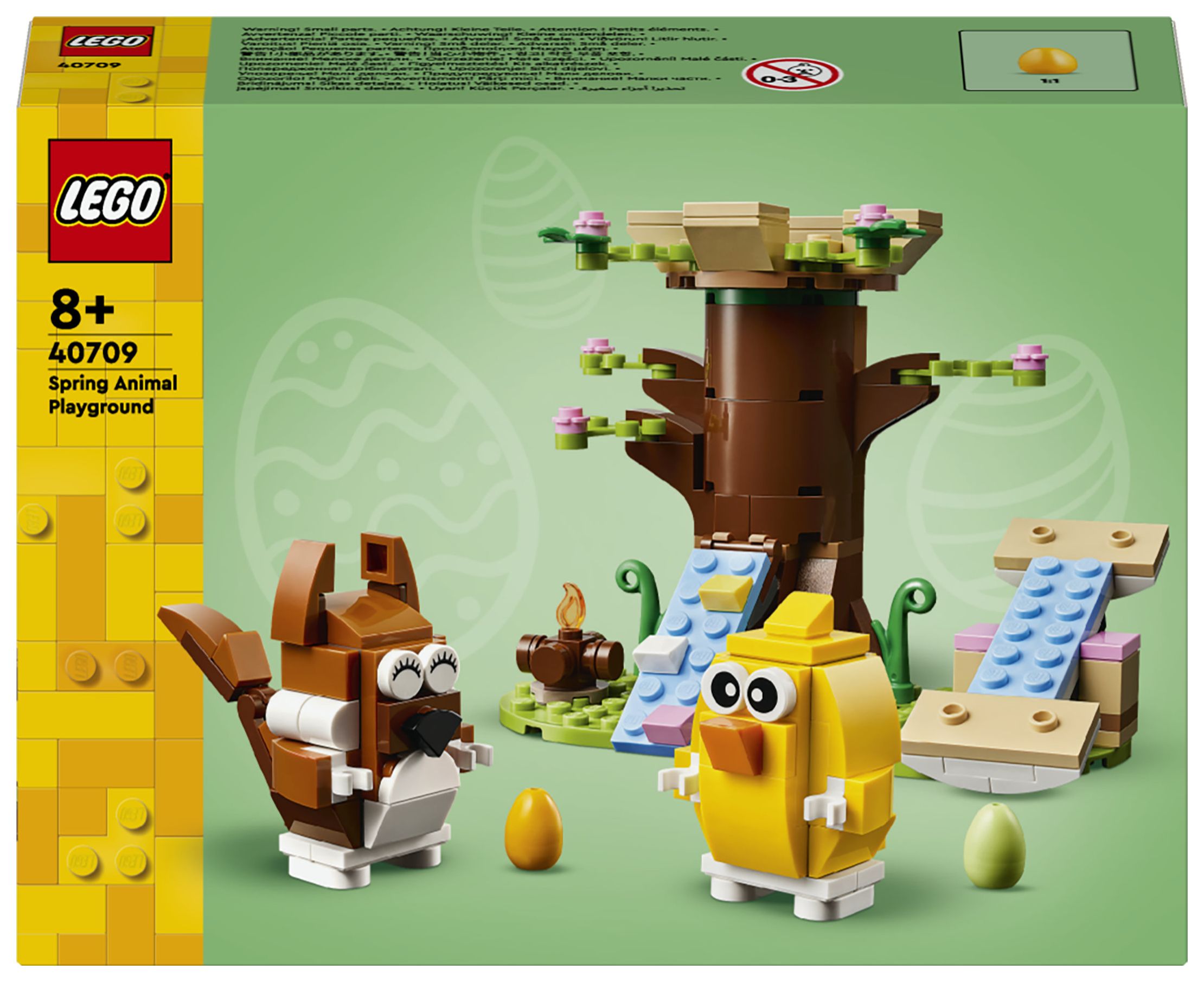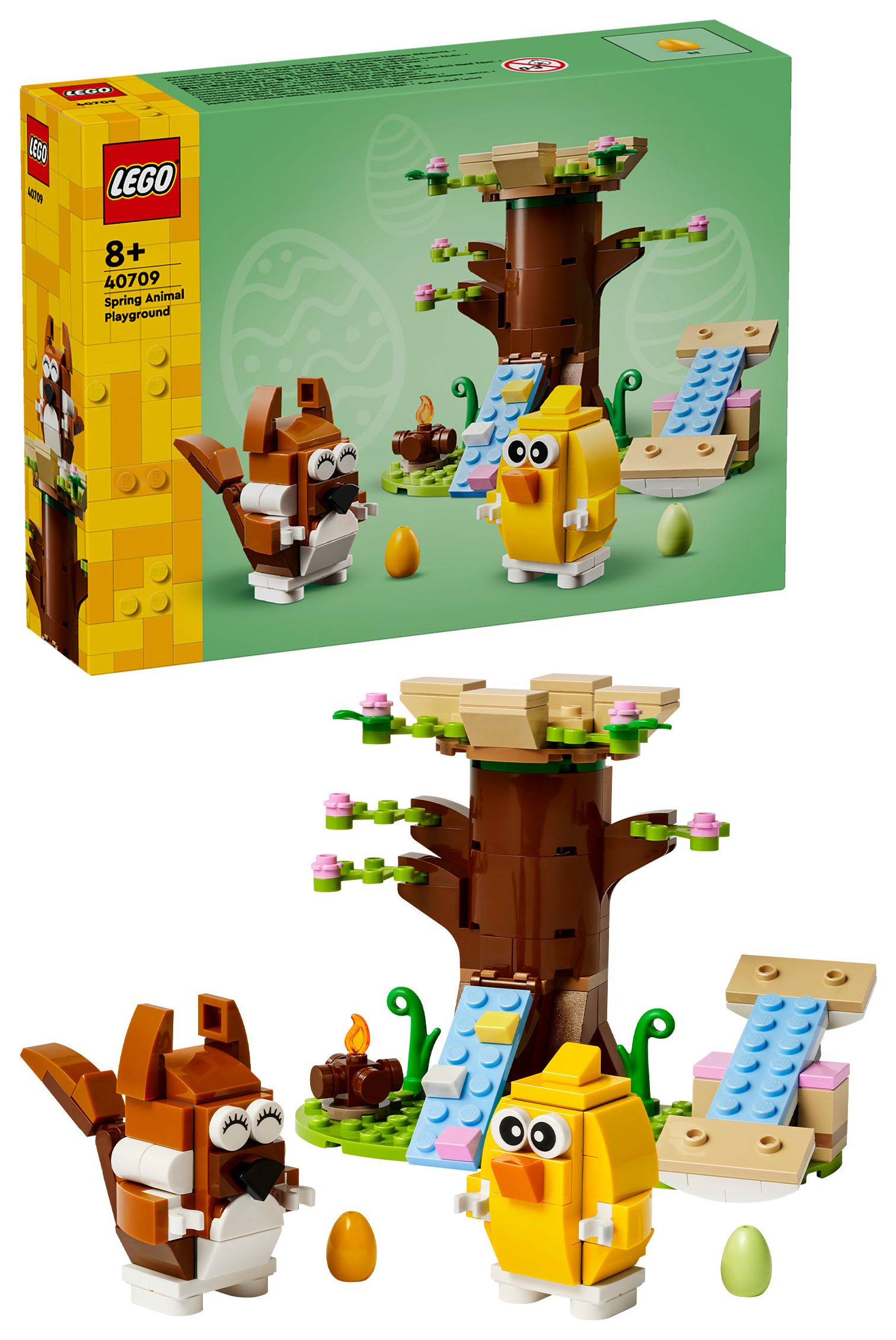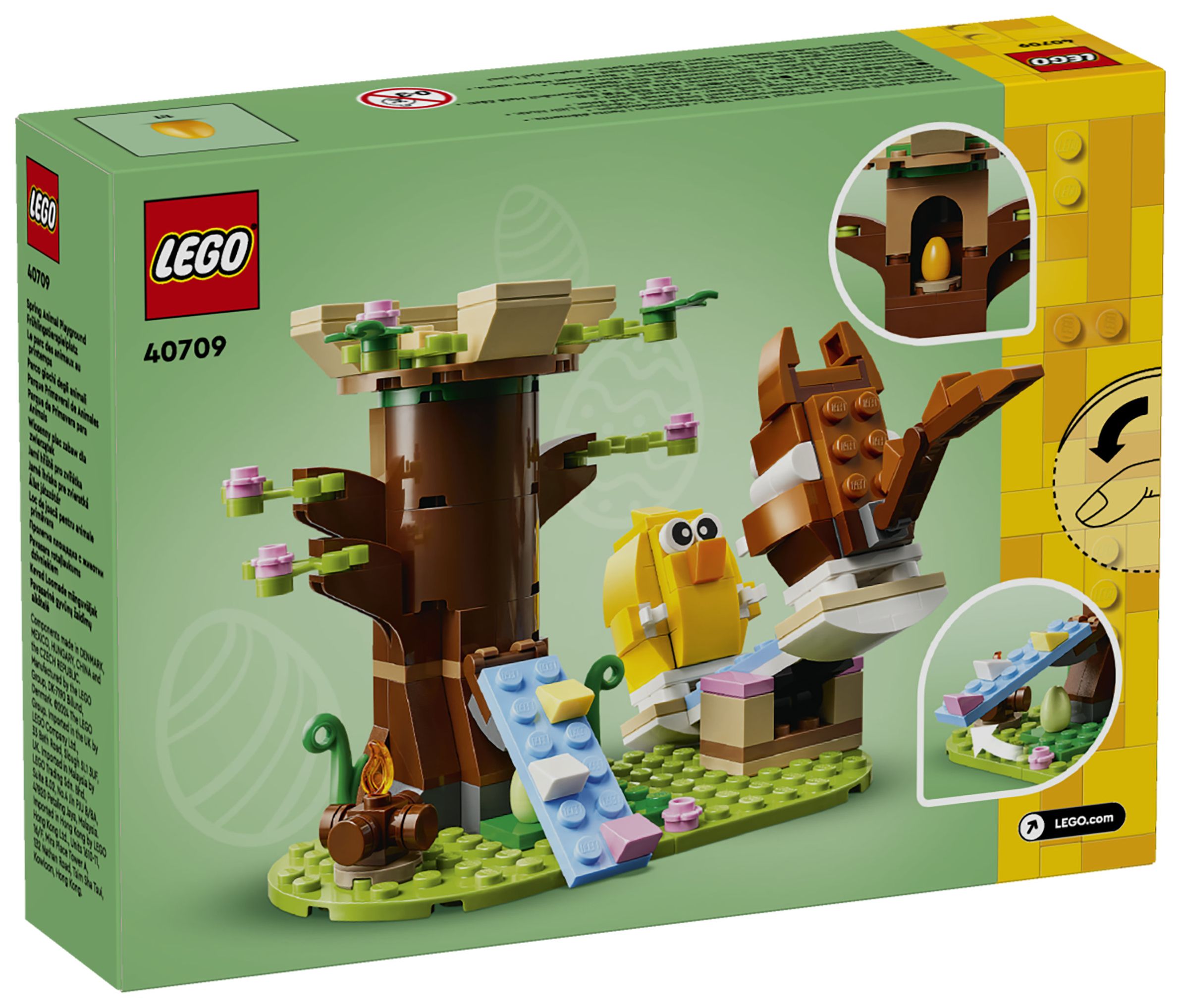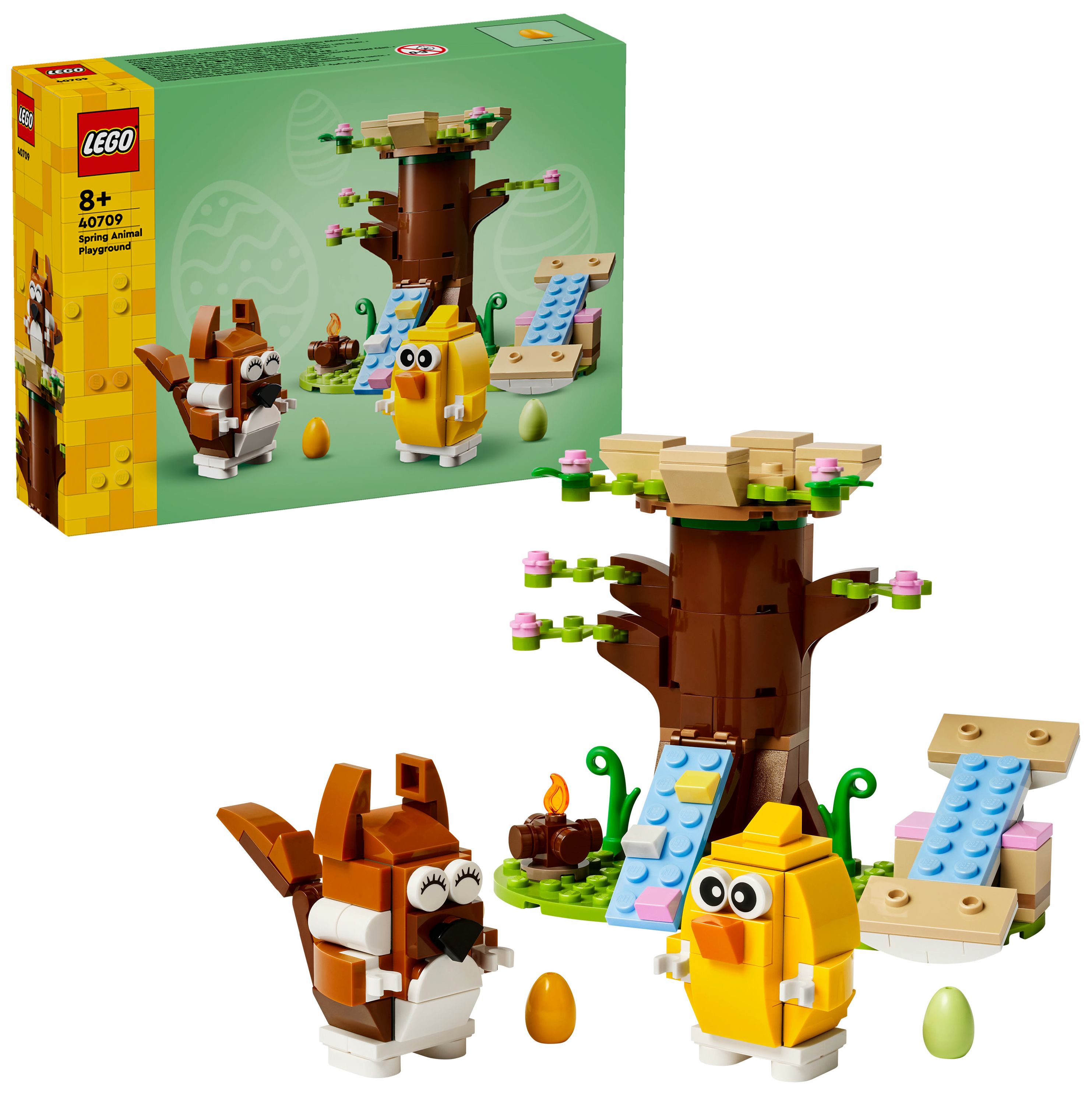 Feiere Ostern mit diesem fantastischen LEGO® Tier-Spielset voller cooler Funktionen. Der Frühlingstierspielplatz (40709) lässt Jungen und Mädchen ab 8 Jahren spannende Geschichten mit einem Eichhörnchen, einem Vogel, einem Baumhaus, einem Lagerfeuer, einer Wippe und 2 Ostereiern darstellen.