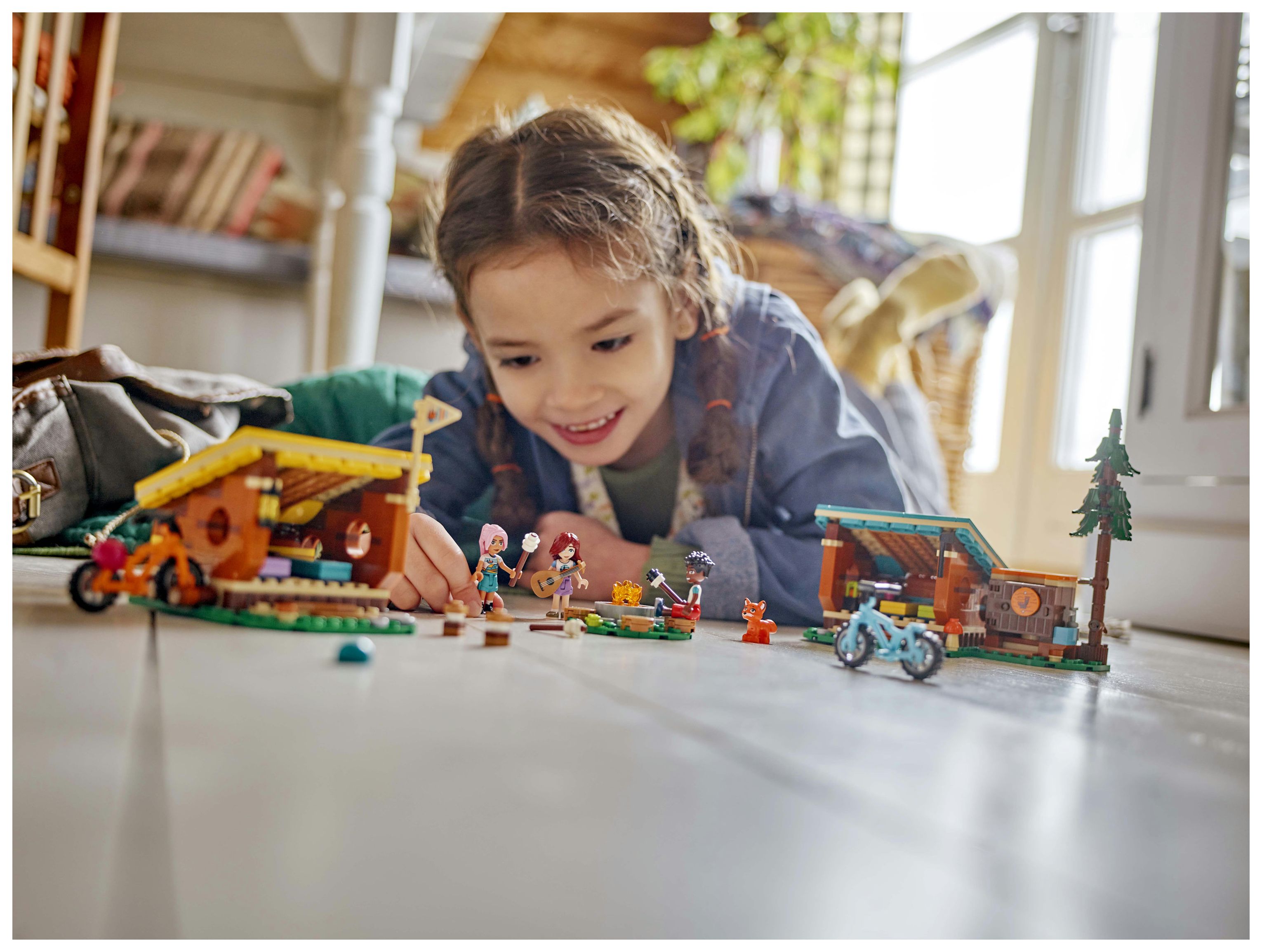 Spielset für spannende Campingabenteuer: LEGO® Friends Gemütliche Hütten im Abenteuercamp ist ein Spielset für Mädchen und Jungen ab 7 Jahren und beinhaltet baubare Hütten, ein Lagerfeuer sowie Zubehör für Rollenspiele