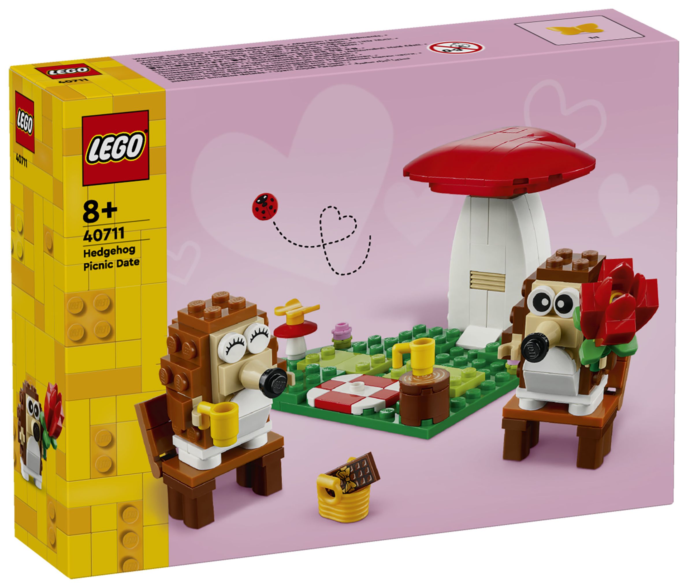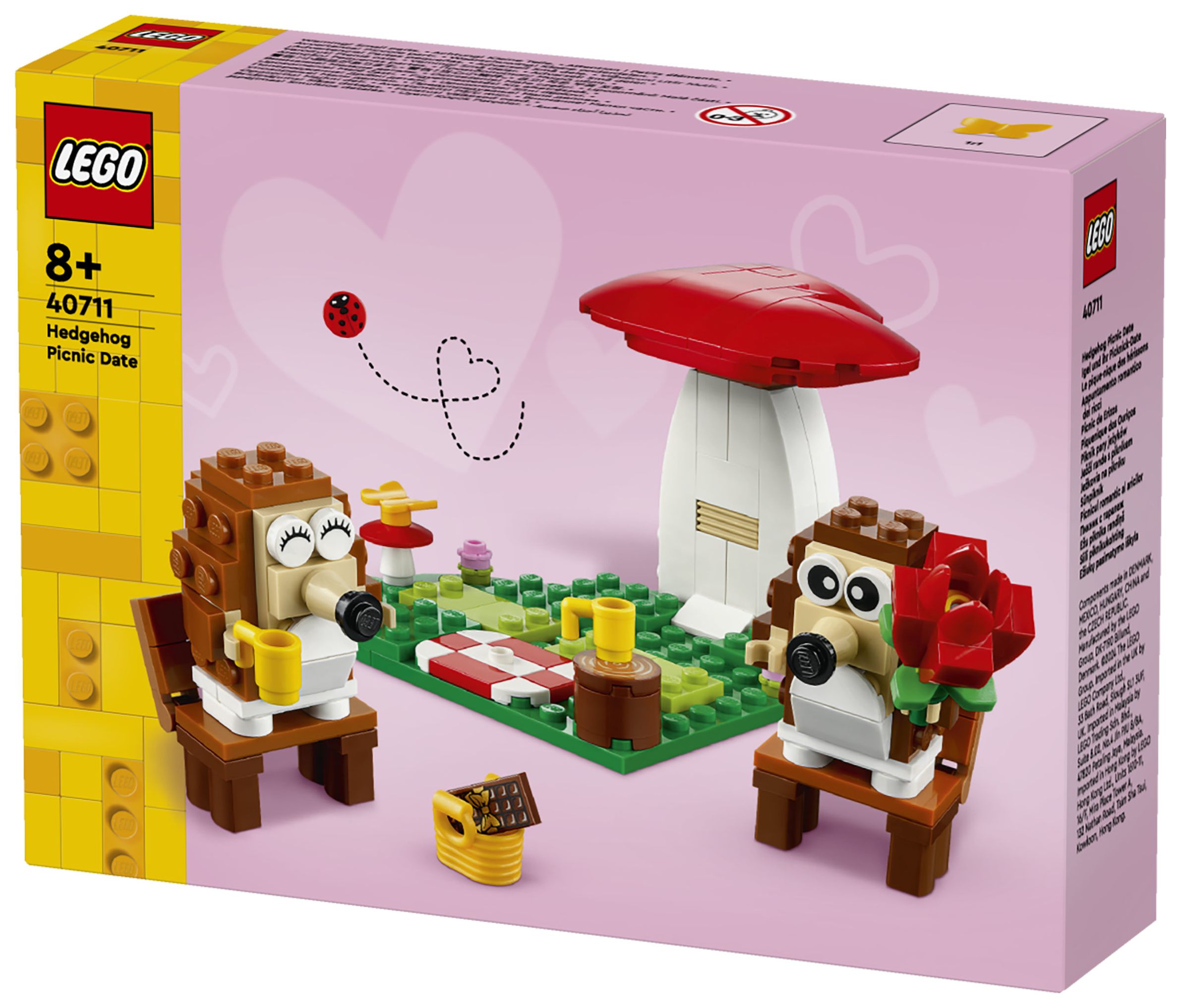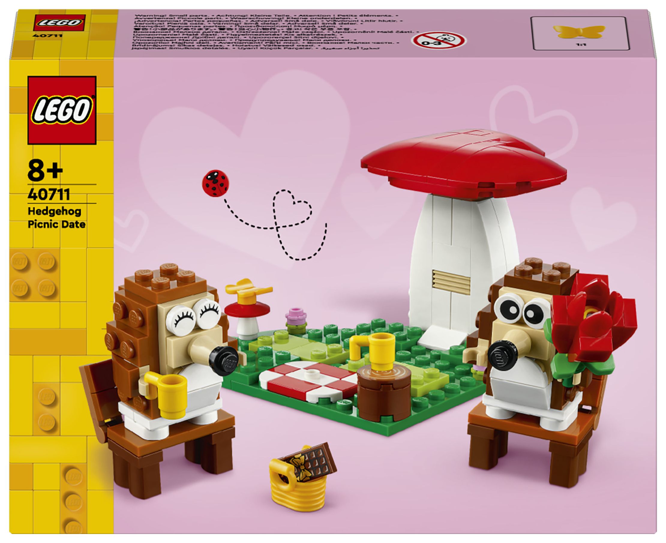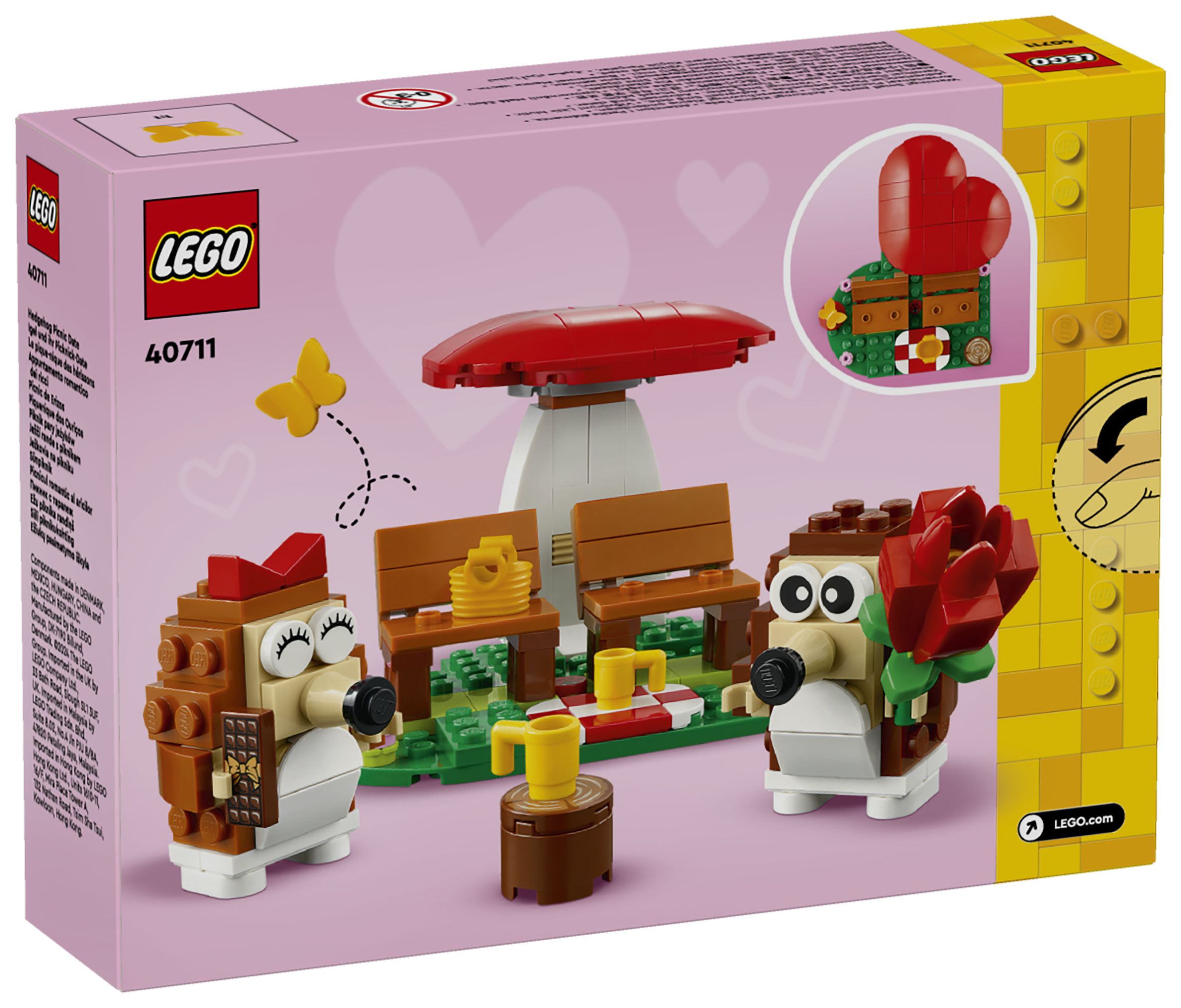 LEGO® Igel und ihr Picknick-Date (40711) ist ein zauberhaftes Bau- und Spielset mit niedlichen Tieren und coolen Funktionen. Mit diesem Set kannst du viele besondere Anlässe feiern. Dieses Set zum Bauen, Spielen und Ausstellen beinhaltet 2 Igel, die unter einem herzförmigen Pilz auf einer herzförmigen Wiese sitzen. Mit diesem Set können Jungen und Mädchen ab 8 Jahren viele Geschichten darstellen.