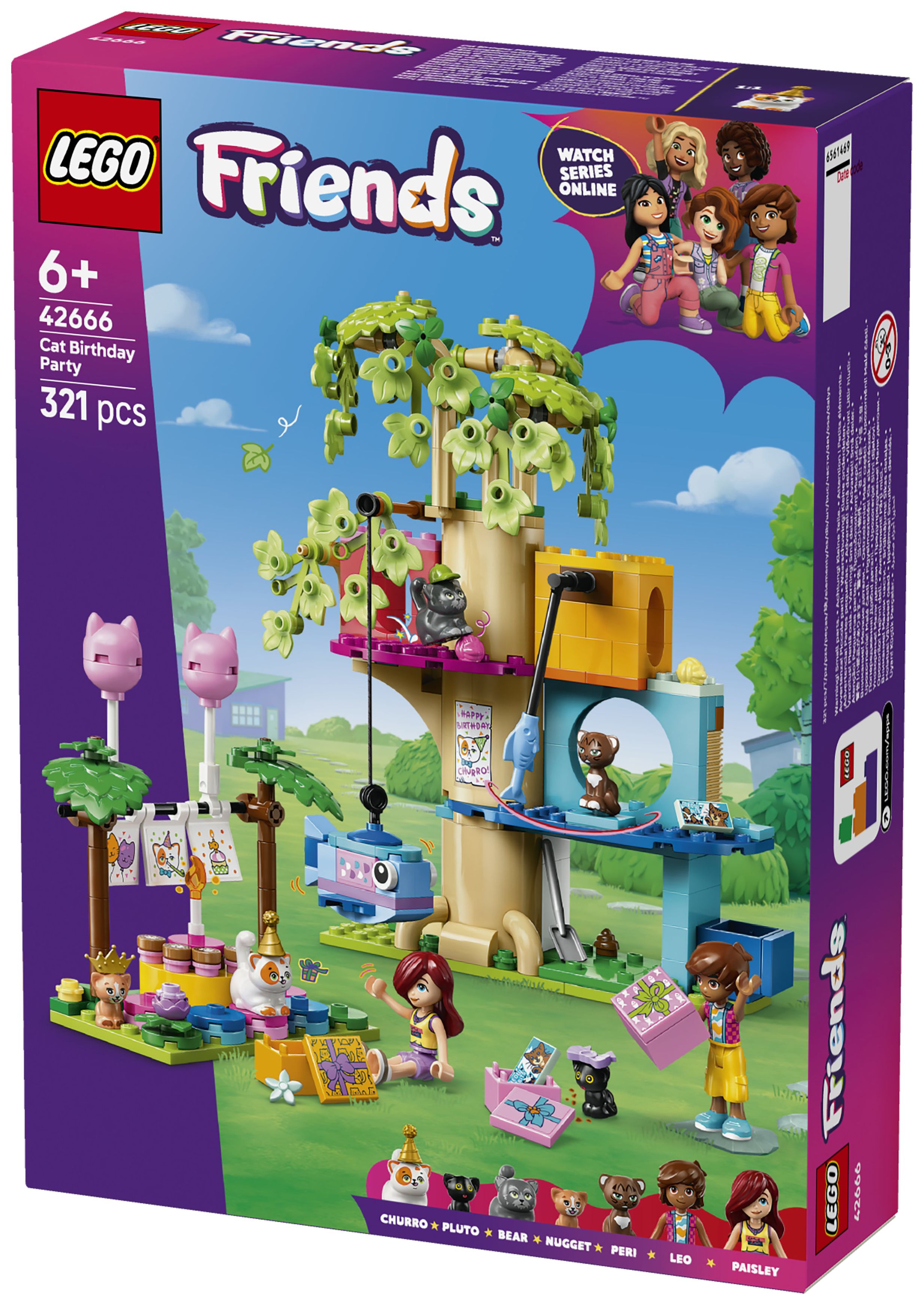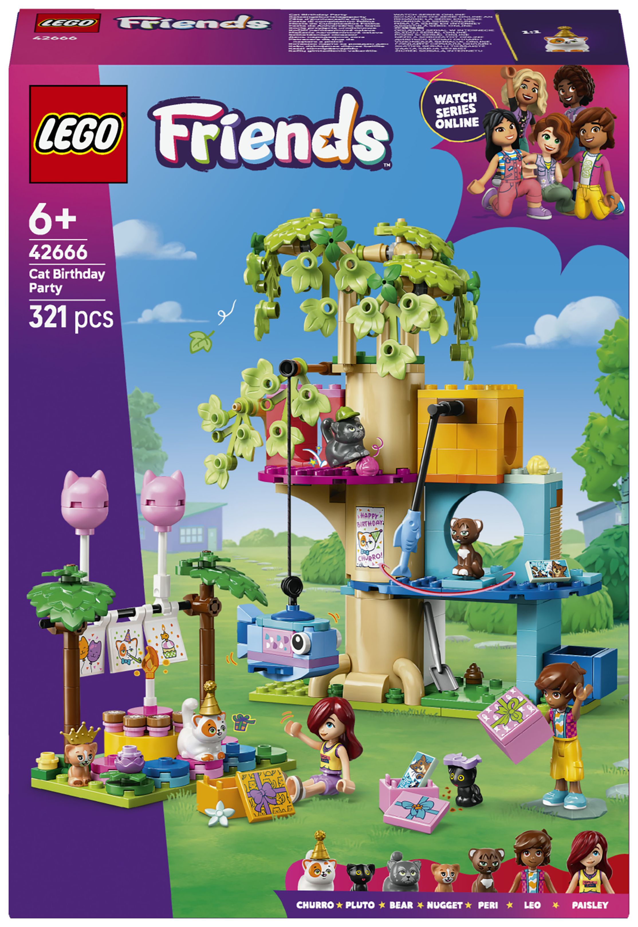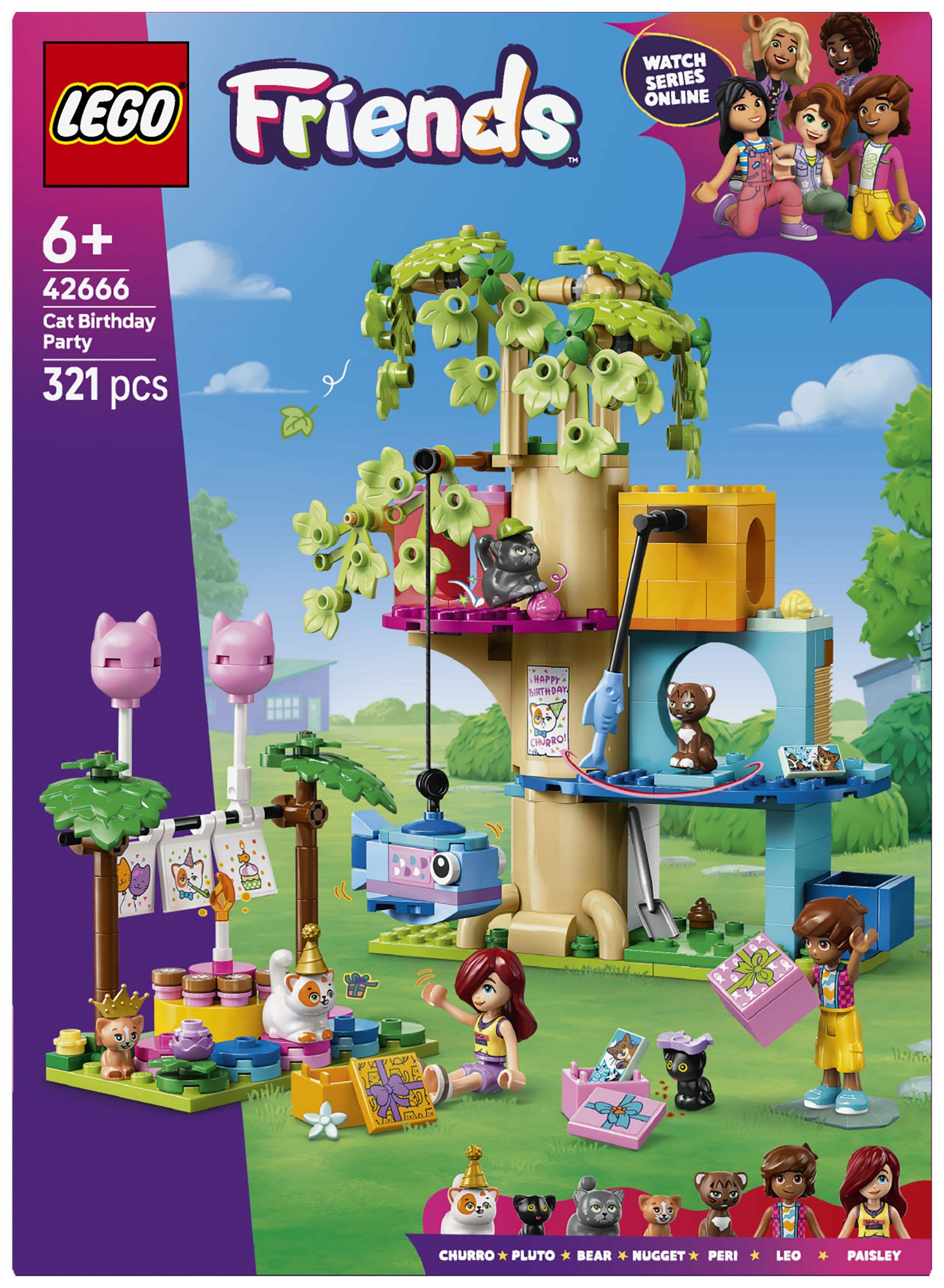 Entdecke ein tolles Bauset für katzenbegeisterte Mädchen und Jungen ab 6 Jahren. LEGO® Friends Katzengeburtstagsparty & Baumhaus (42666) ist ein Spielset, um tolle Erlebnisse mit niedlichen Miezen darzustellen. 2 Spielfiguren, 5 Katzen und jede Menge Zubehör lassen Kinder besonders fantasievoll spielen.